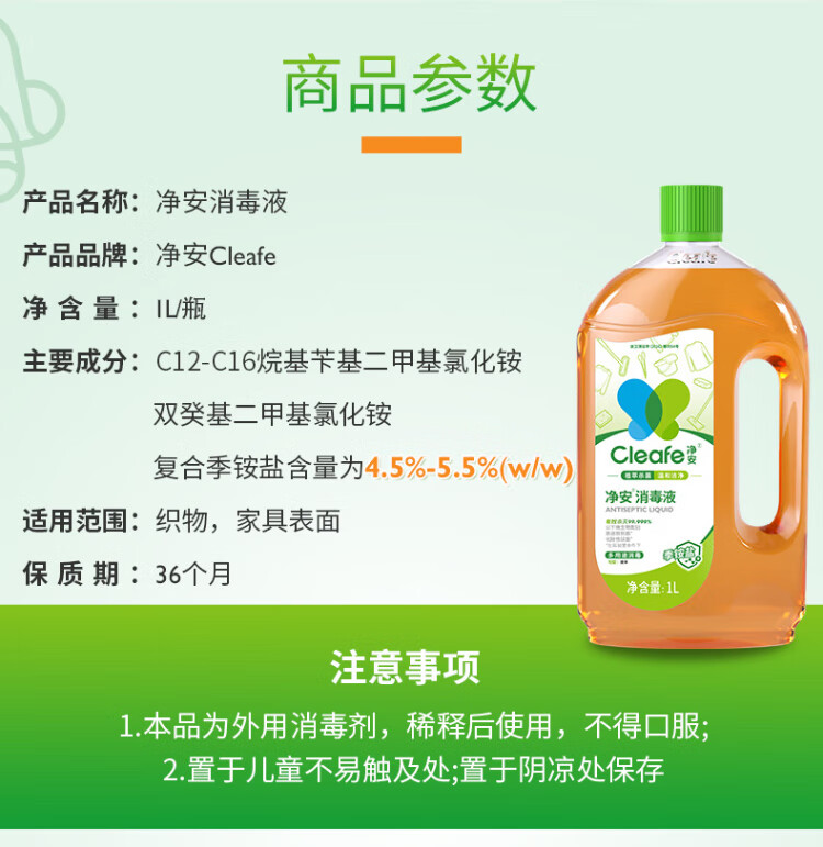Jing'an quaternary ammonium salt disinfectant 1L/bottle children's toys clothing floor sterilization pet environment disinfection non-84 alcohol