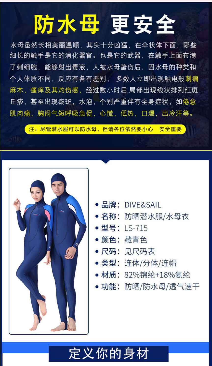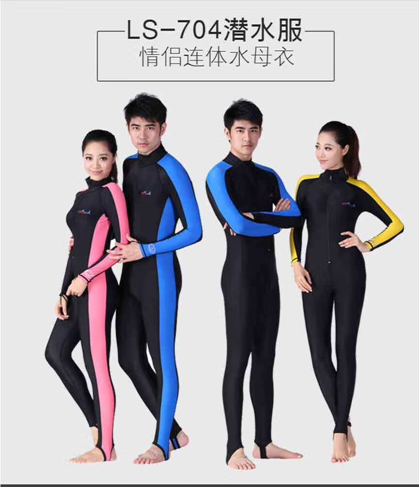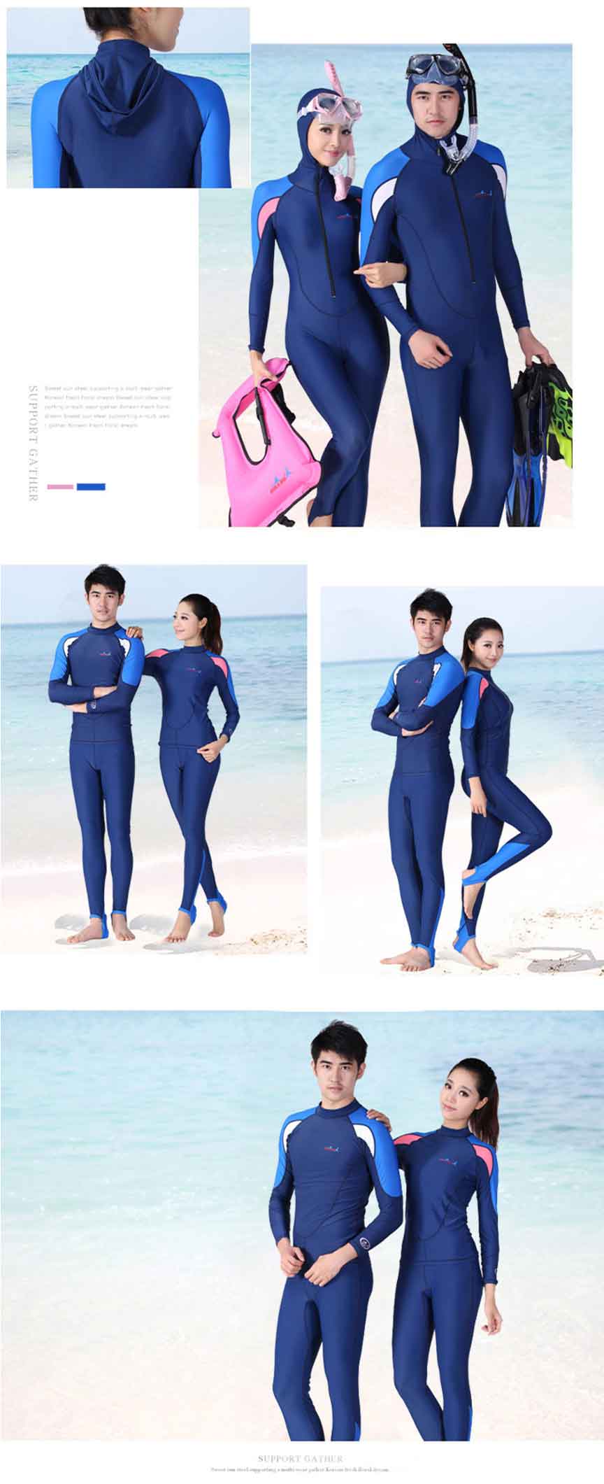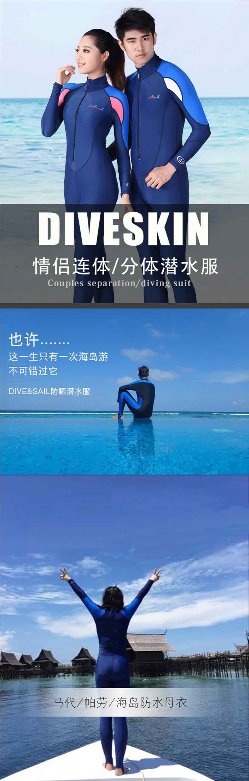 DIVE&SAIL new wetsuit for men and women couples one-piece long-sleeved beach sun protection children's waterproof female swimsuit surfing suit 704 powder pad XL