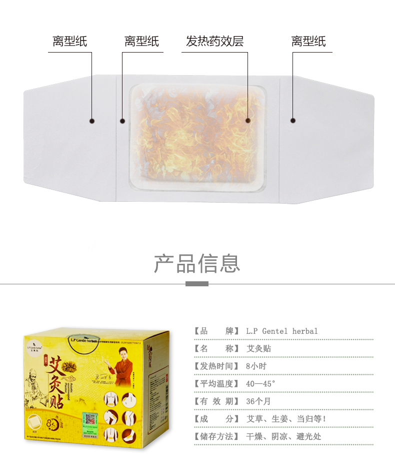 L.P Gentle herbal Aobi moxibustion patch moxa hot moxibustion mugwort moxa leaf patch waist and cervical disc herniation neck shoulder waist leg foot pain magnetic therapy 20 patches / box