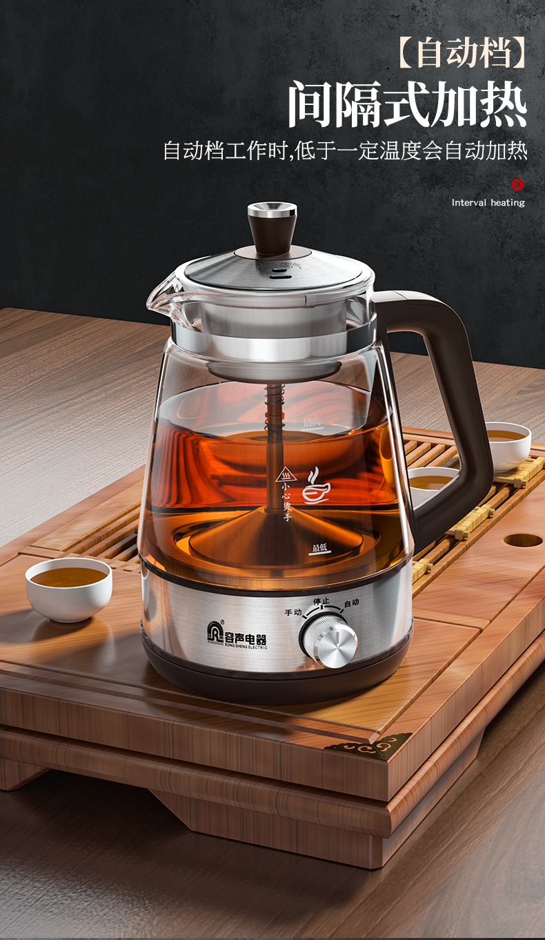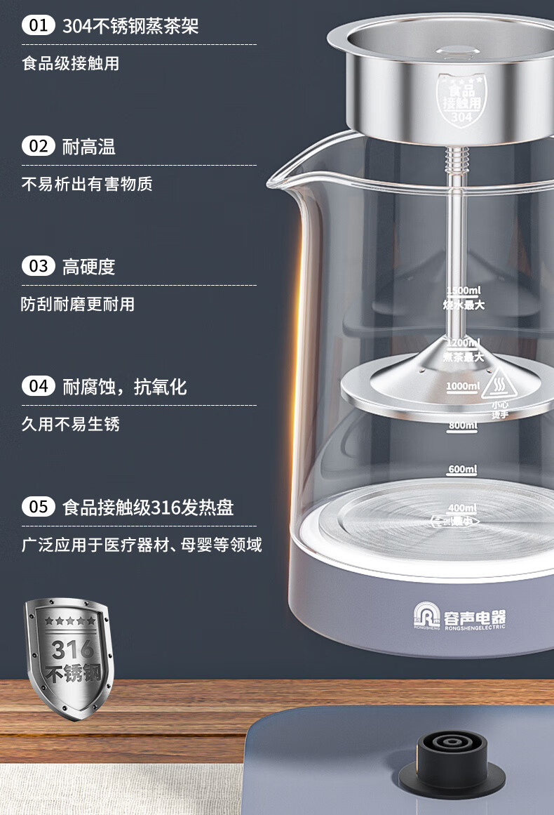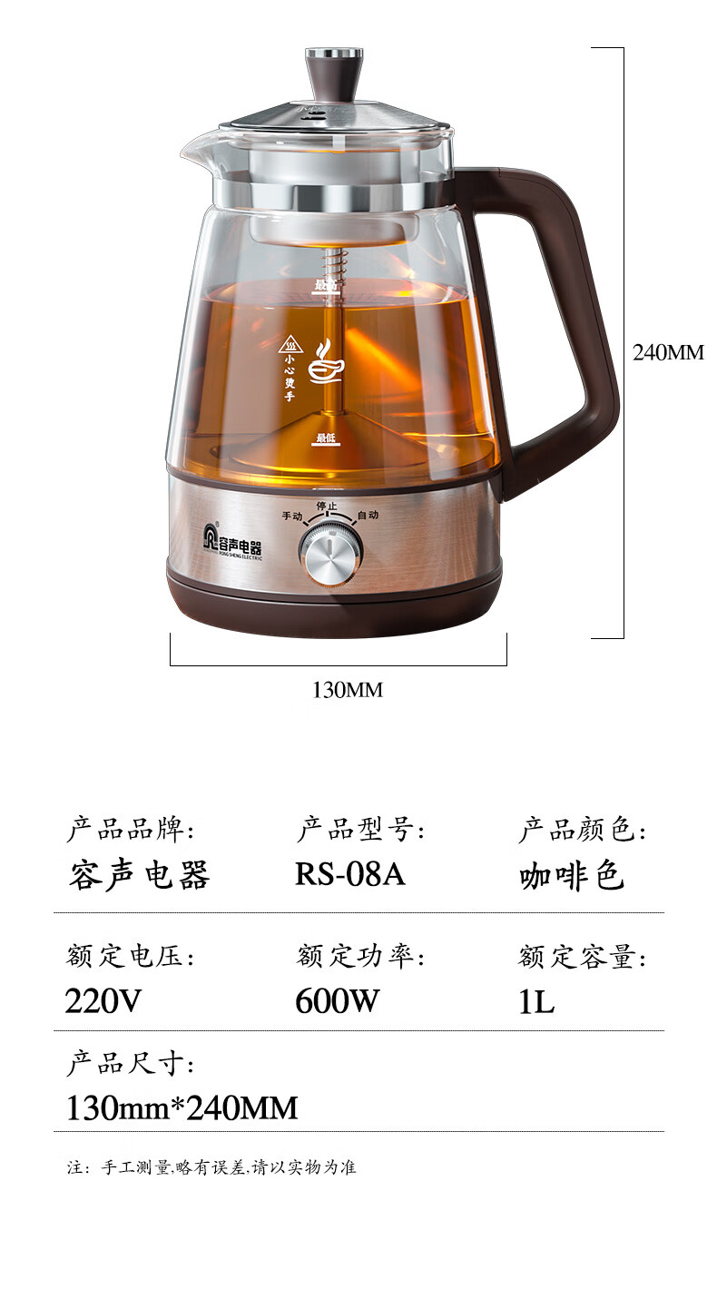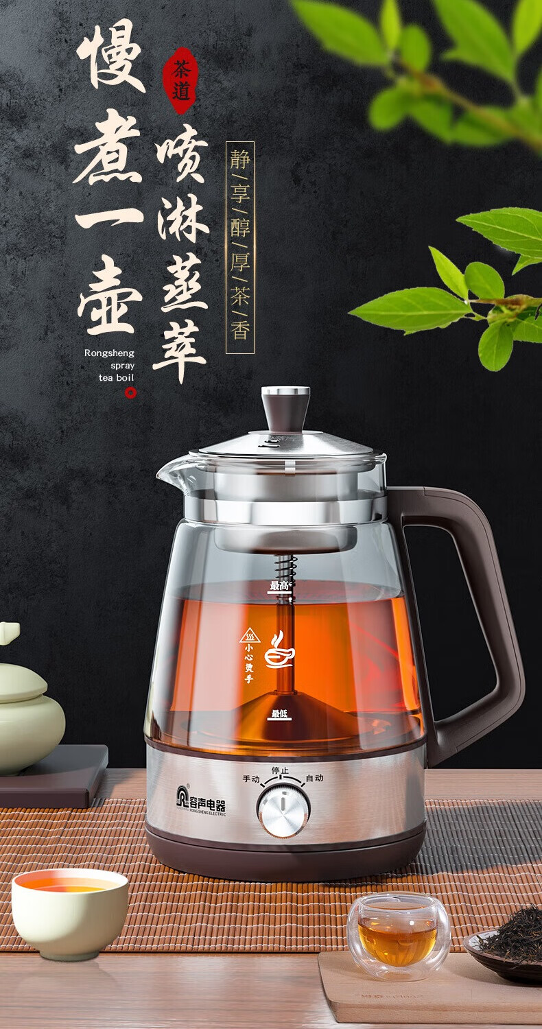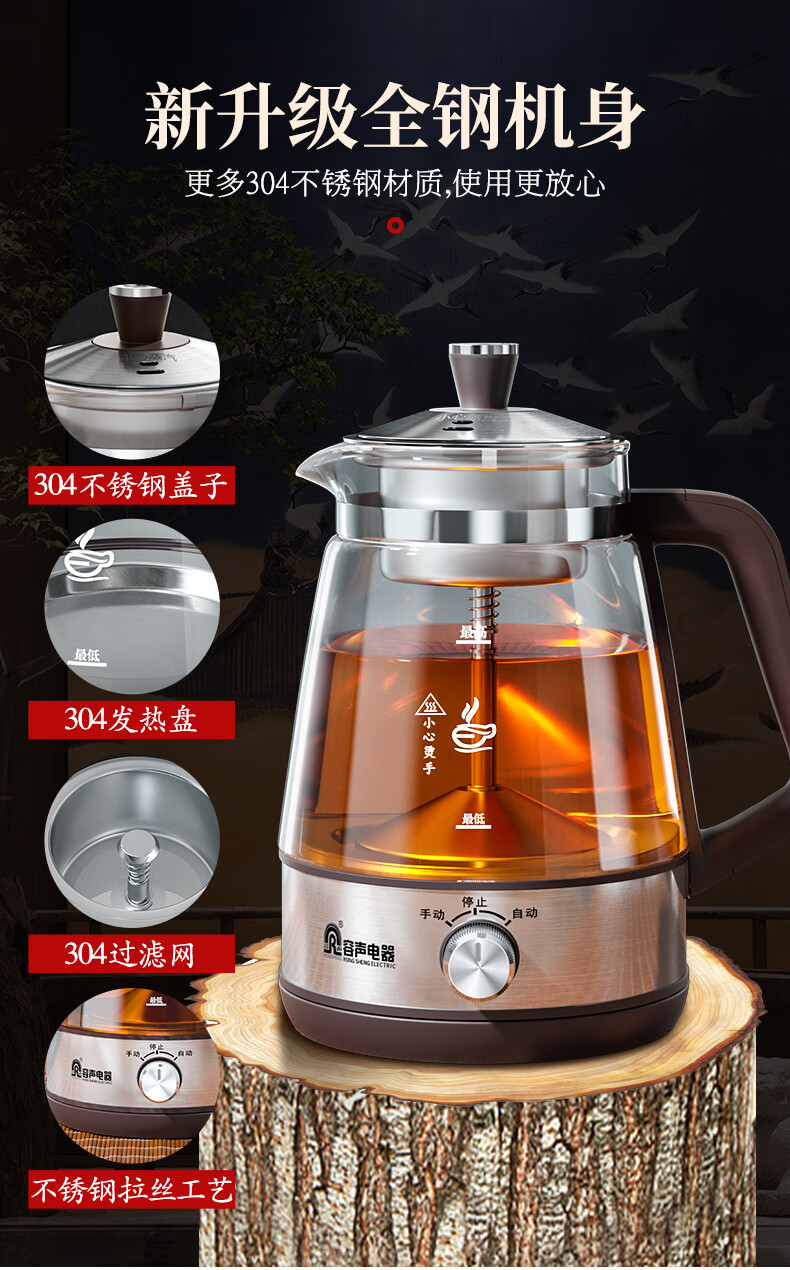Rongsheng tea kettle, fully automatic steam kettle, glass electric kettle, smart tea steamer, steaming tea kettle, health flower tea kettle, 1L 304 steel with single filter, coffee color