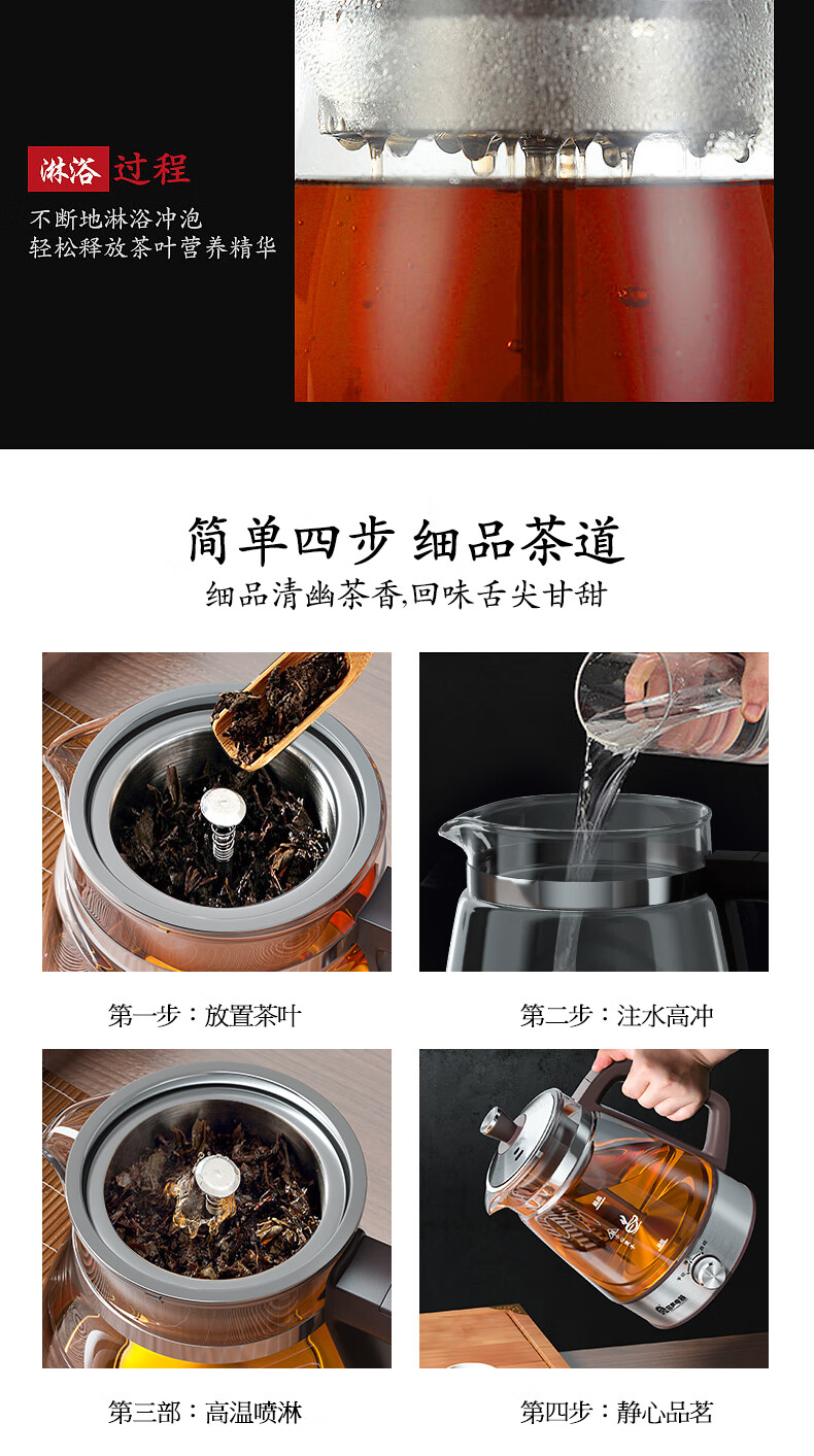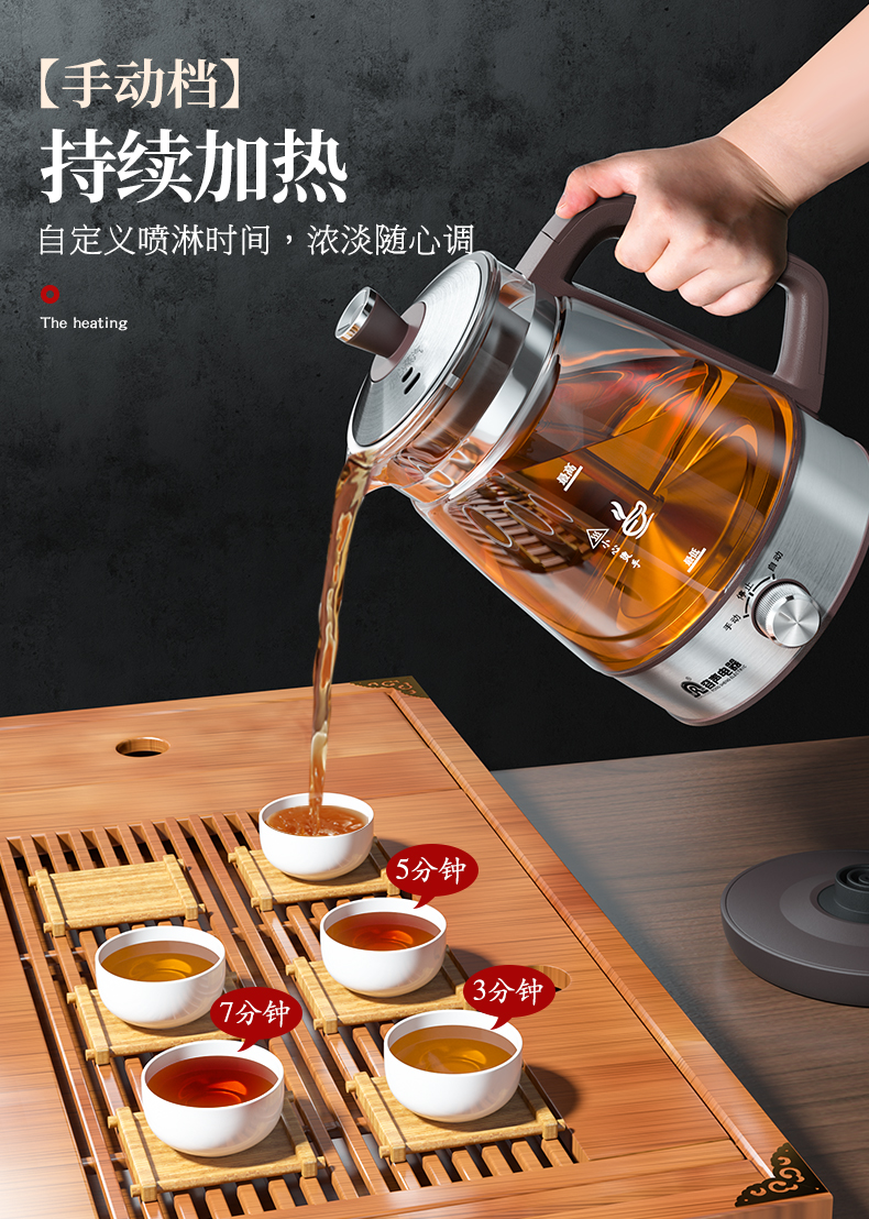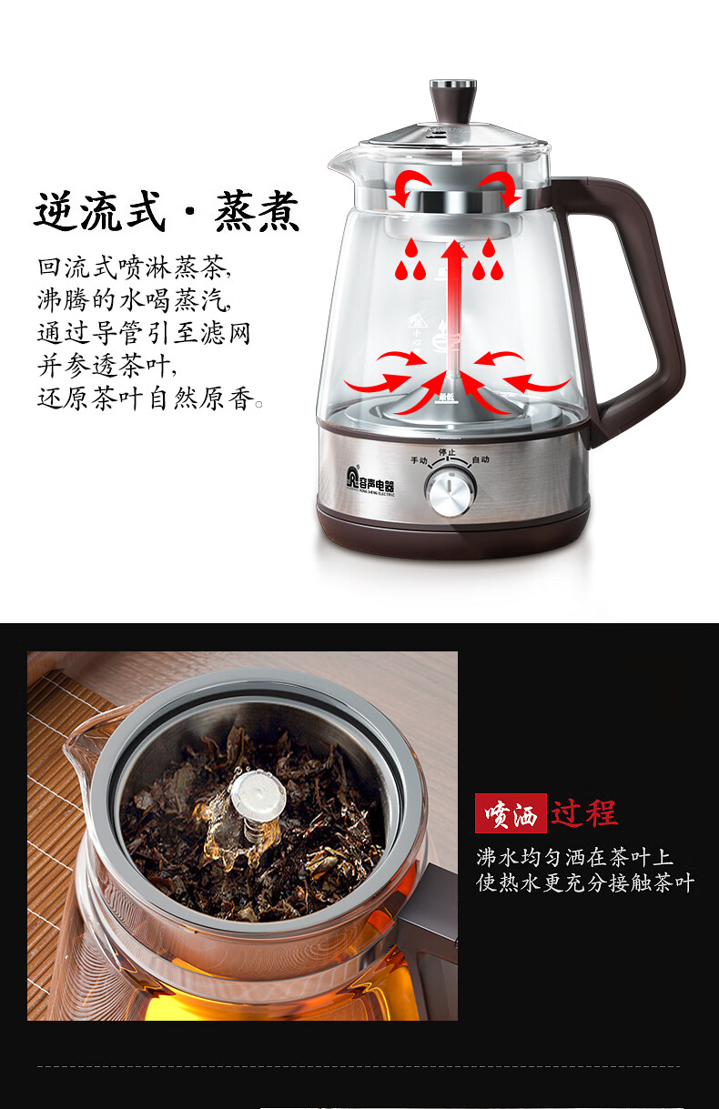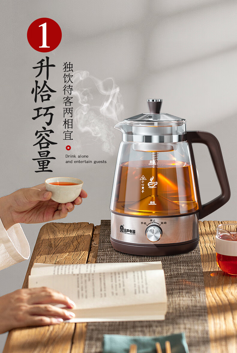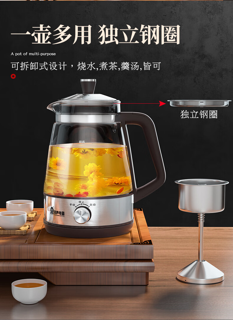 Rongsheng tea kettle, fully automatic steam kettle, glass electric kettle, smart tea steamer, steaming tea kettle, health flower tea kettle, 1L 304 steel with single filter, coffee color
