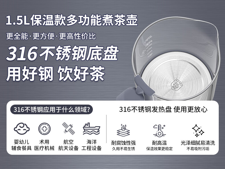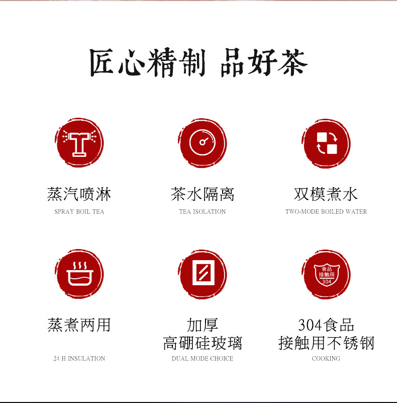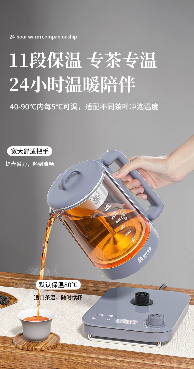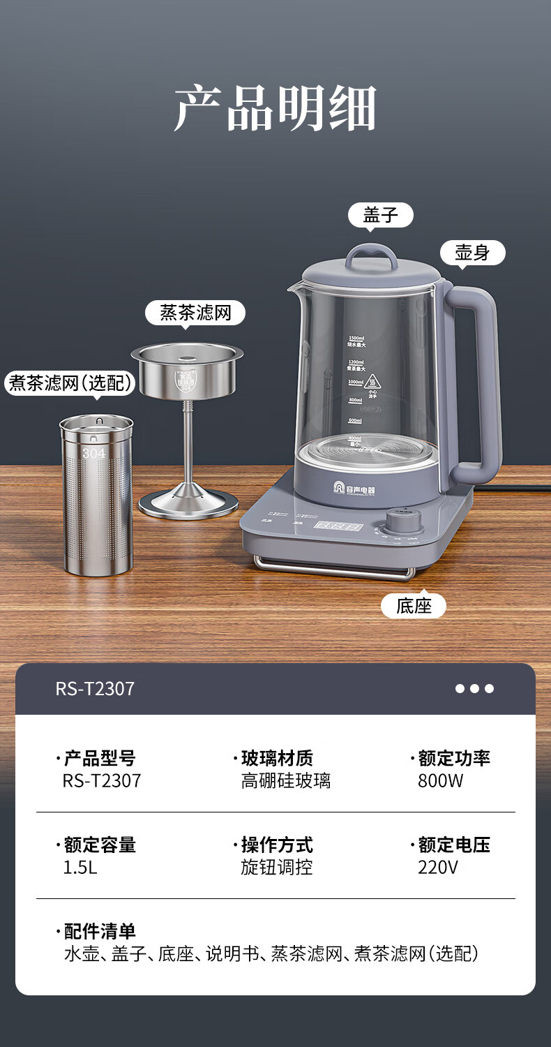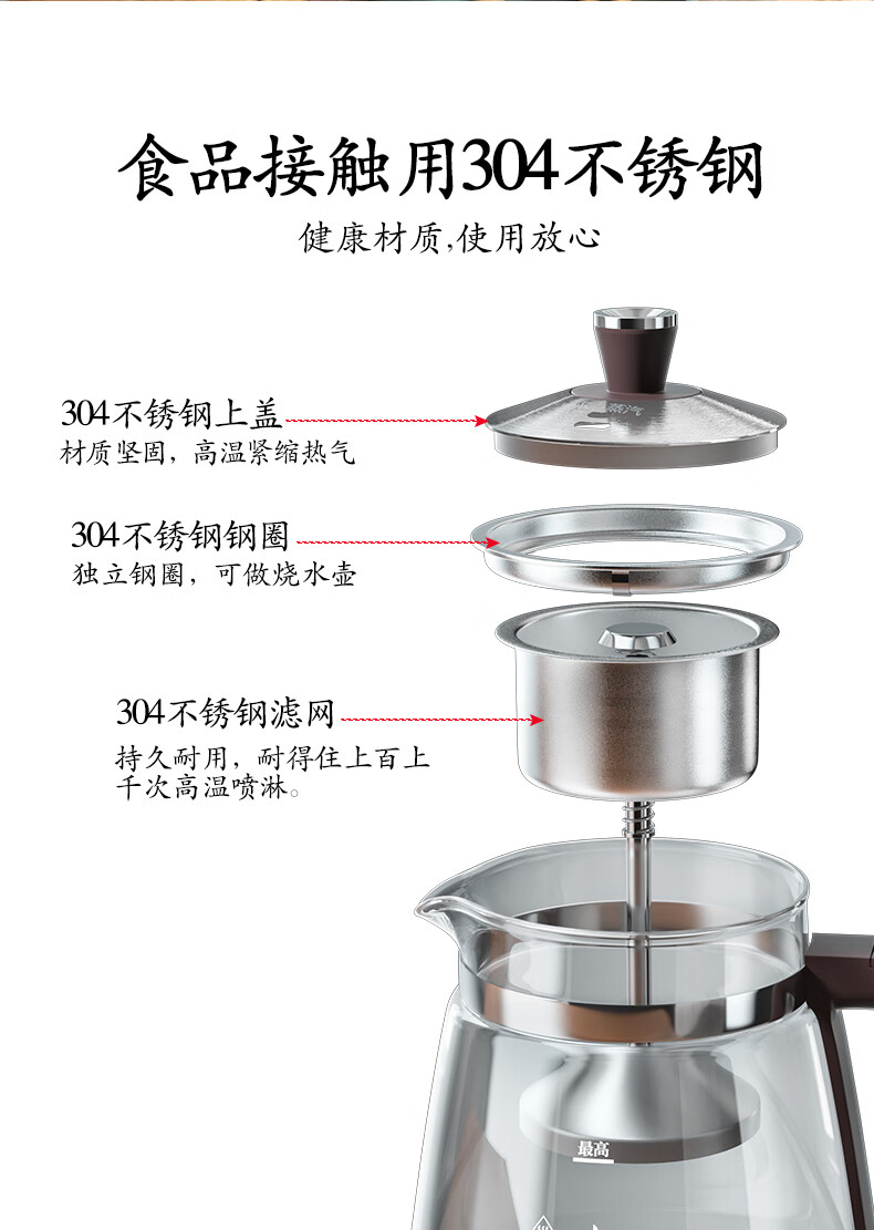 Rongsheng tea kettle, fully automatic steam kettle, glass electric kettle, smart tea steamer, steaming tea kettle, health flower tea kettle, 1L 304 steel with single filter, coffee color