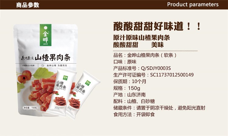 Jinye snacks, candied fruit, hawthorn pulp strips 150g/bag