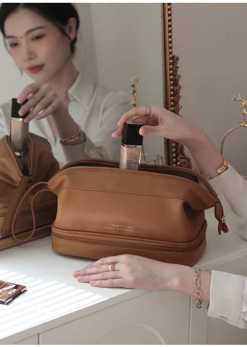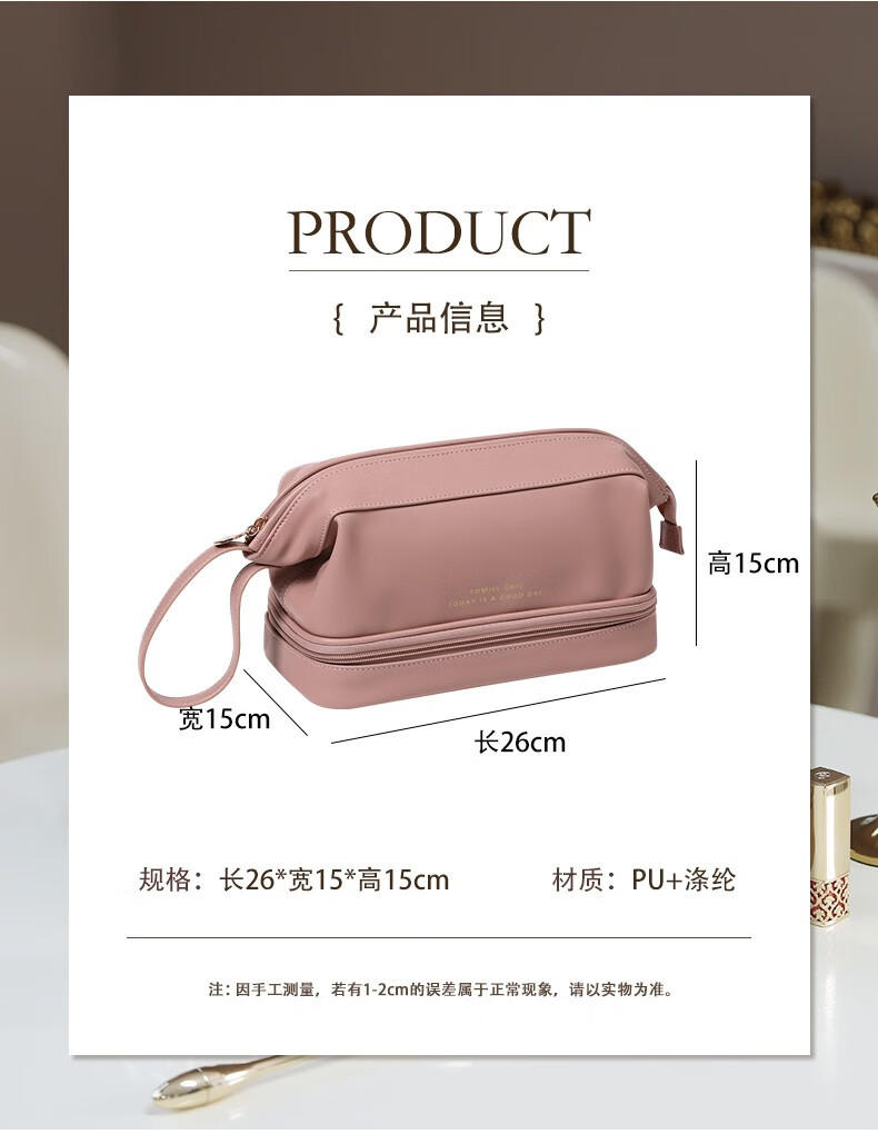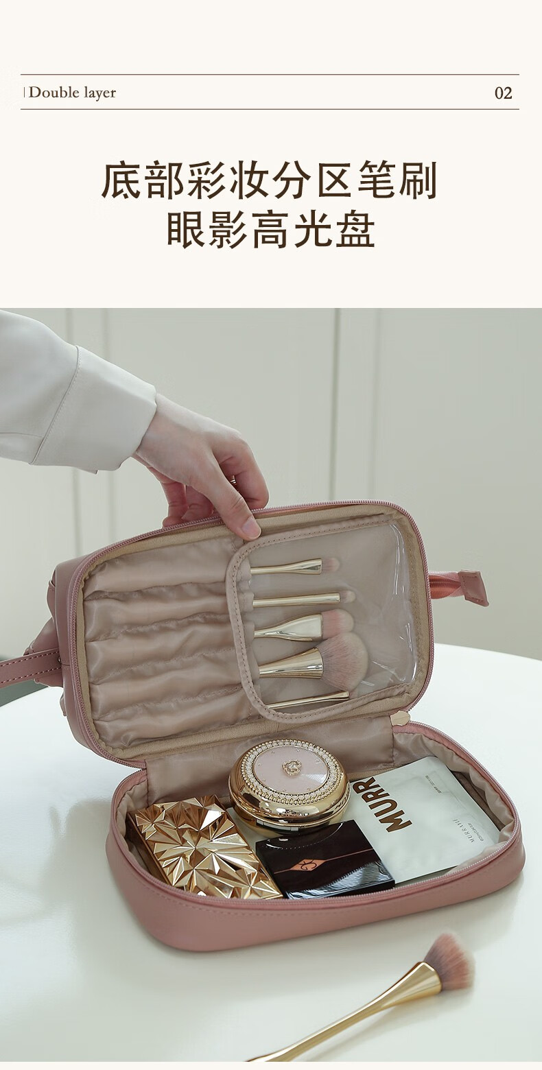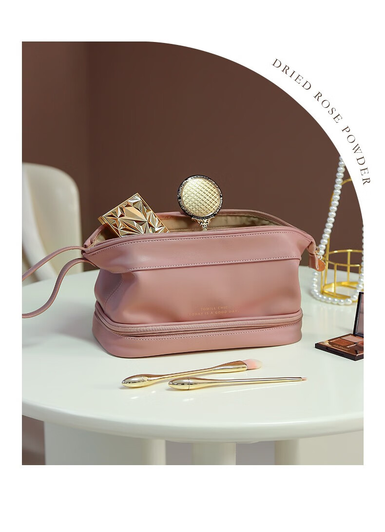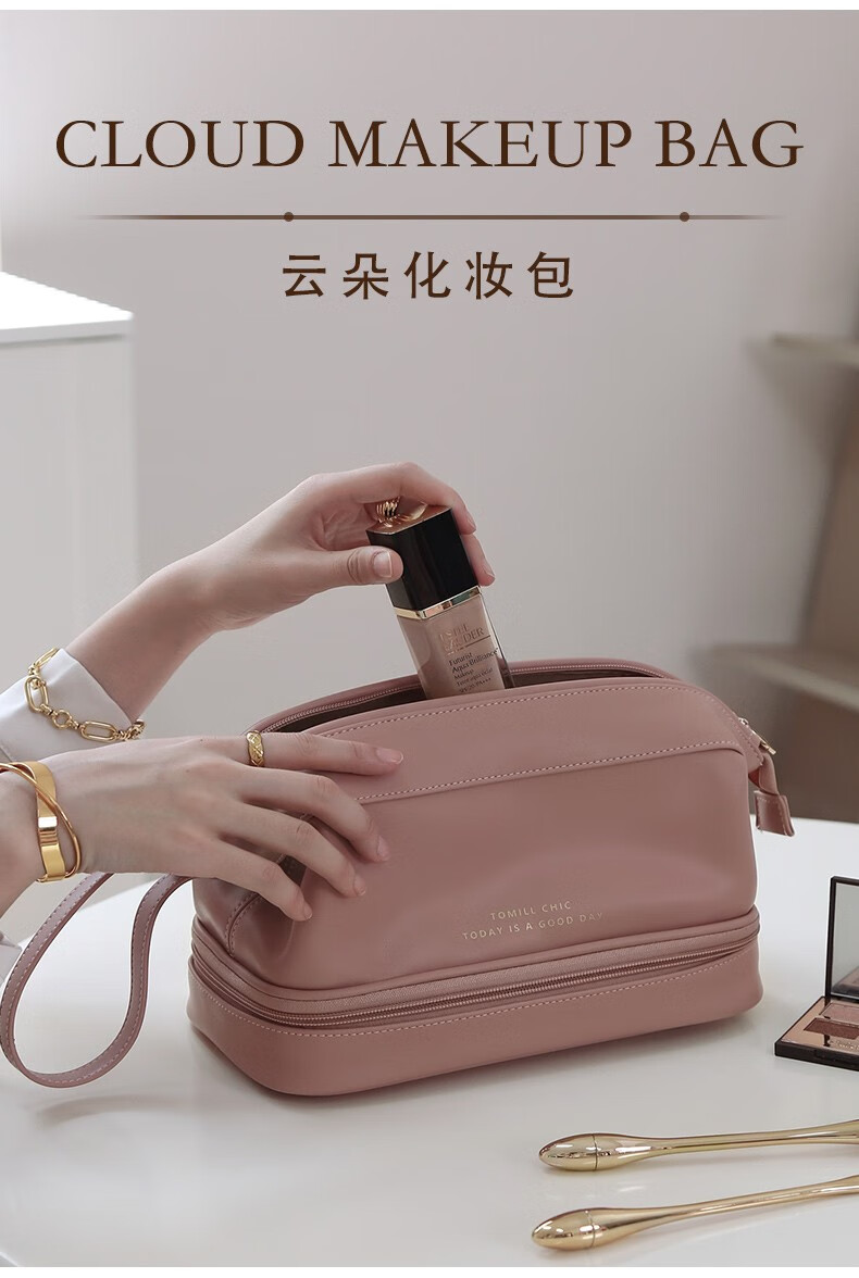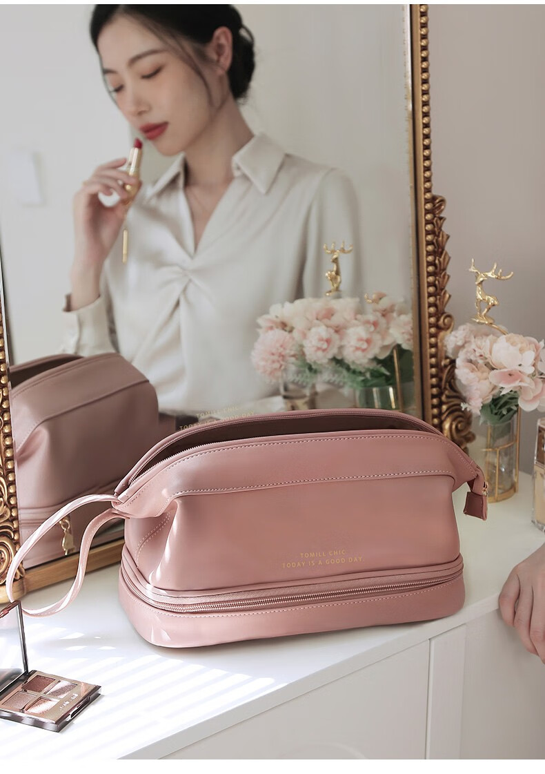 ToMill Cosmetic Bag Women's Large Capacity Storage Bag Leather Cosmetics Storage Bag Business Travel Dry and Wet Separation Washing Bag Yunduo-Rose Pink