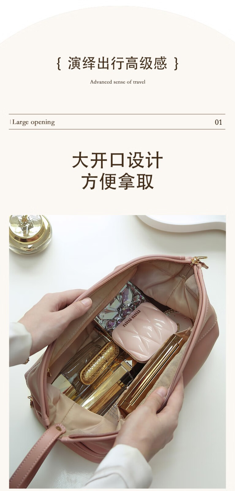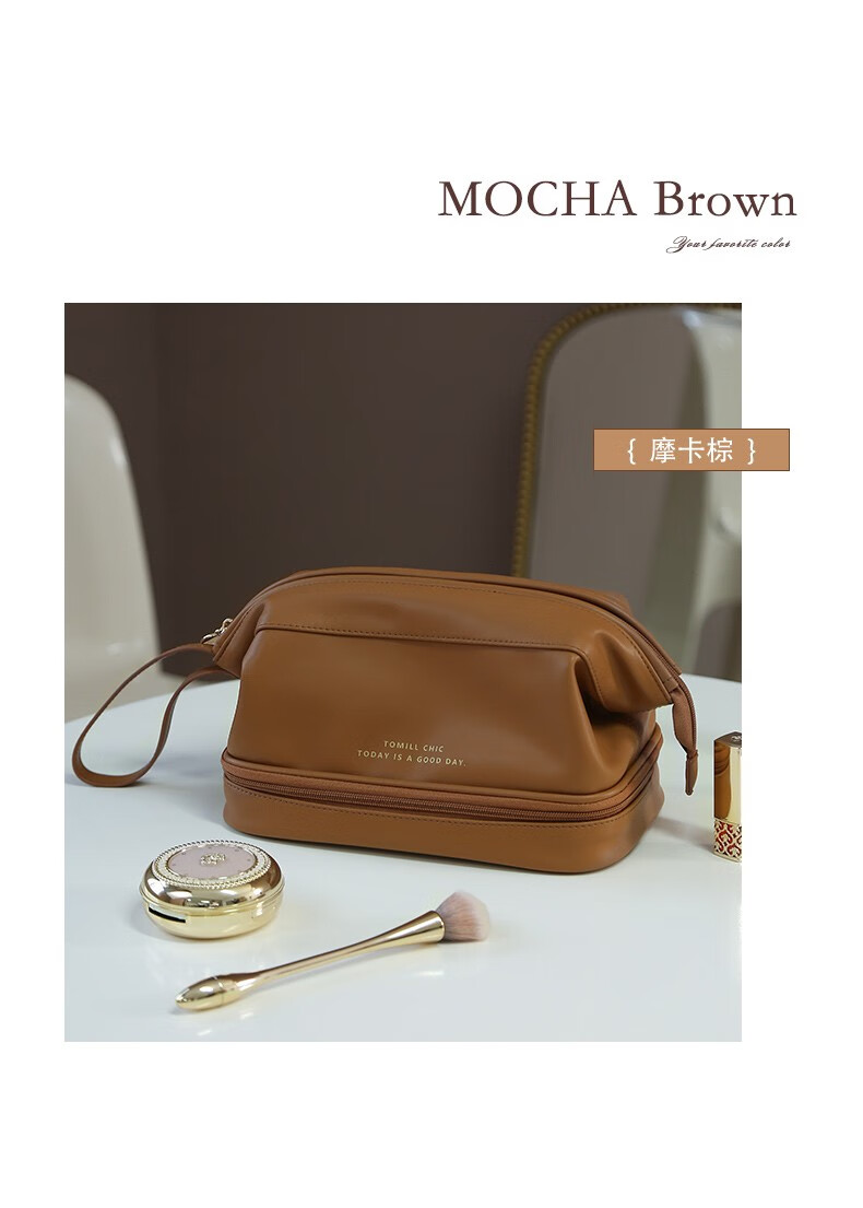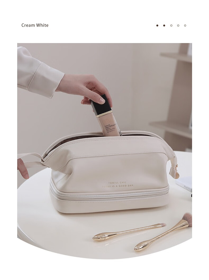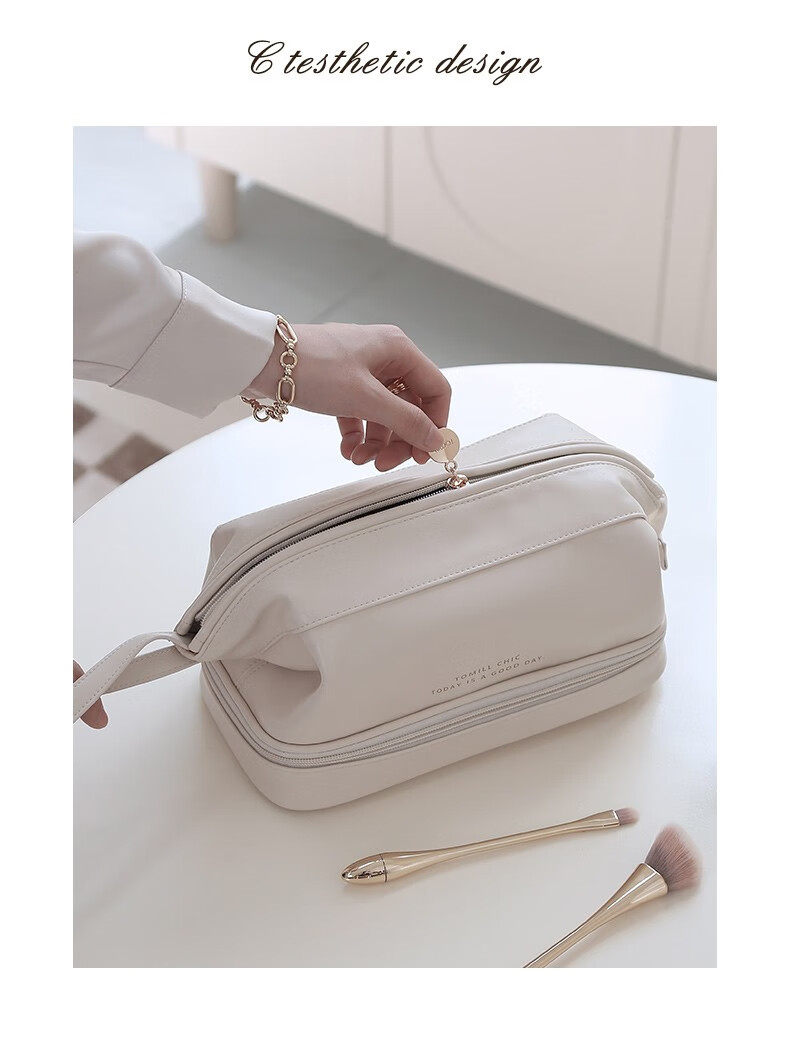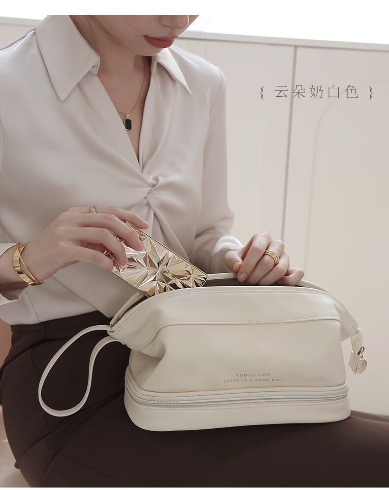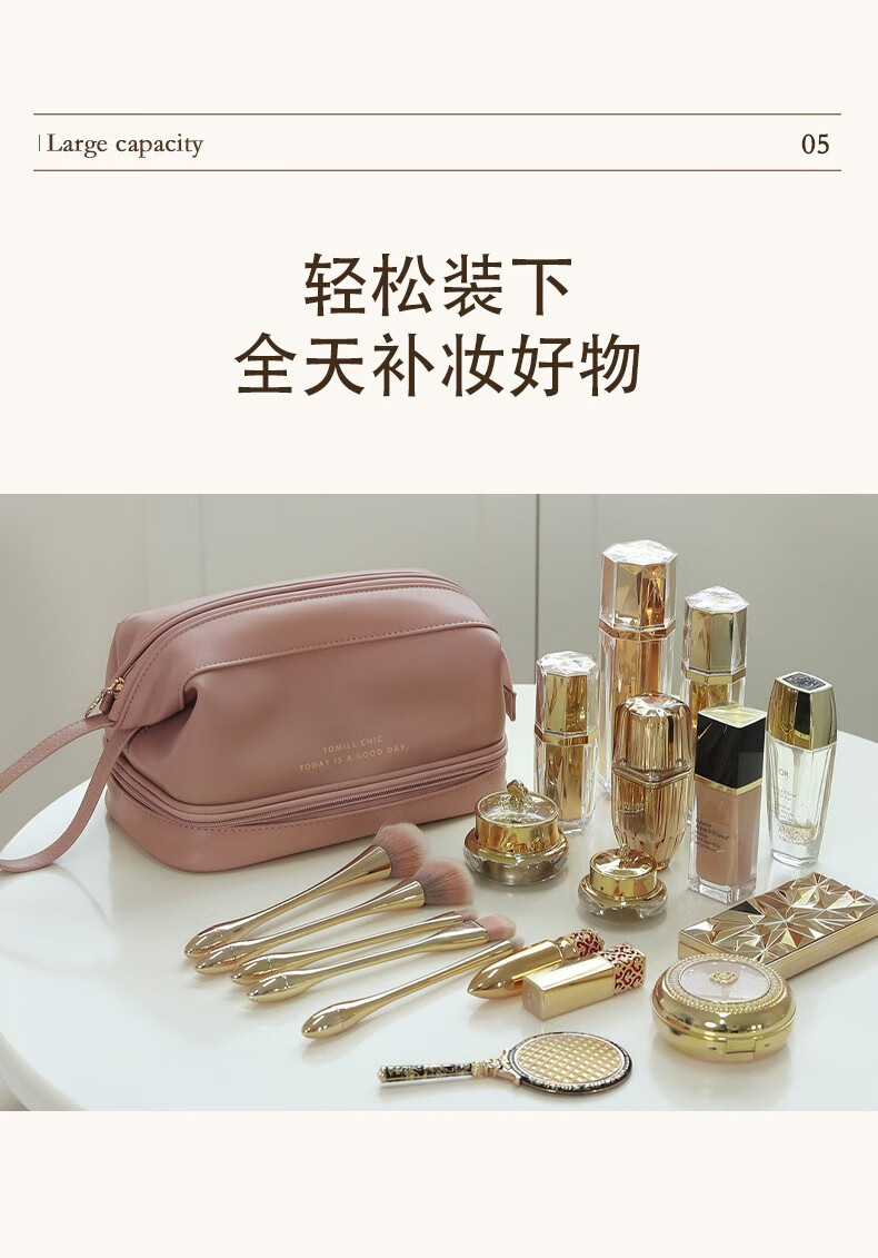 ToMill Cosmetic Bag Women's Large Capacity Storage Bag Leather Cosmetics Storage Bag Business Travel Dry and Wet Separation Washing Bag Yunduo-Rose Pink