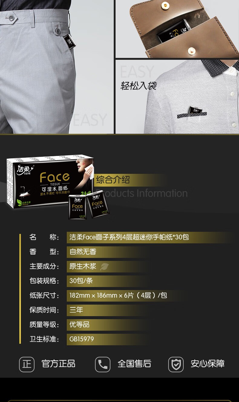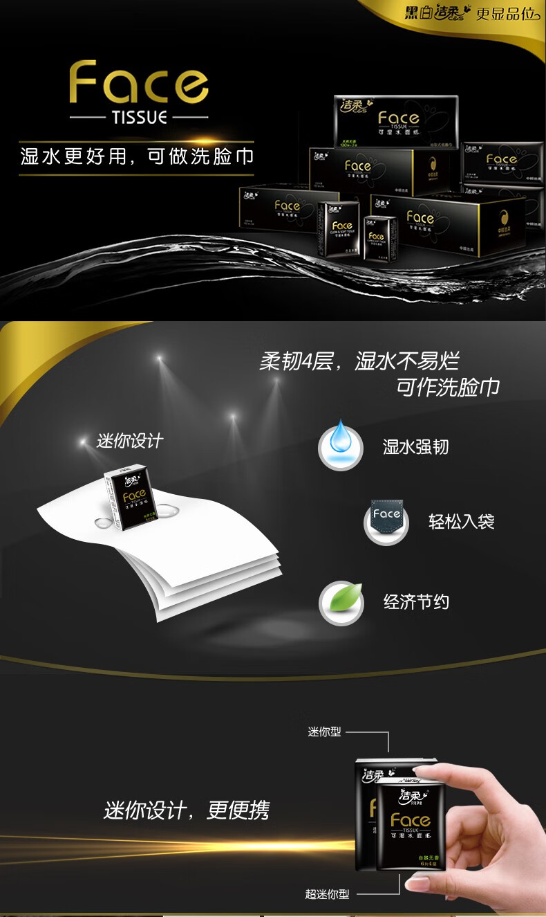 Jierou Black Face Handkerchief 4-layer thickened mini napkin facial tissue portable toilet paper 3 pieces * 30 packs total 90 packs