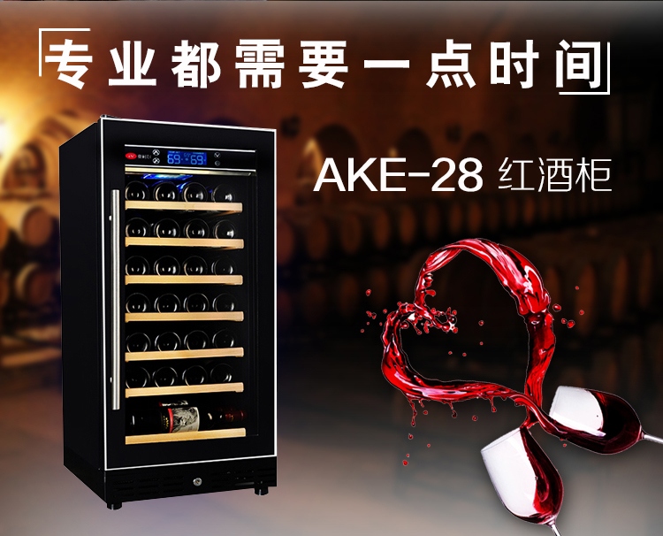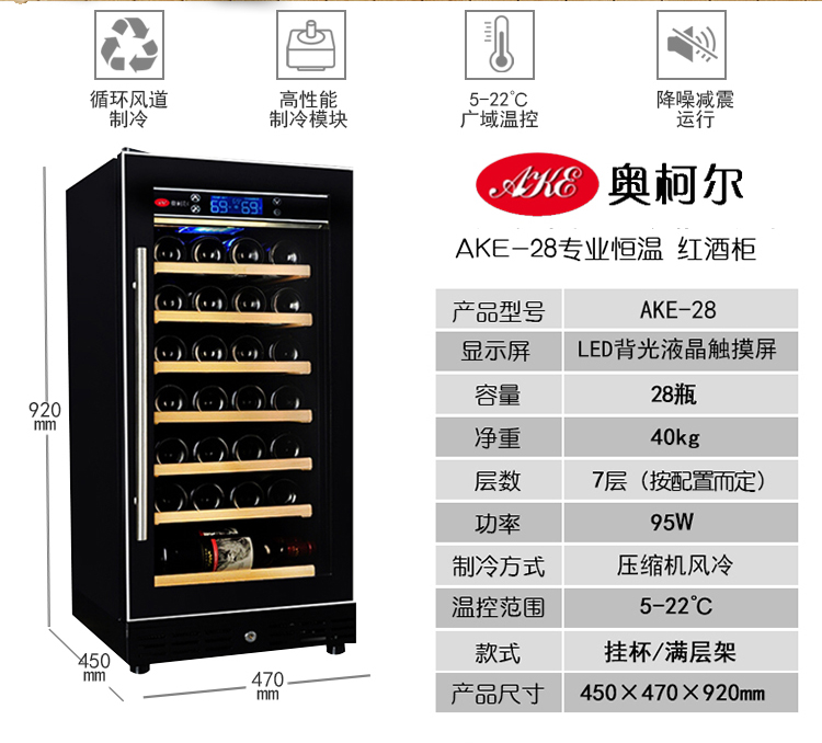 Aokeer AKE-28 red wine cabinet compressor constant temperature wine cabinet beverage refrigerator display cabinet wine cabinet household small vertical office with lock Ming handle brown wood grain