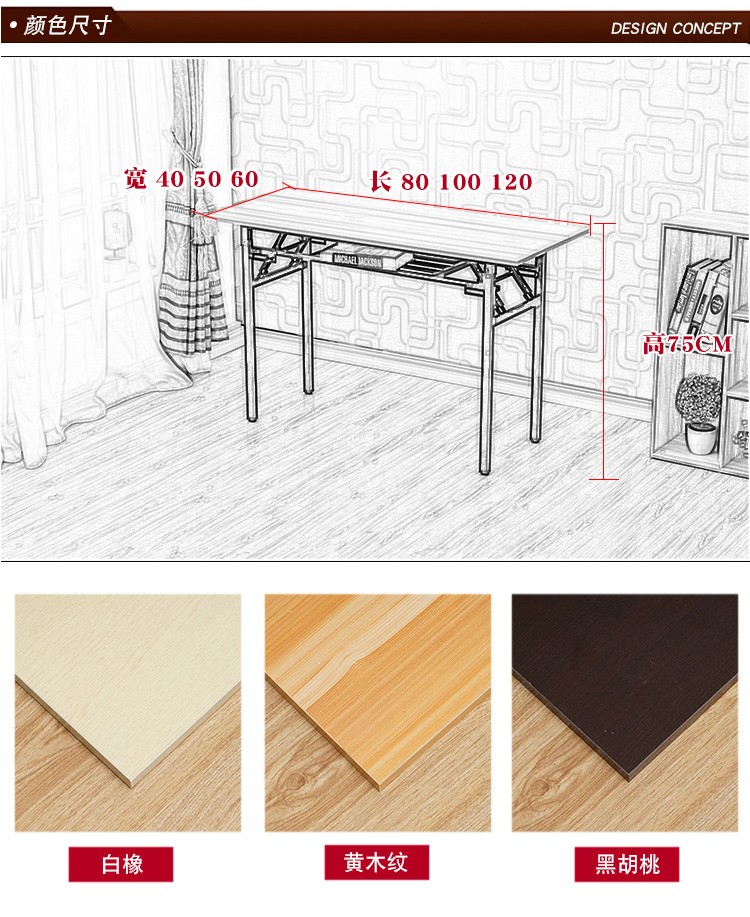 Sijiali folding table computer table simple rectangular training stall table outdoor learning desk long table IBM table black walnut single layer length 120*width 60*height 75cm