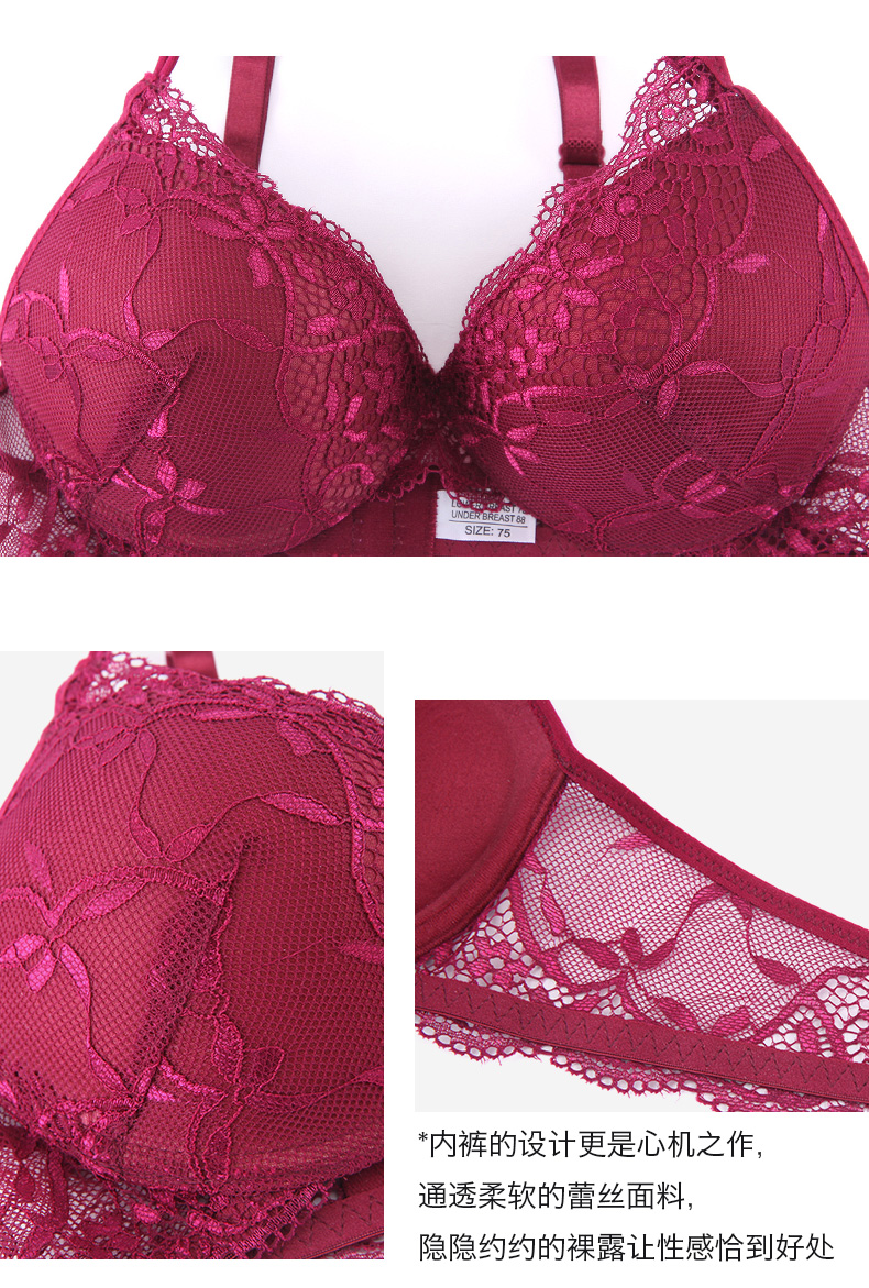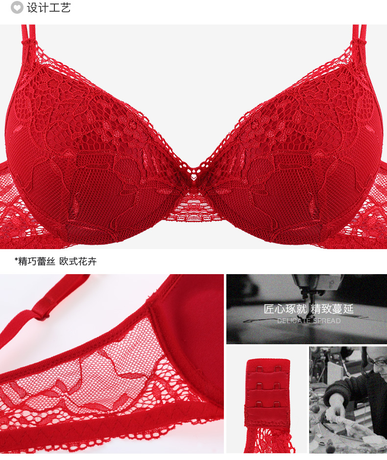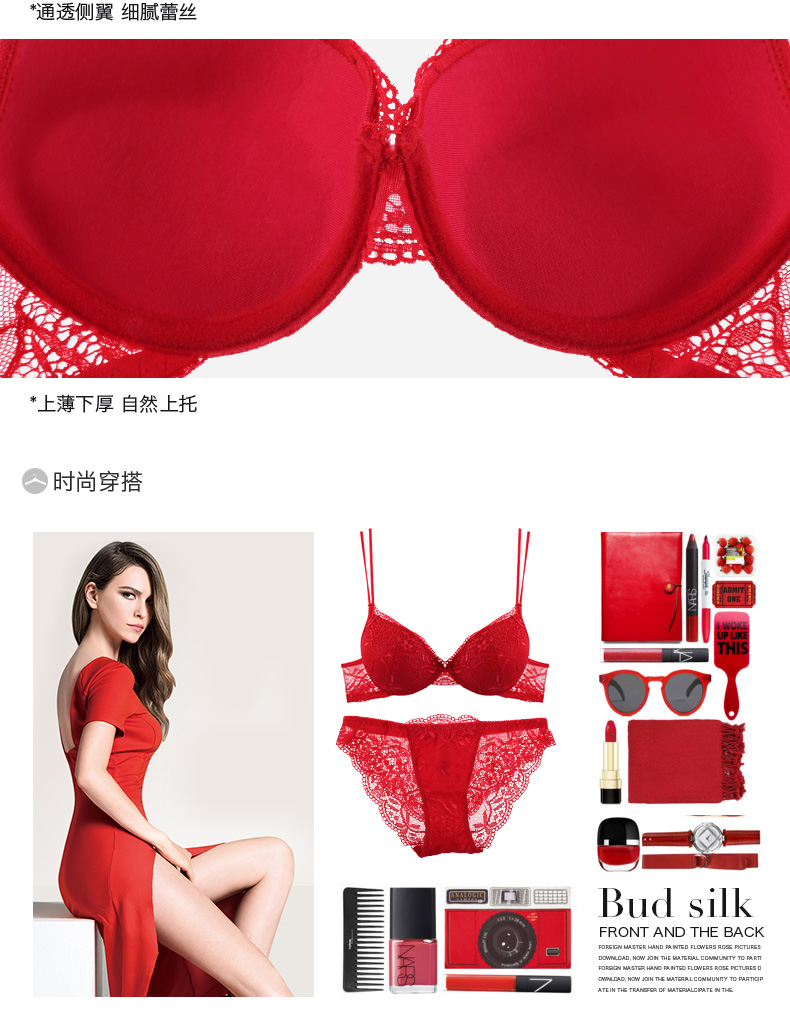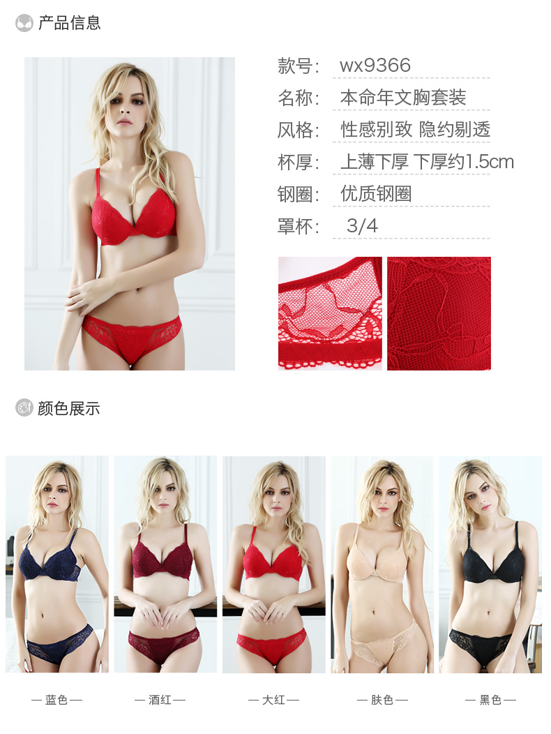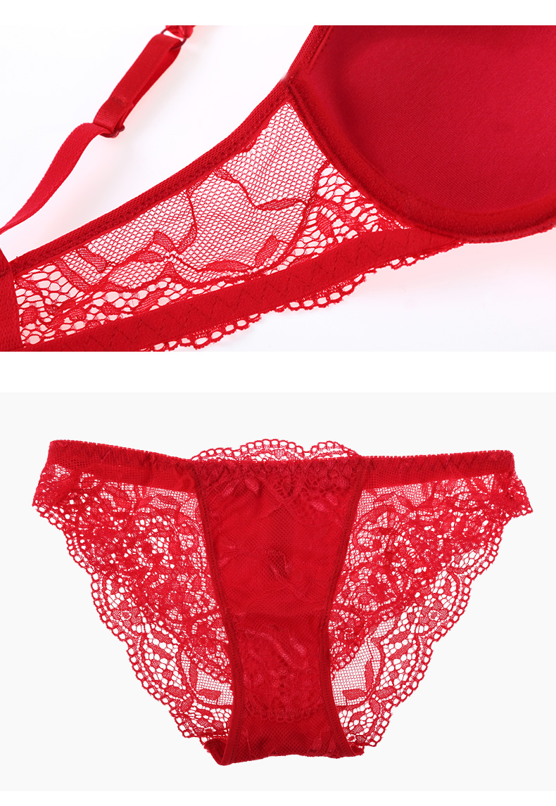 QIYUN Original Women's Wear Zodiac Year of the Snake Bra Set Women's Lace Sexy Push-Up Thin Underwear Panties Big Red 34/75B Bra + M Pants
