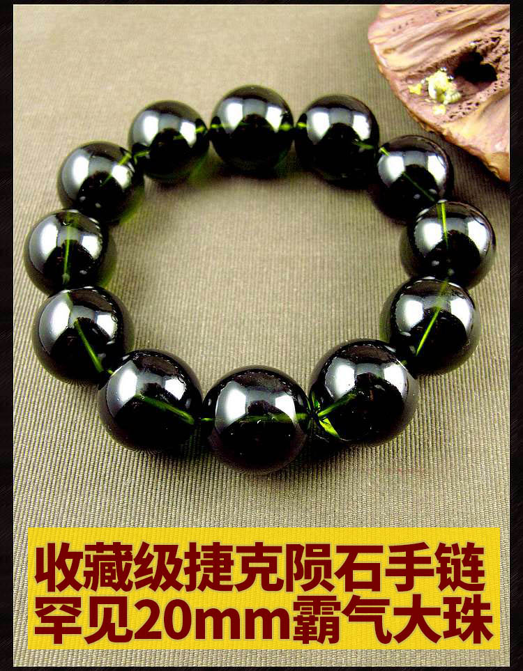 Xiangshiyuan 20mm Czech meteorite bracelet men's bracelet domineering large bead glass meteorite collection grade