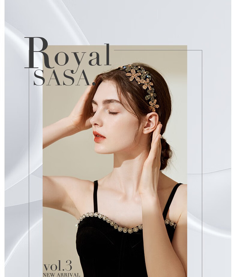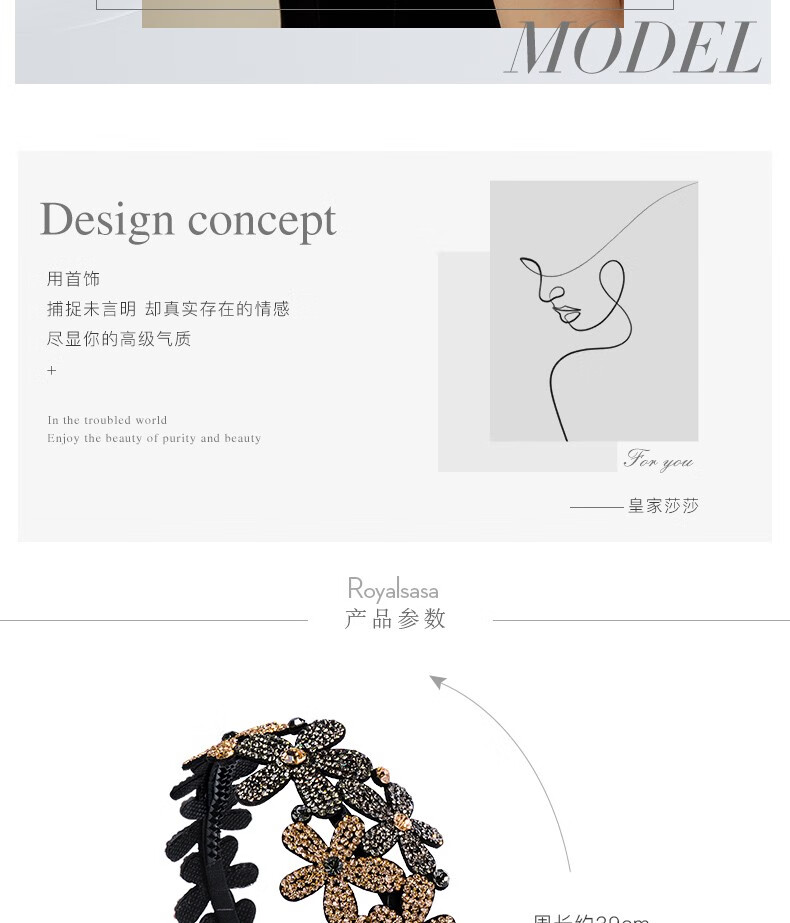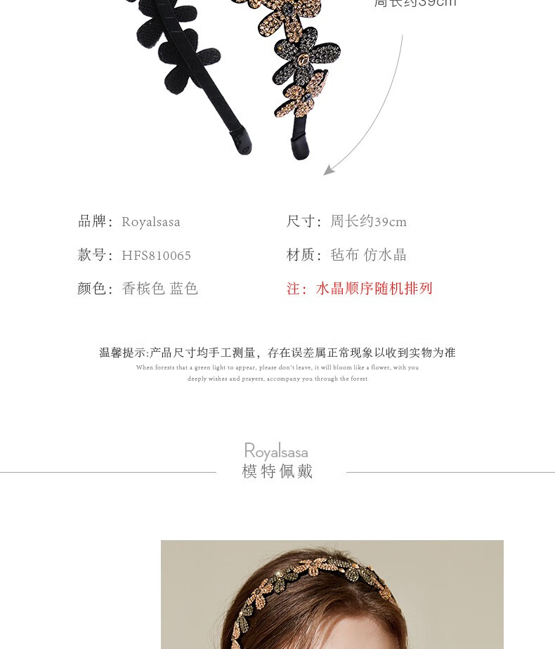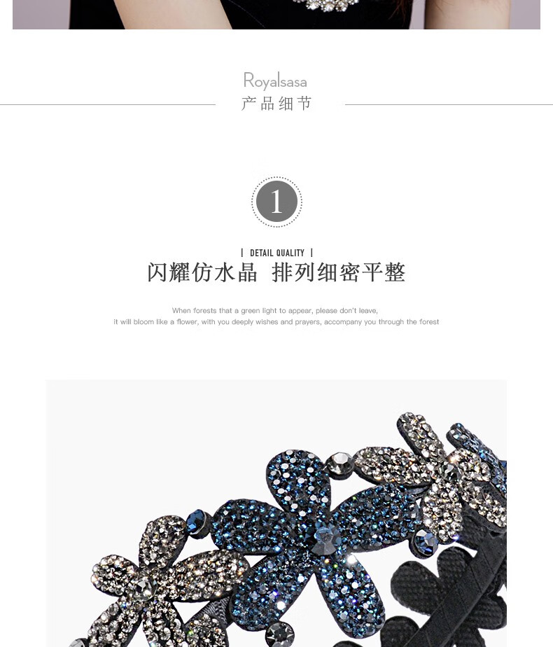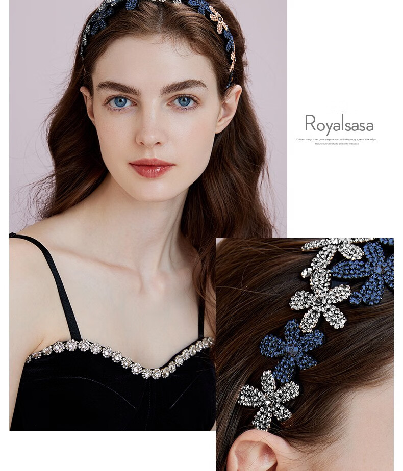 Royal sasa Korean hair accessories non-slip rhinestone wide-brimmed hairband hairpin hairpin simple temperament headband women's head accessories champagne color CP