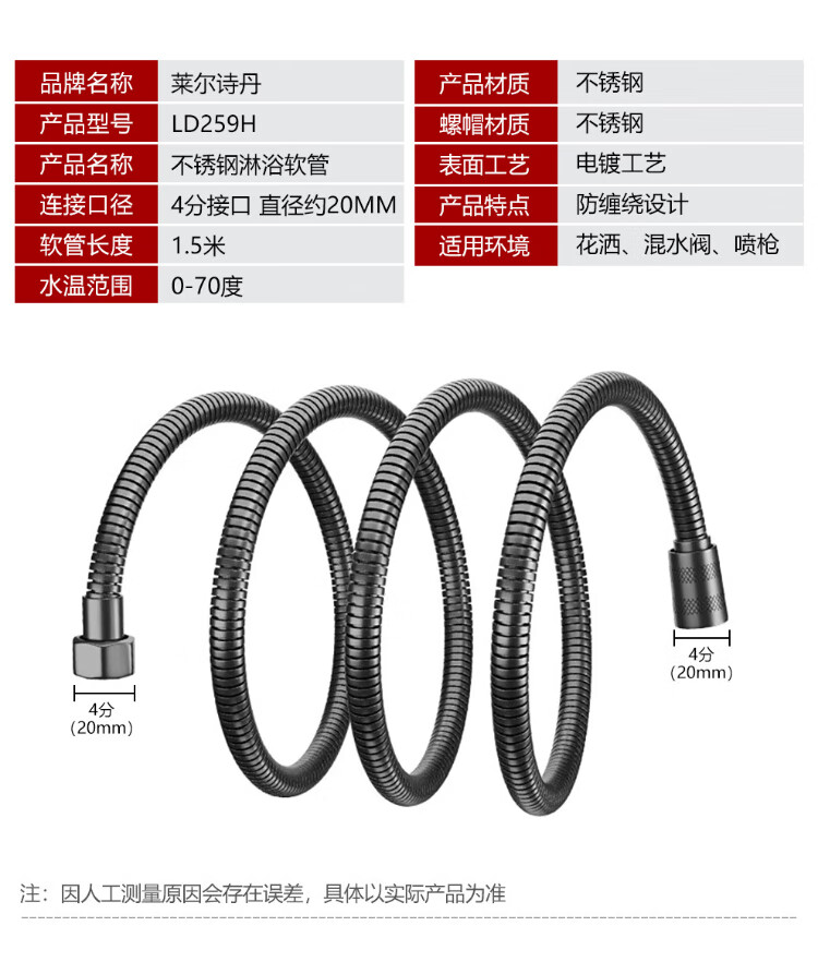Larsd shower hose 1.5 meters stainless steel shower head explosion-proof anti-tangle water pipe LD259H