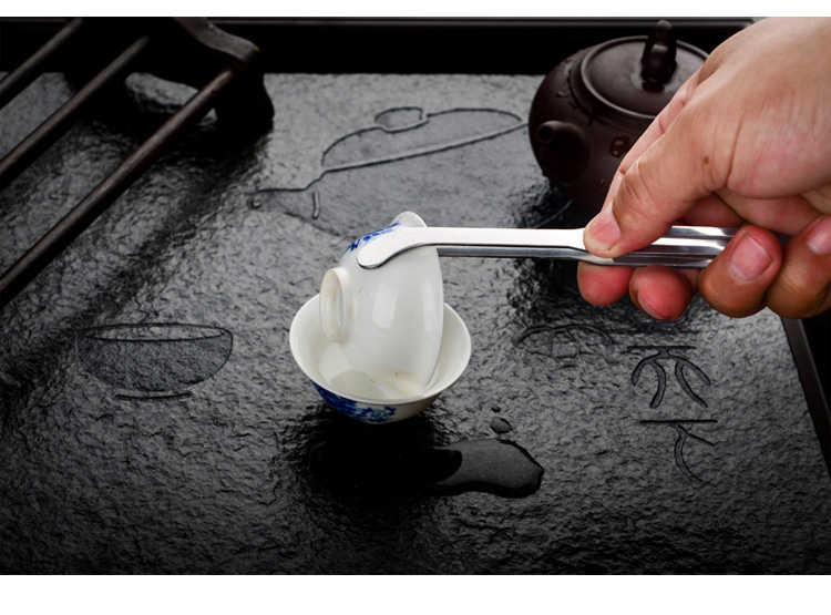 Hongtiepu thickened stainless steel tea clip metal tweezers tea clip Kung Fu tea set clip tea cup clip tea ceremony accessories No. 5 22 cm lengthened and thickened 3MM stainless steel tea clip
