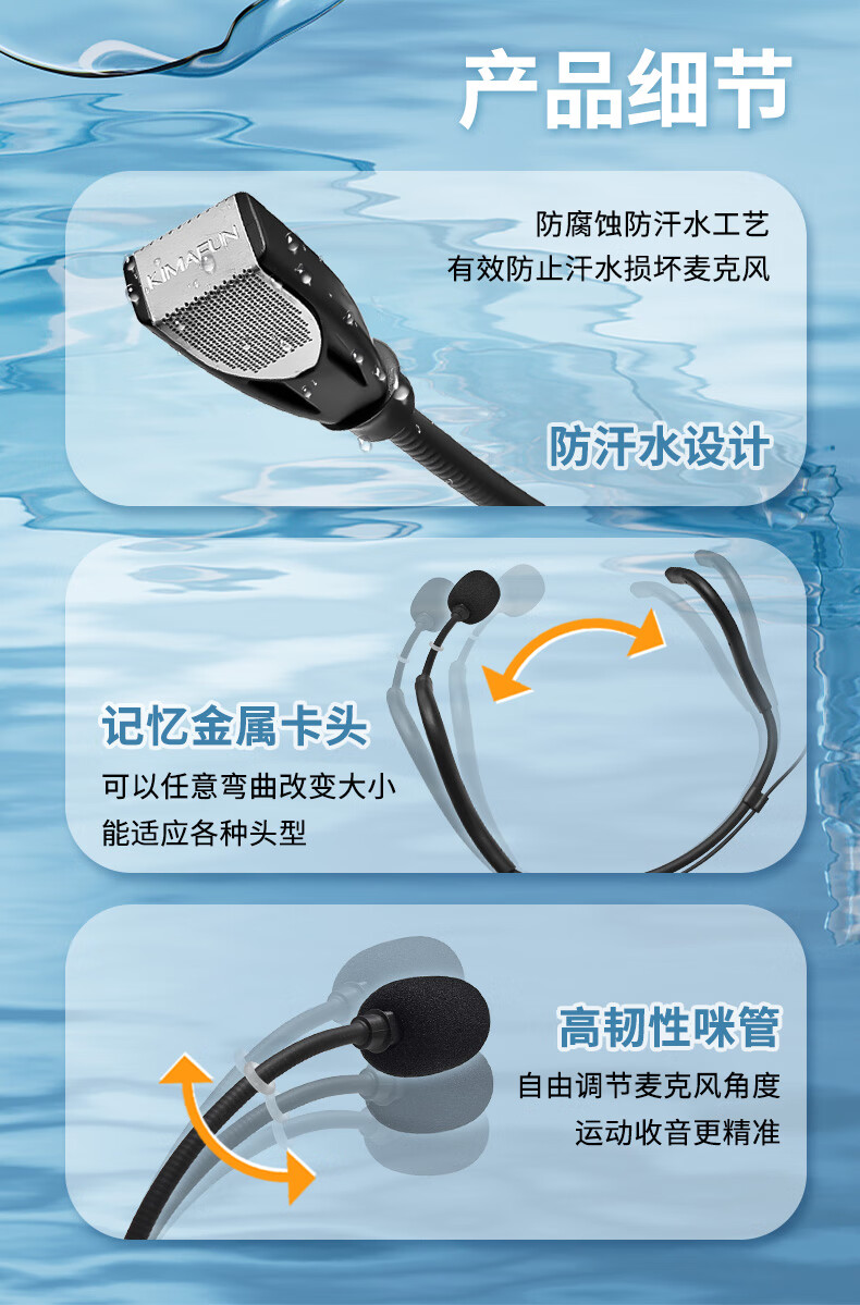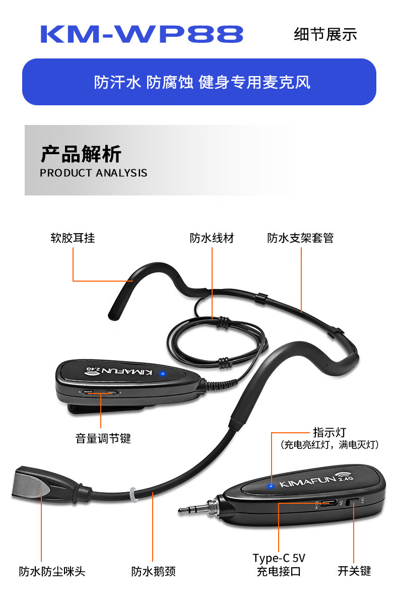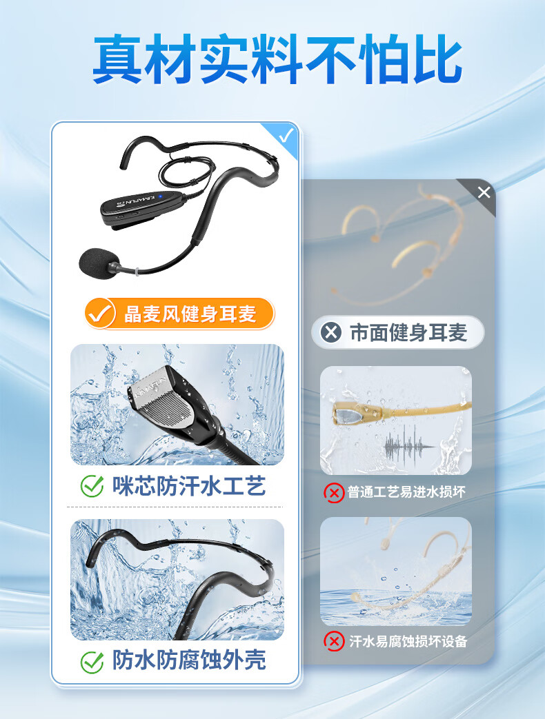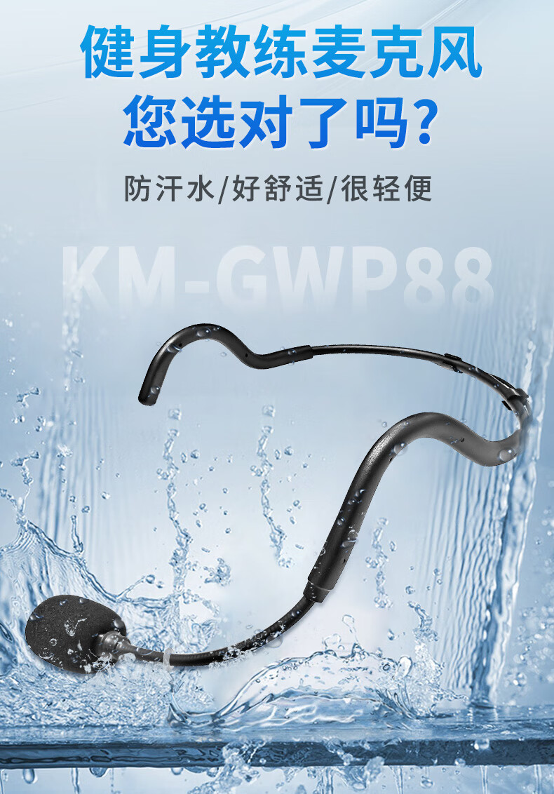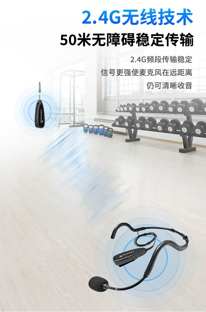 Crystal Microphone GWP88 Sweat-proof Headset Fitness Coach Wireless Microphone Head-mounted Group Class Exercise Live Broadcast Microphone Spinning Bike Square Dancing Sports Pickup GWP88 Anti-sweat and anti-shedding Long-range transmission and long battery life