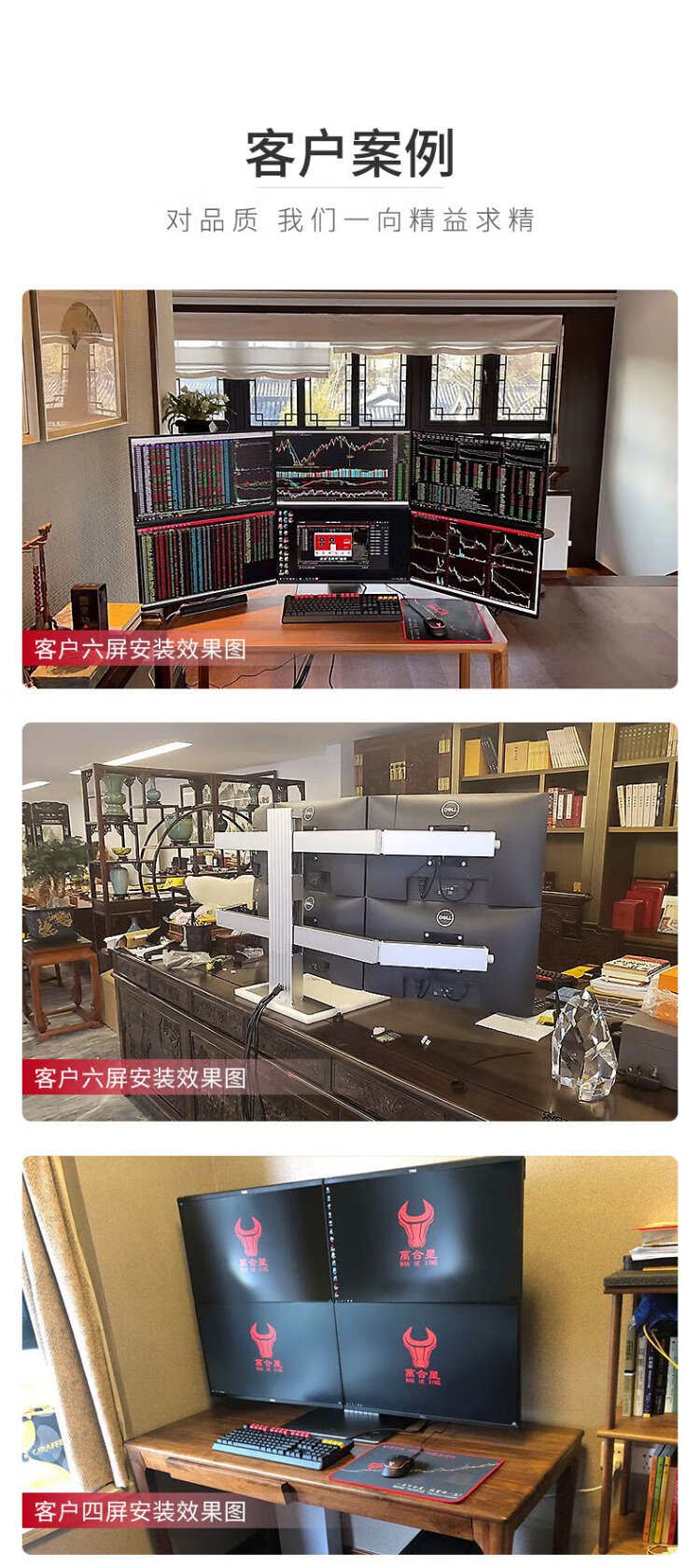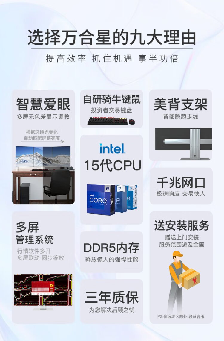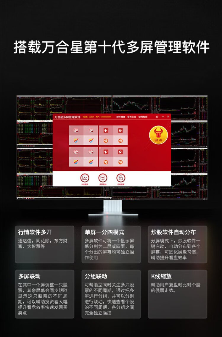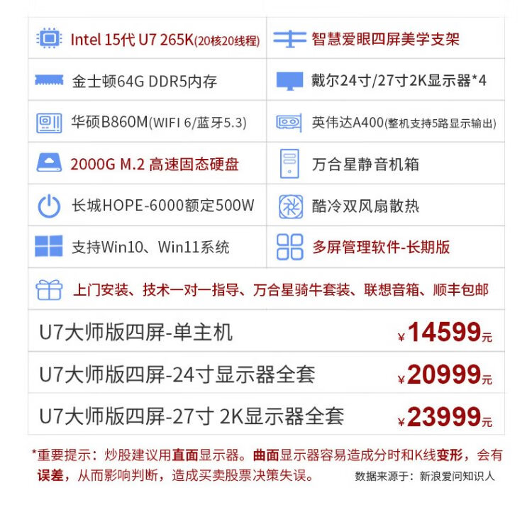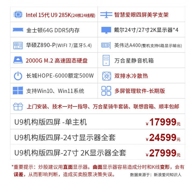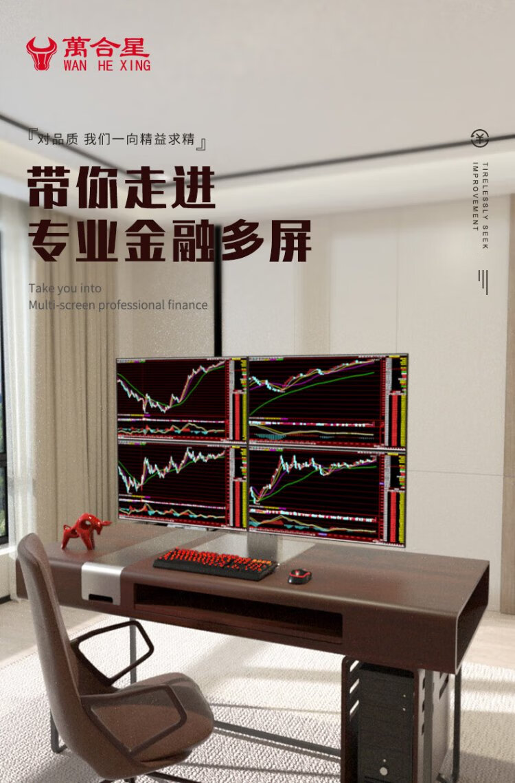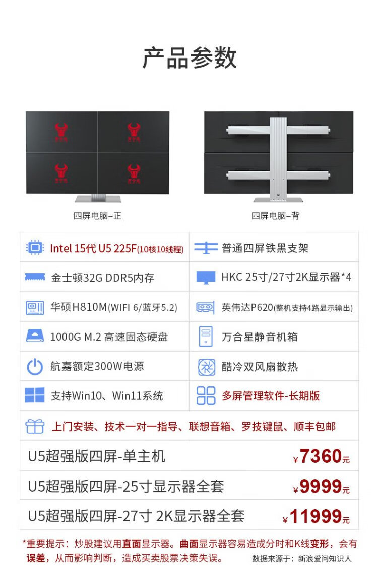WAN HE XING multi-screen computer, one machine, four screens, special computer host for stock trading, stock market reading, foreign exchange assembly, desktop computer, full set of futures, super version, 15th generation U5 32G 1000G丨black bracket, 24-inch HD monitor, complete set (including door-to-door installation)