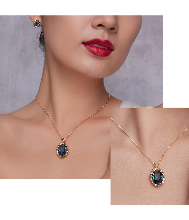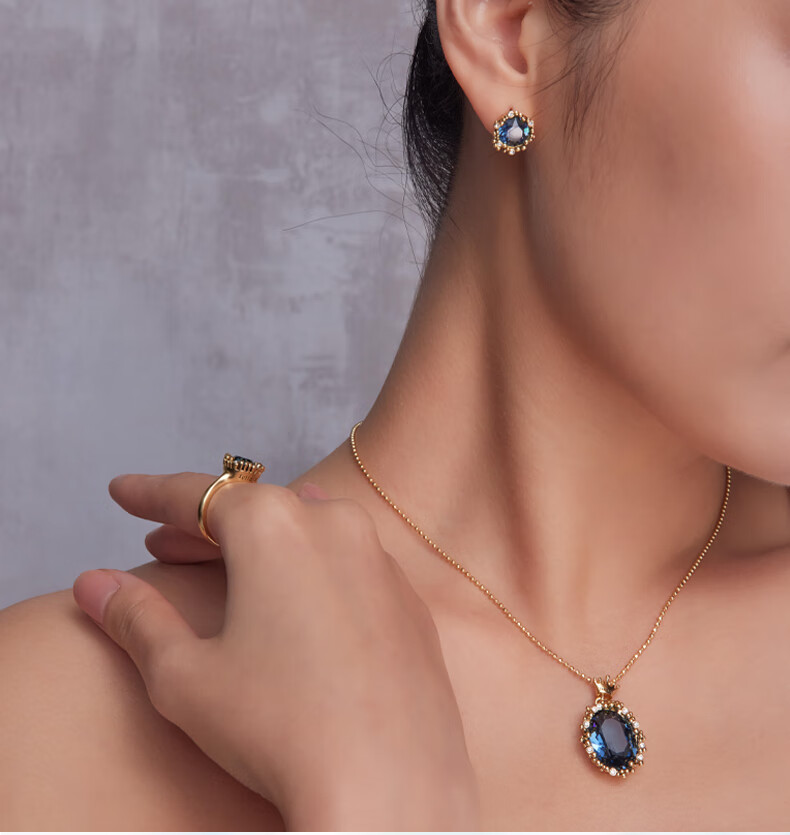 Fellala (fallala) shopping mall same style Lingshi artificial blue semi-precious stone necklace for women exquisite and elegant versatile clavicle chain pendant jewelry