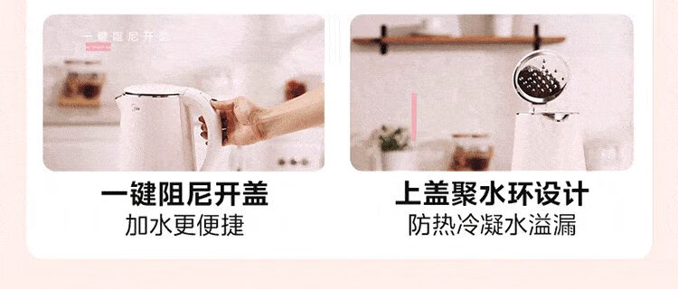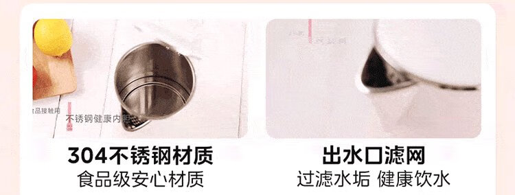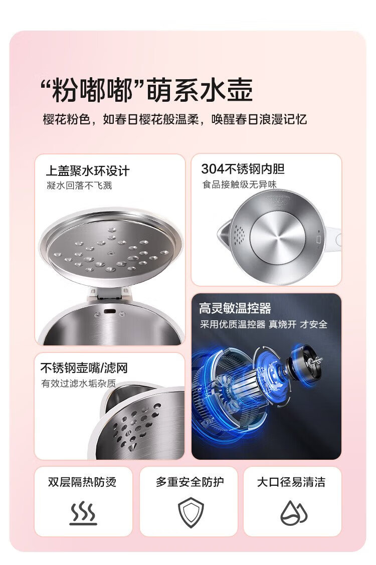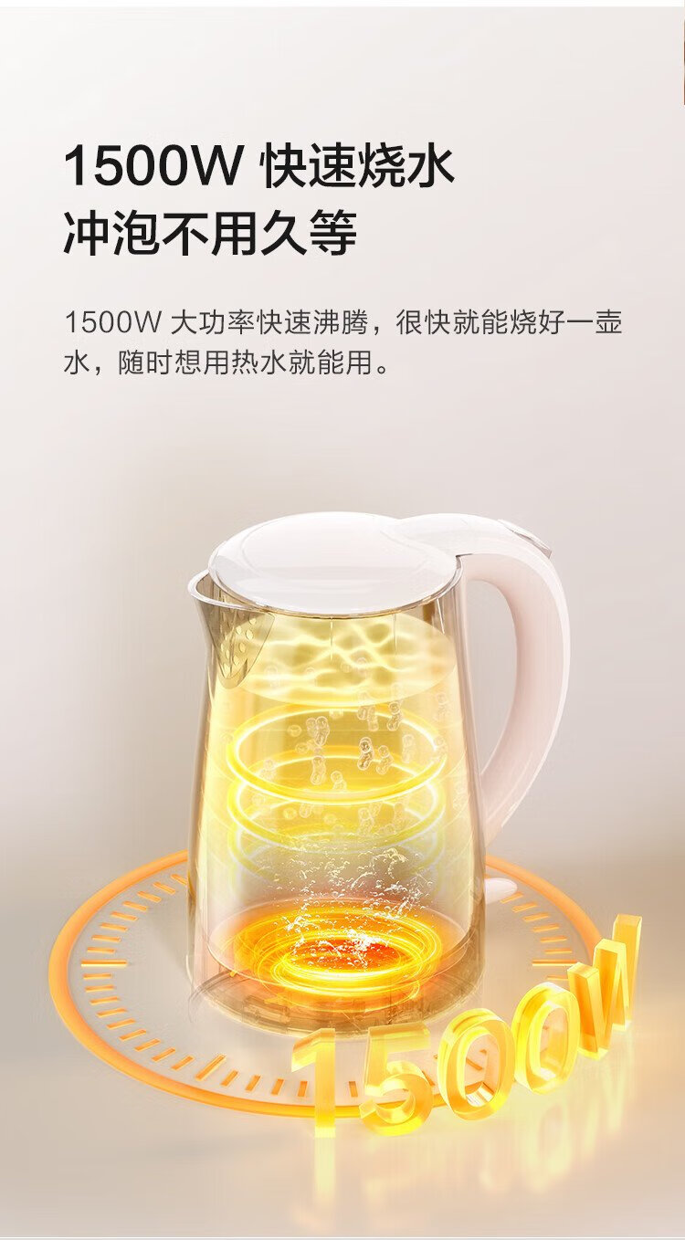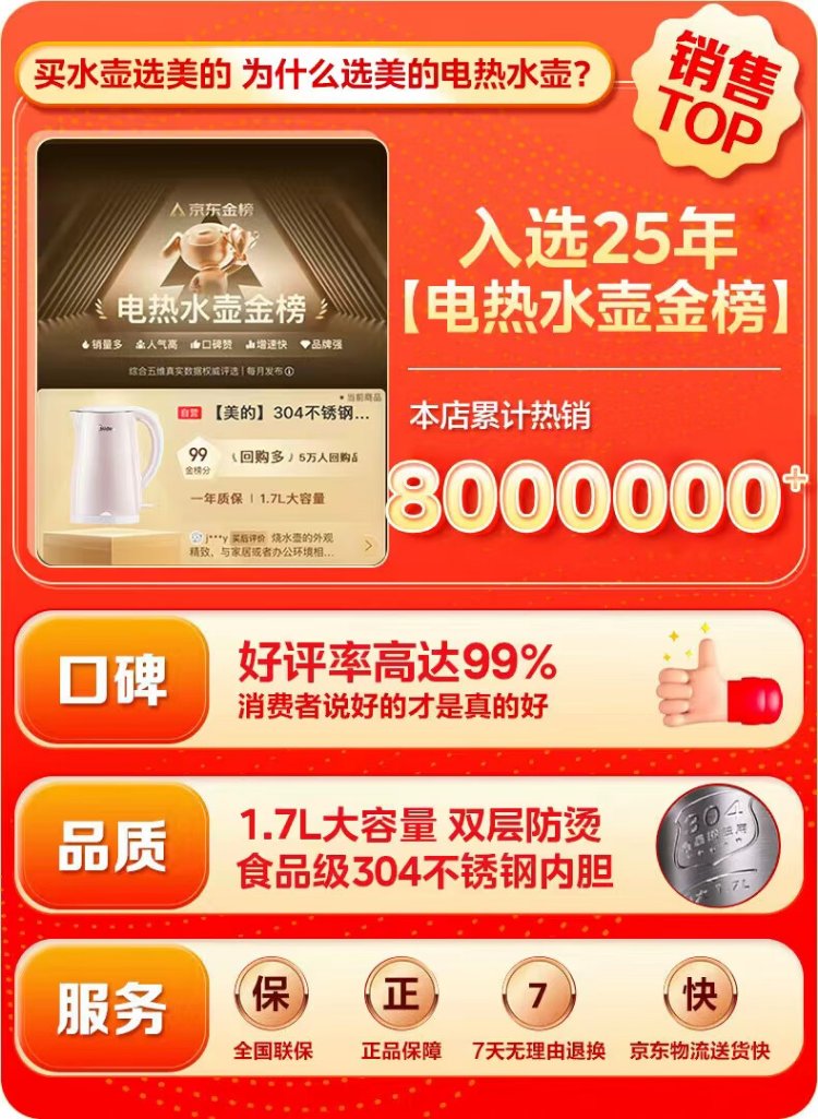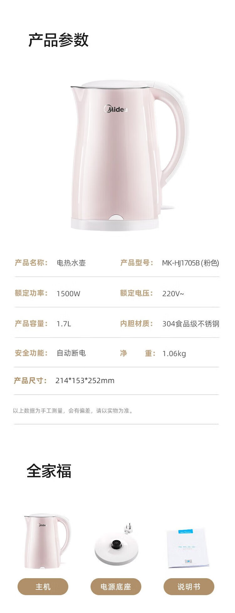 Midea electric kettle electric kettle kettle double-layer anti-scalding price guarantee 11.11 0 coating food grade 304 stainless steel 1500W fast boiling 1.7L large capacity HJ1705