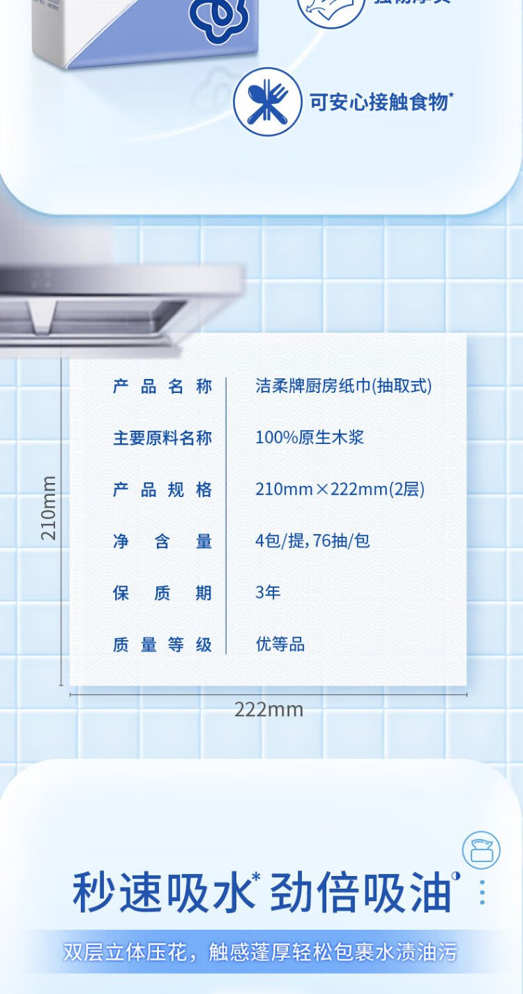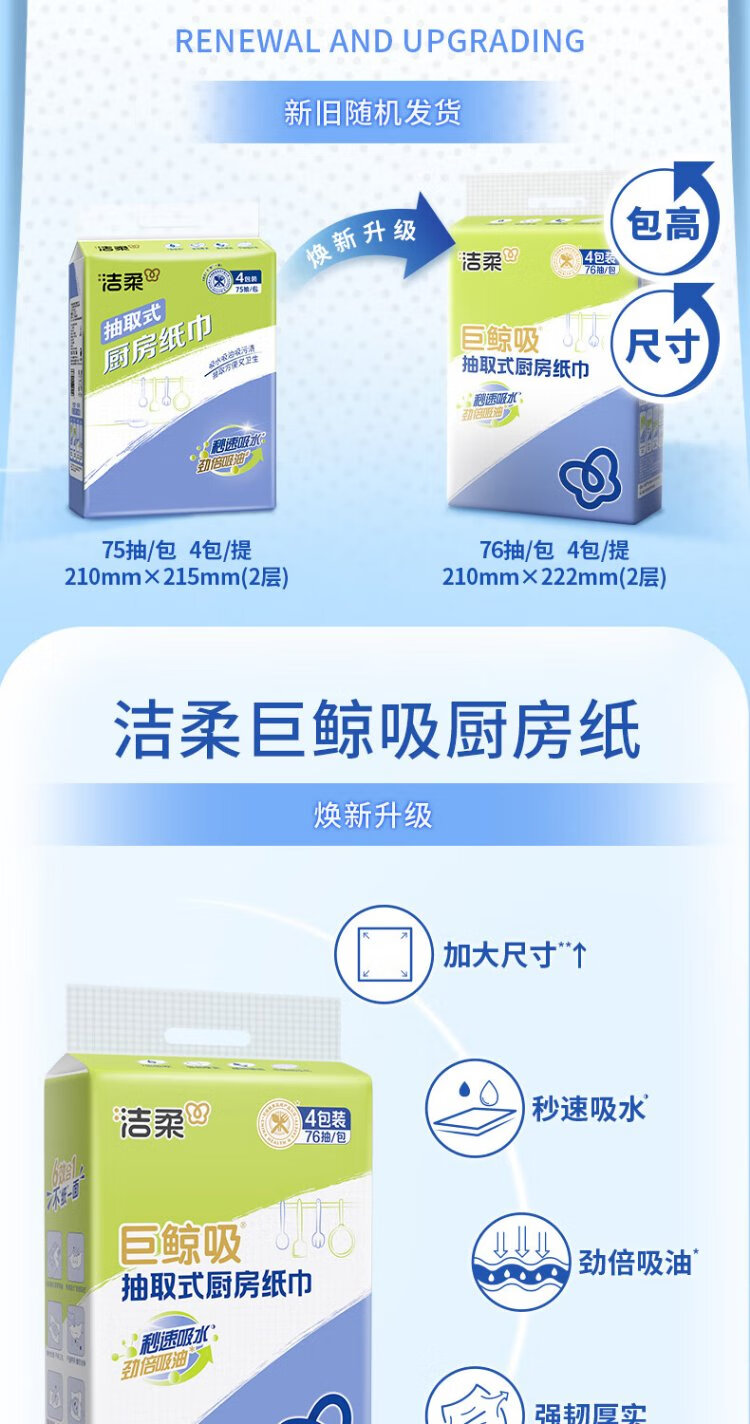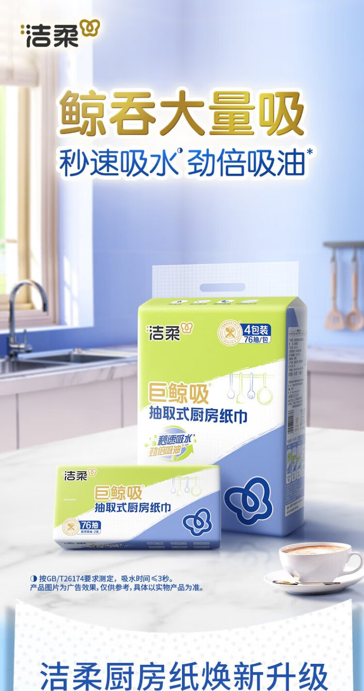 Jierou Kitchen Tissue Paper 75*4 packs double-layer thickened water-absorbent and oil-absorbent disposable lazy rags Large Specifications shipped randomly