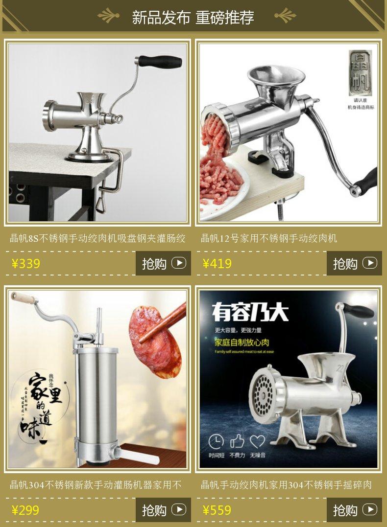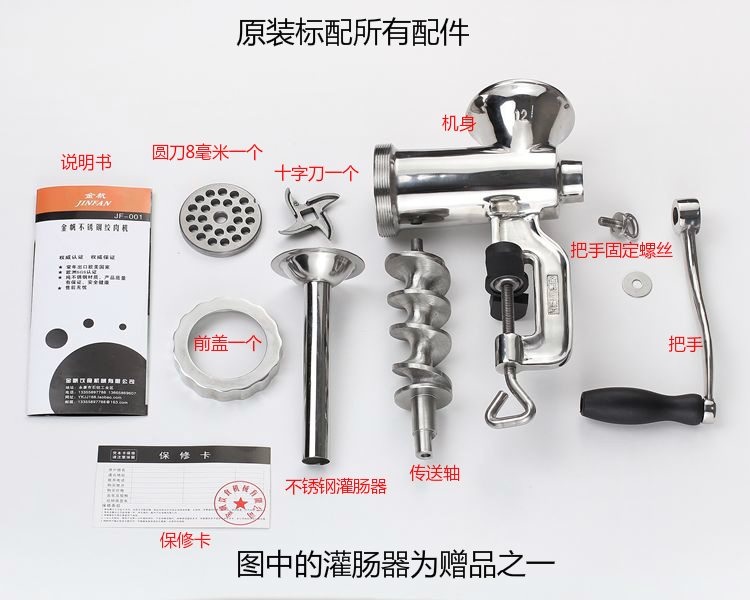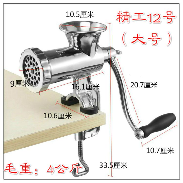 Jingfan Manual Meat Grinder Household 304 Stainless Steel Hand-cranked Meat Mincer No. 12 Meat Mincer Machine Sausage Machine Meat Stuffing Machine Fish Ball Machine Chili Machine No. 8 Stainless Steel Clamp Meat Grinder