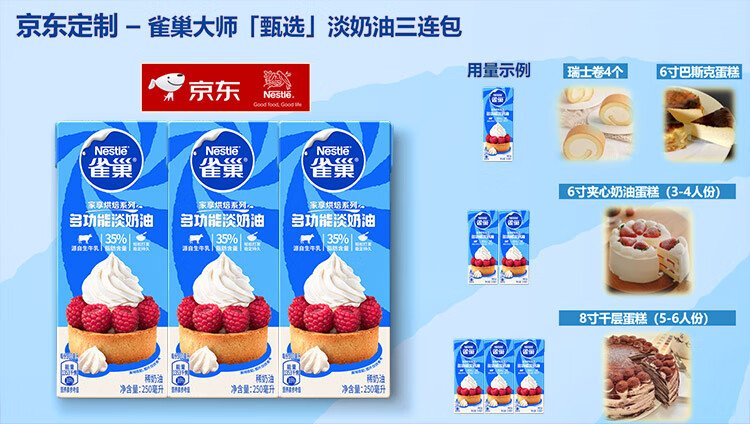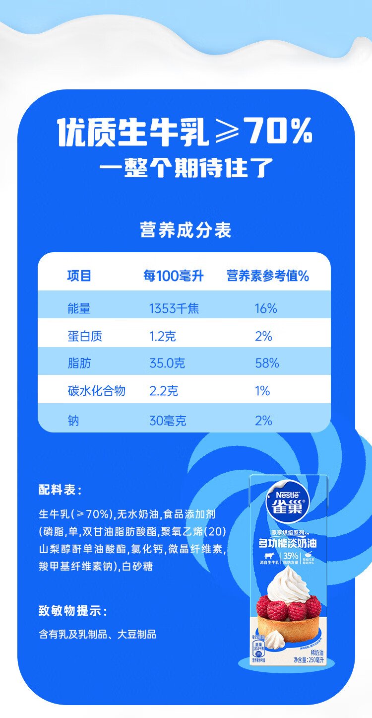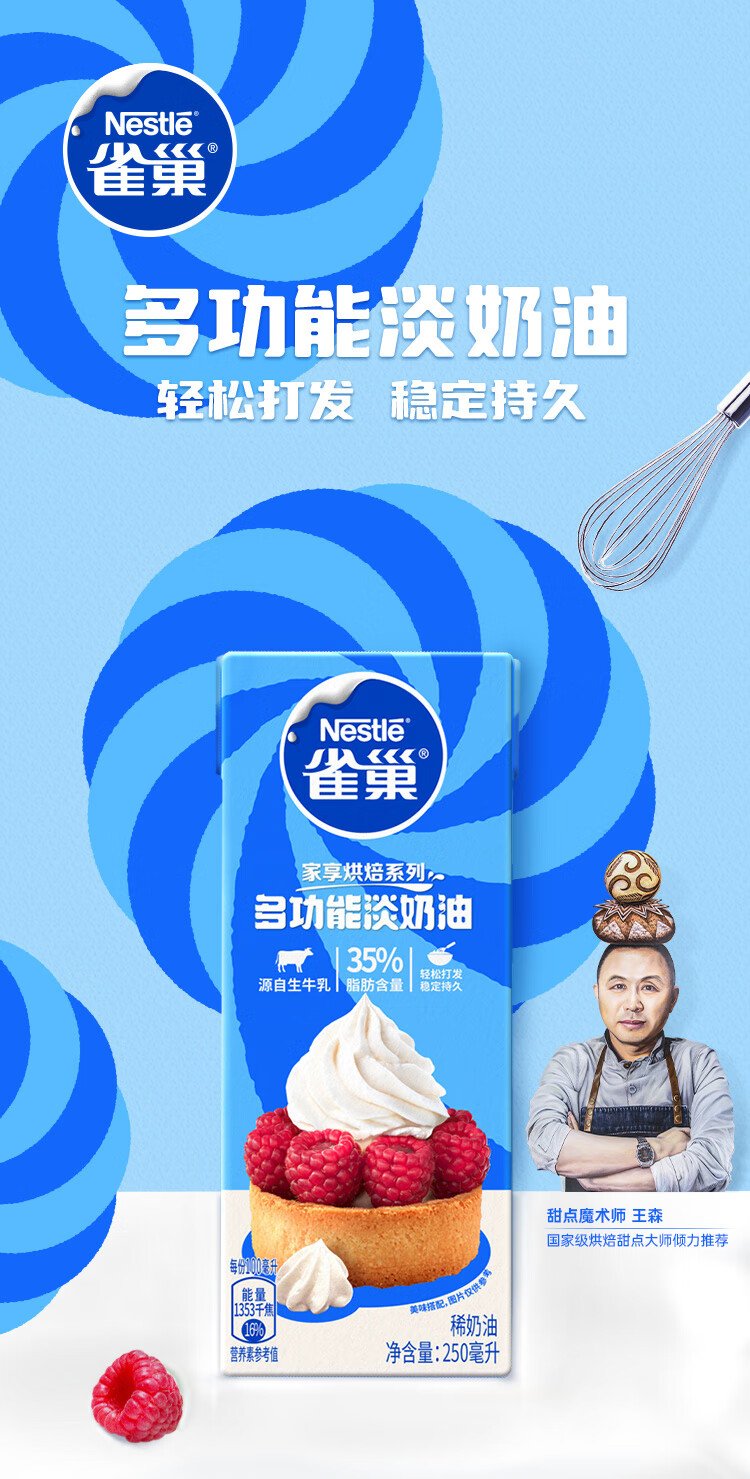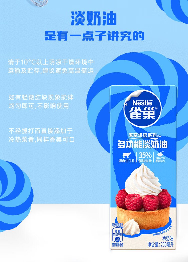 Nestle Baking Ingredients Light Cream Stored at Room Temperature Easy to Whip Cake Decorated Egg Tart Animal Cream Cream 250ml