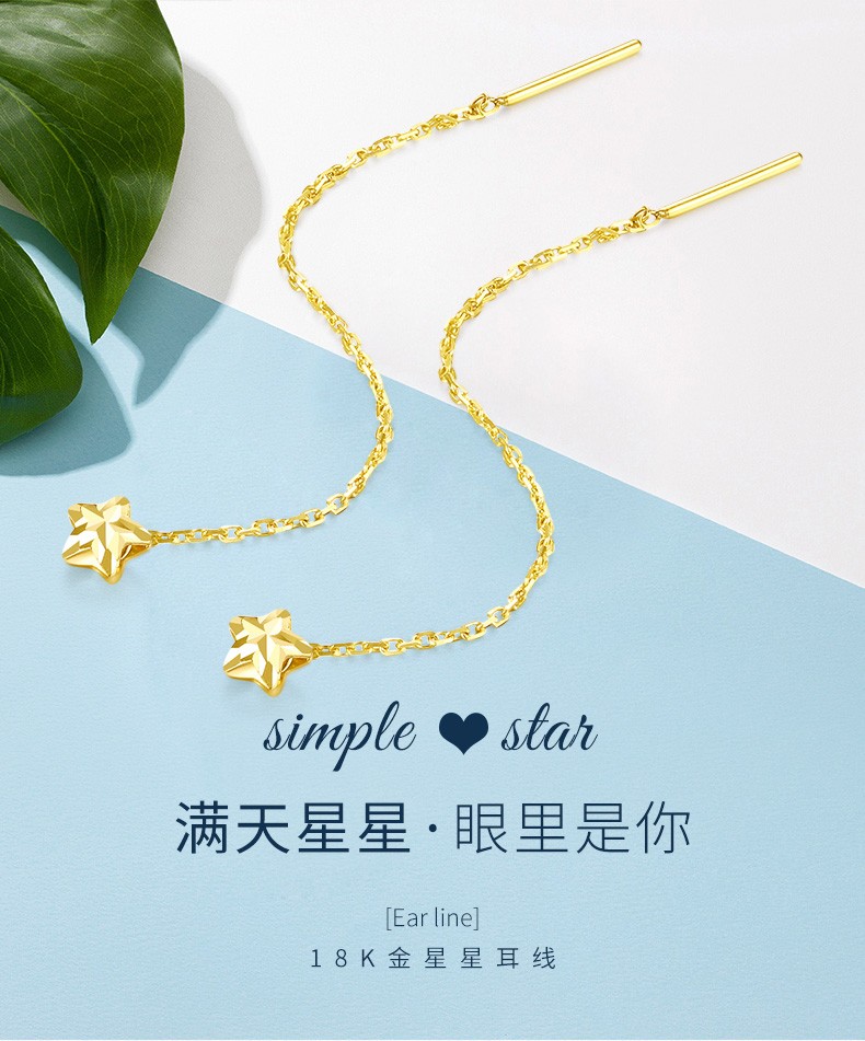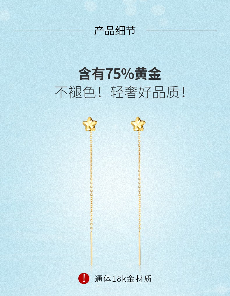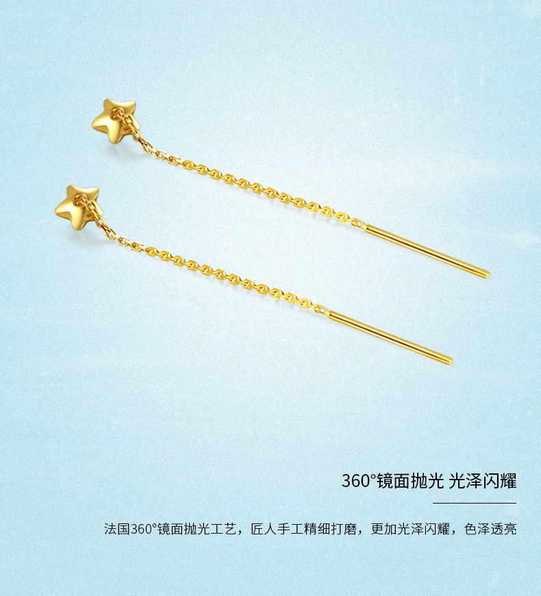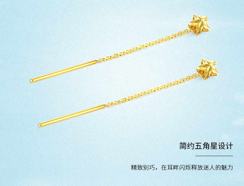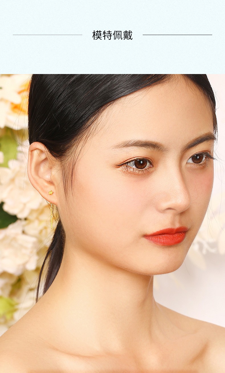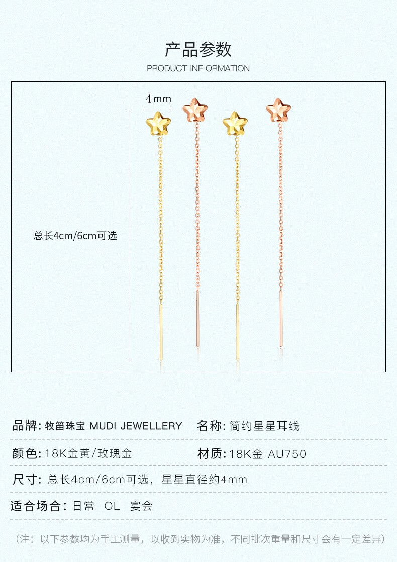 MUDI 18K gold stud earrings for women, rose gold stars, tassel earrings, lover's gift for girlfriend's birthday, K yellow 4CM/pair