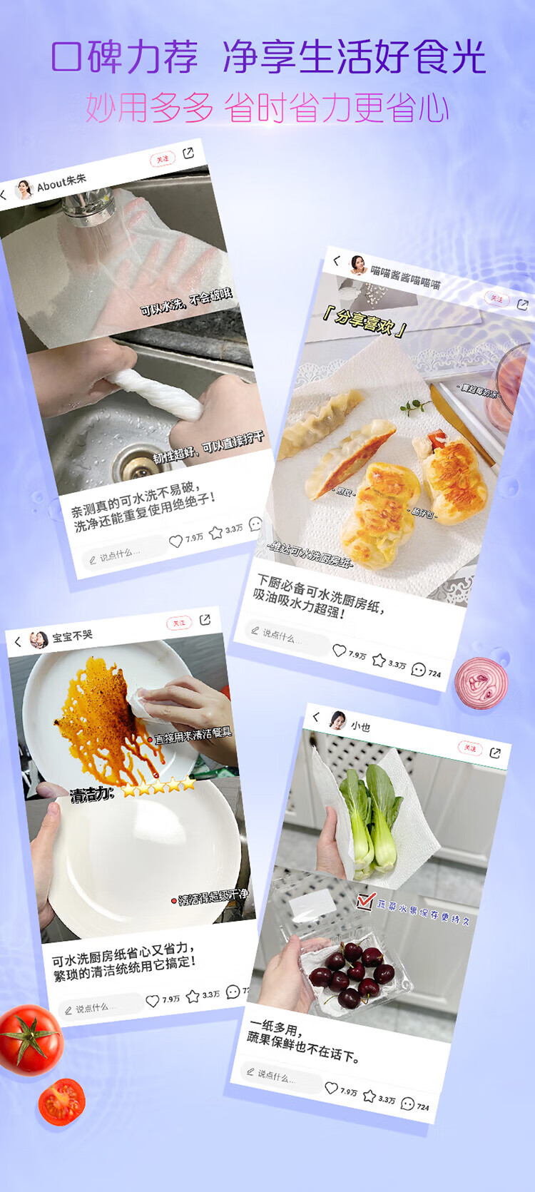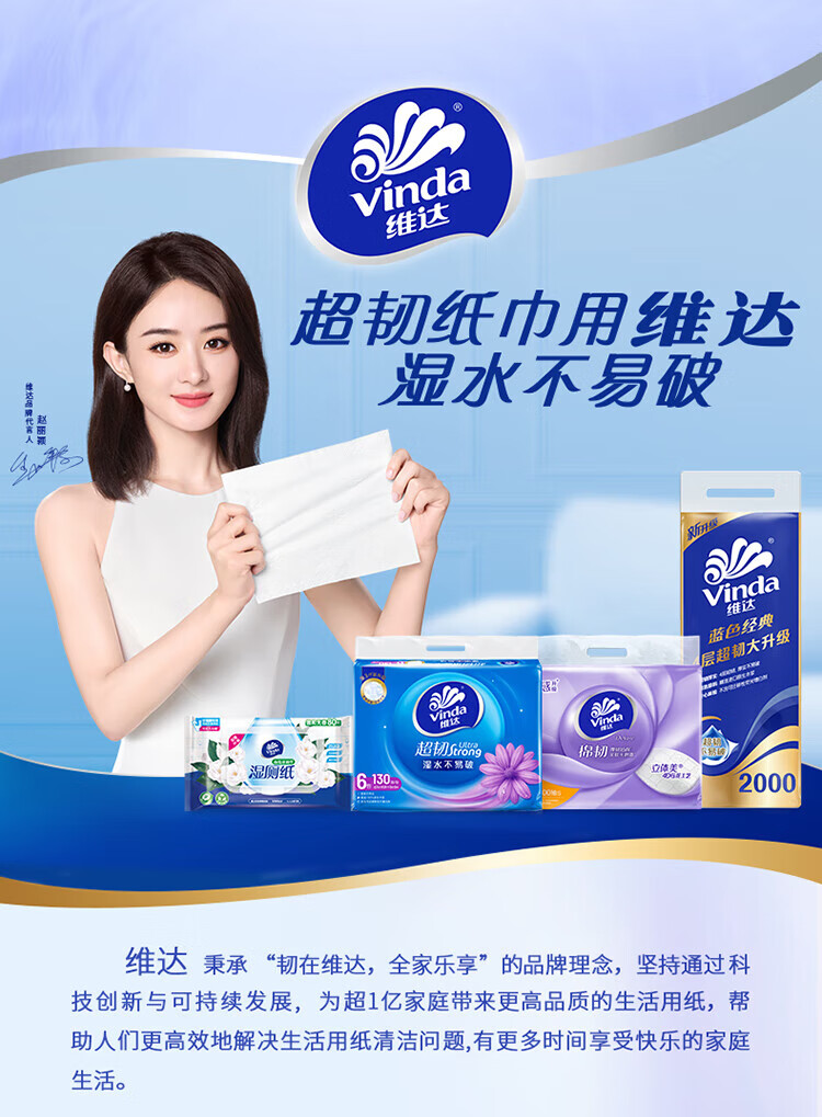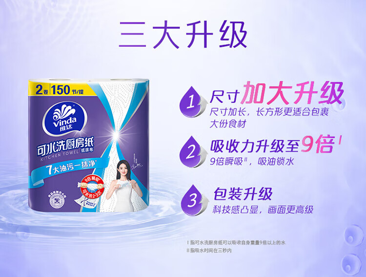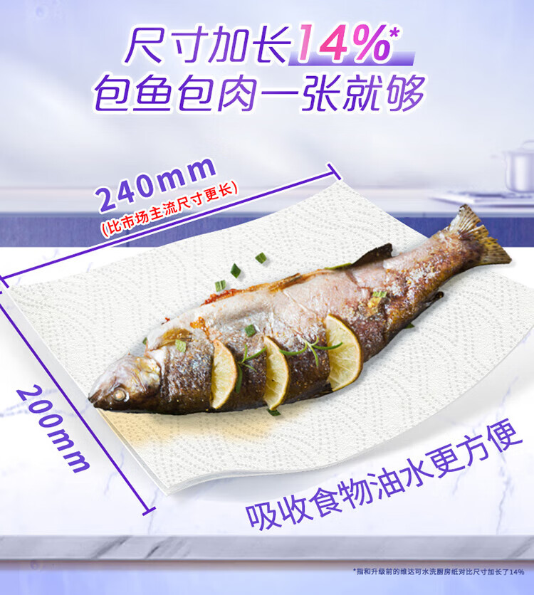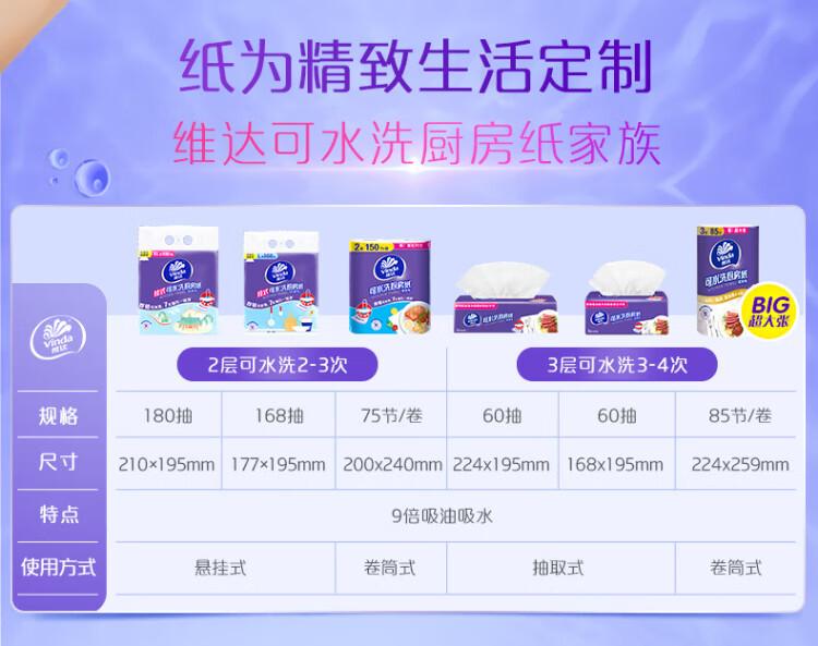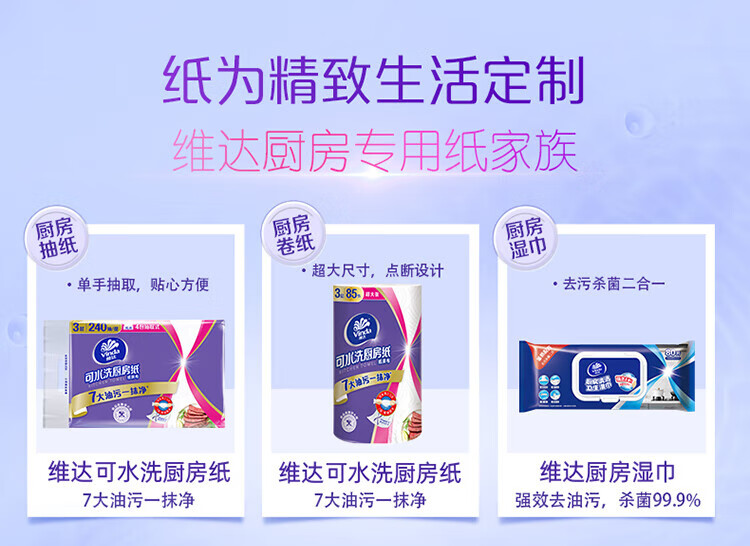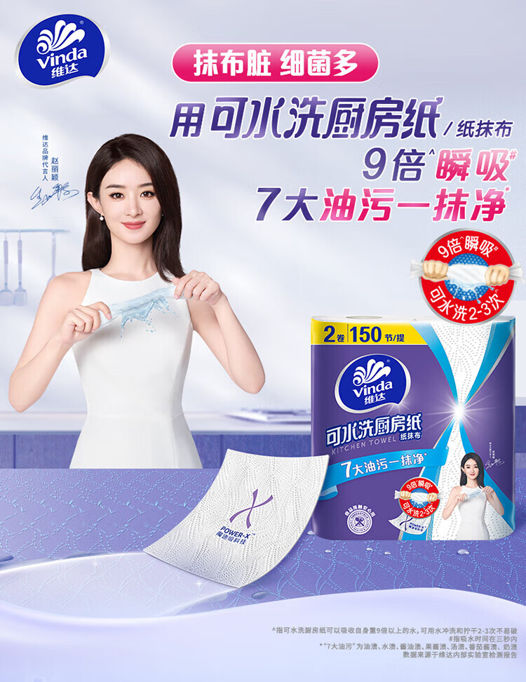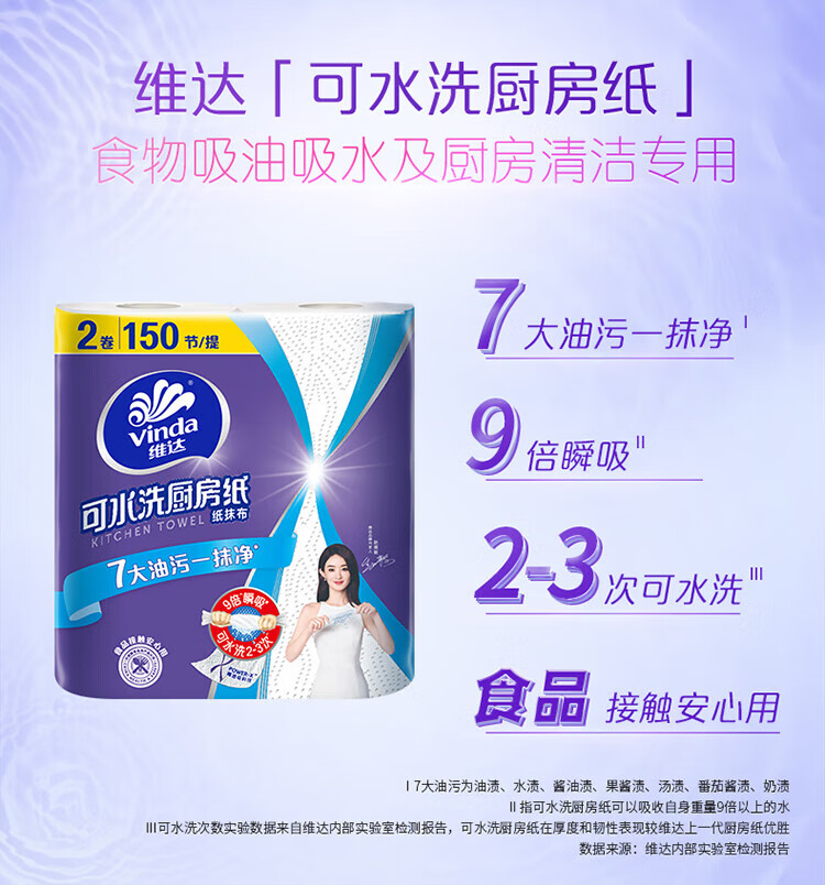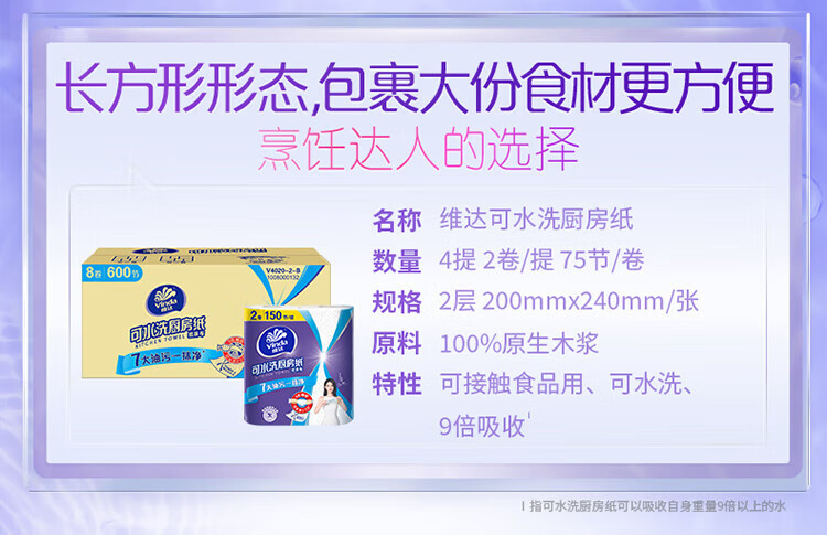 Vinda kitchen roll recommended by Sun Yingsha, washable 75 sections*8 rolls, lazy rag, kitchen paper, whole box