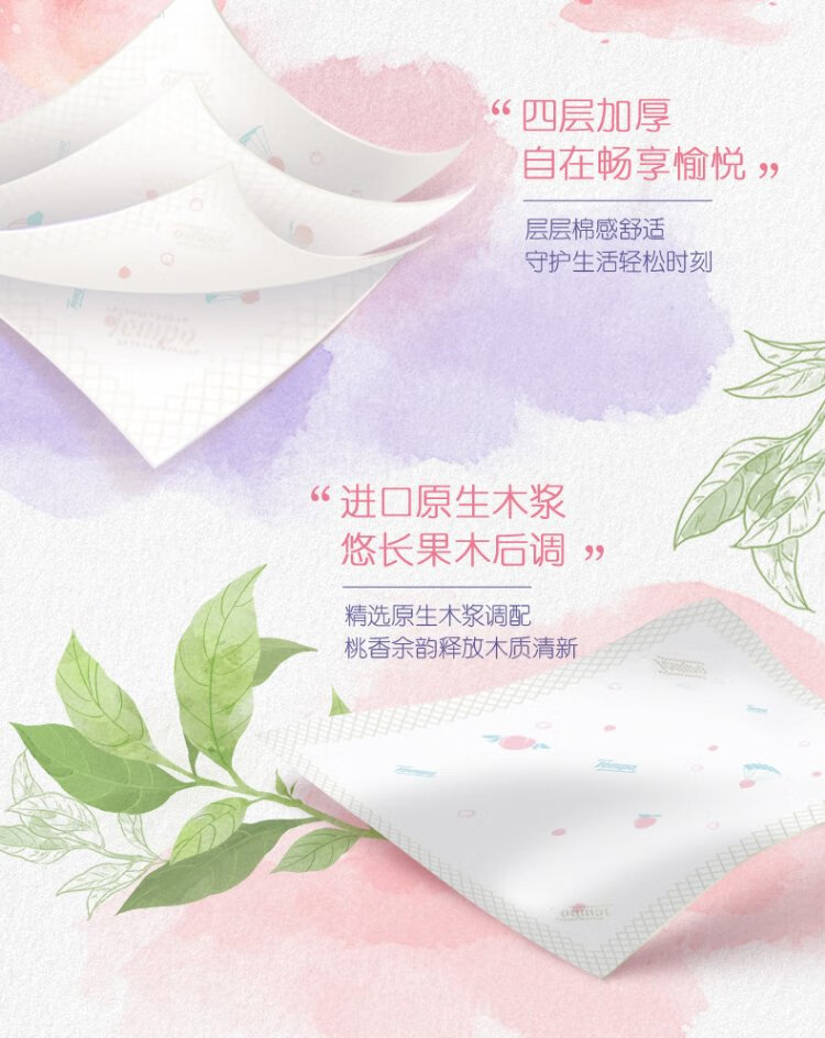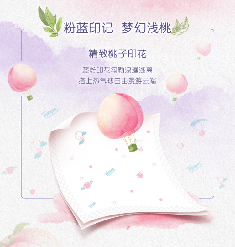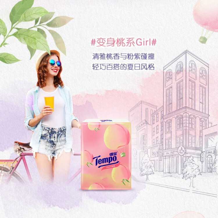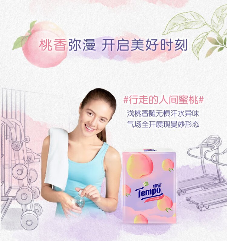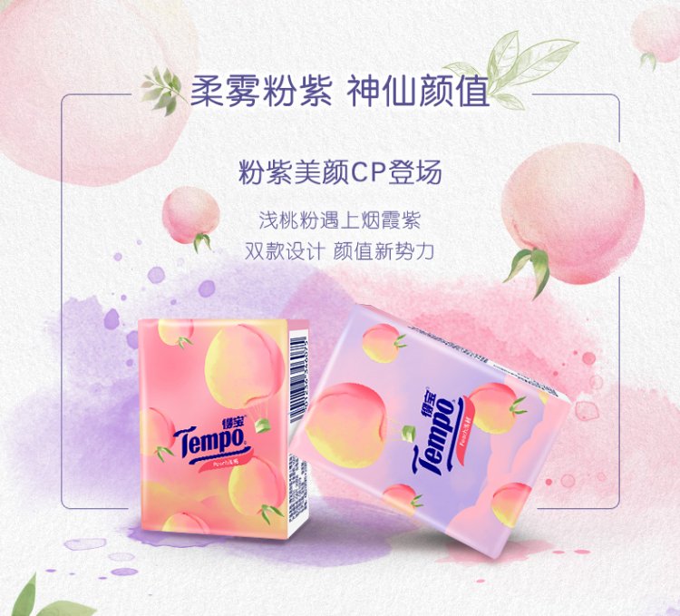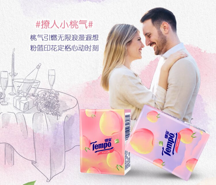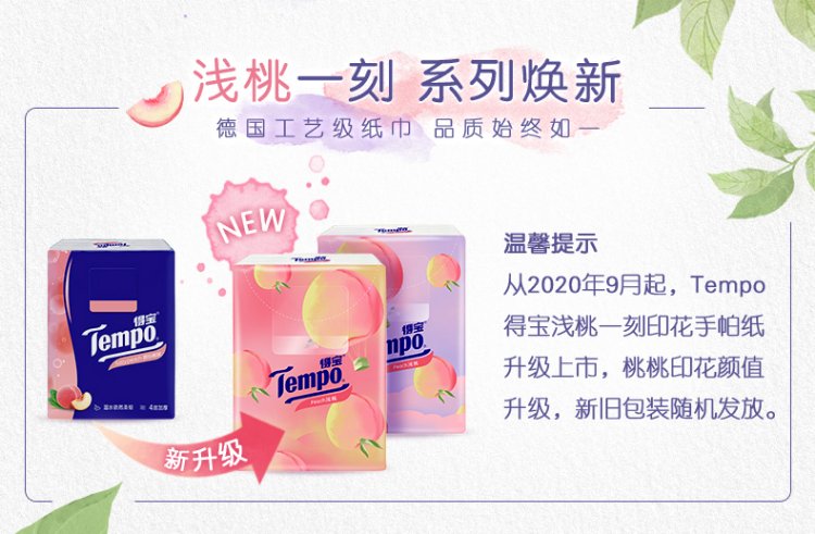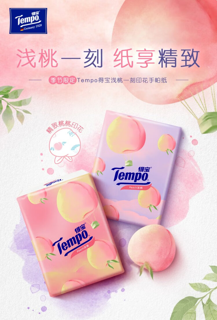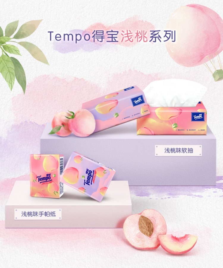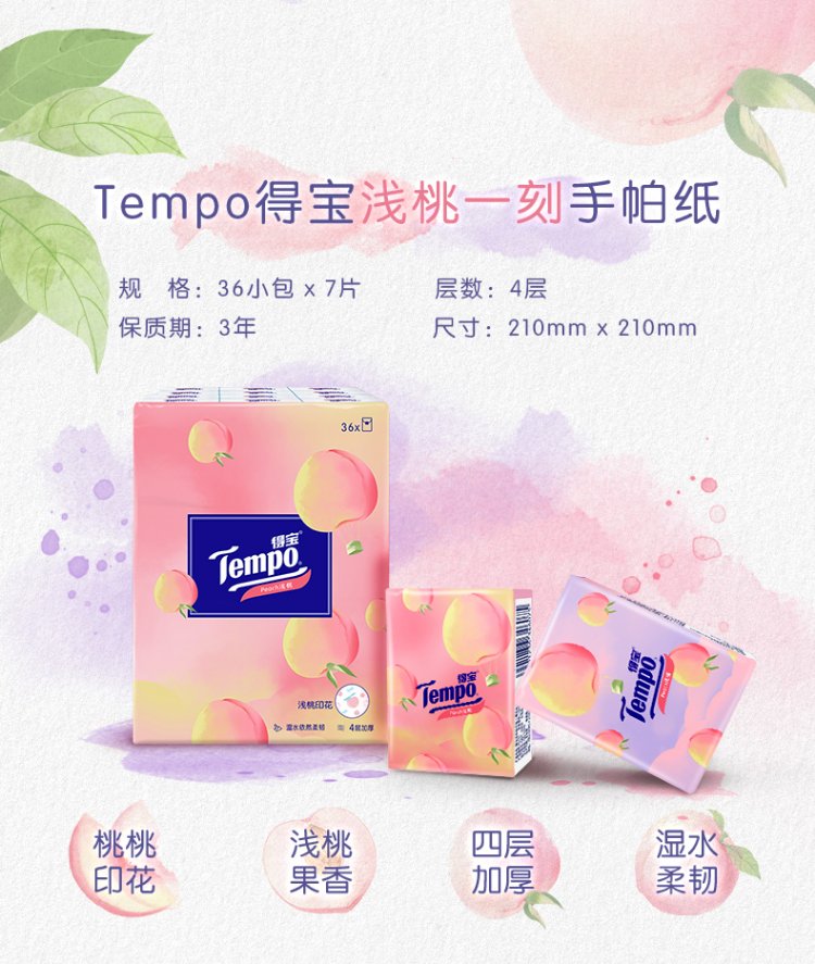 TEMPO Yibo same style handkerchief paper, sweet peach flavor 4 layers, 7 sheets * 36 pack, not broken when wet, tissue paper packet, facial tissue
