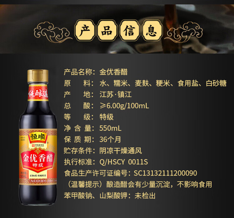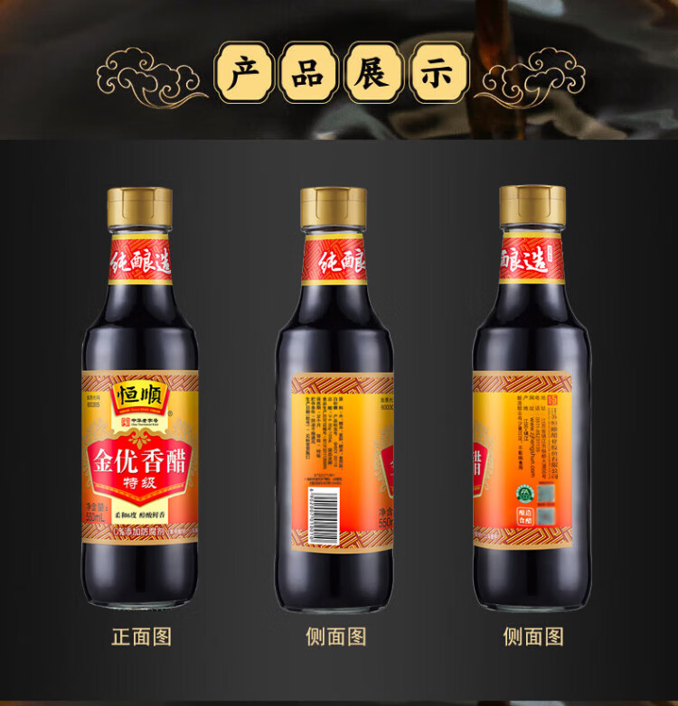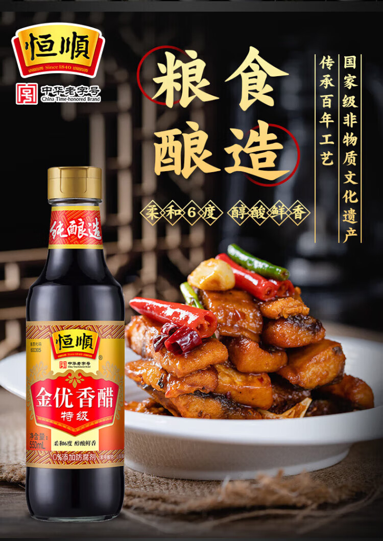 Hengshun Jinyou Balsamic Vinegar Special Grade 6% 550ml Glutinous Rice Brewing Zhenjiang Balsamic Vinegar No Preservatives Added