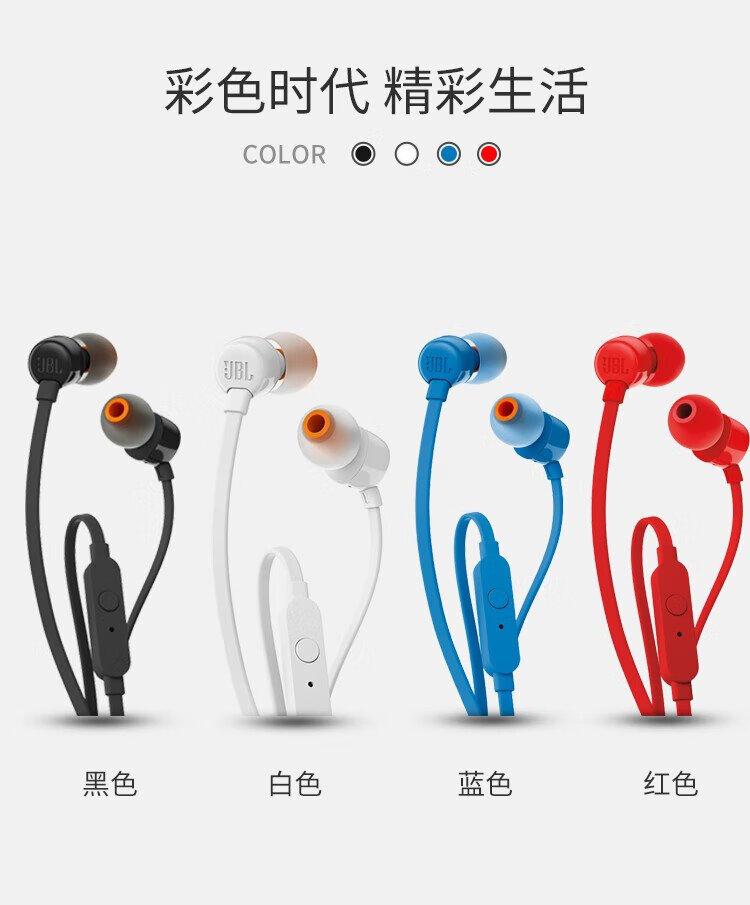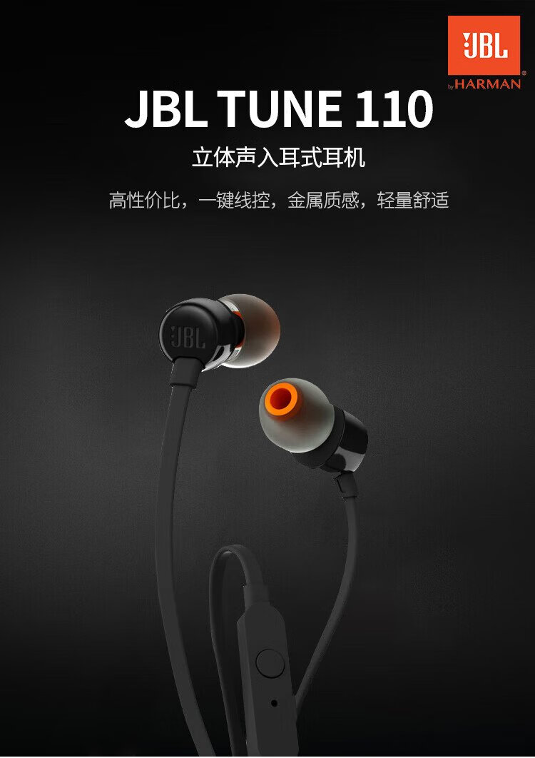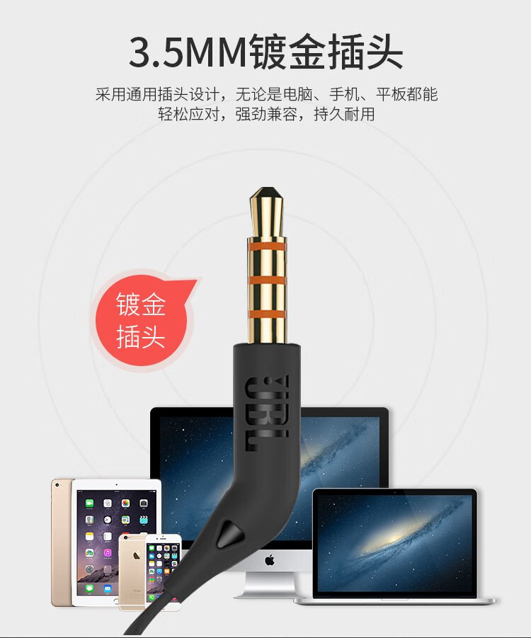 JBLT110 wired headset stereo in-ear headset computer game sports headset suitable for 3.5mm interface equipment white