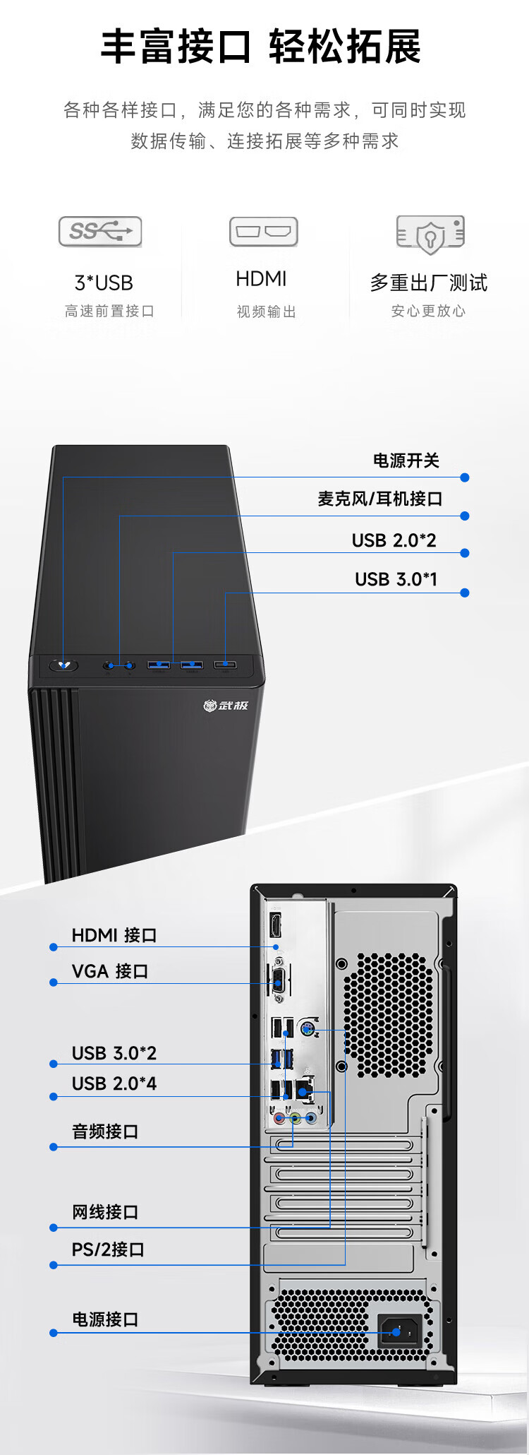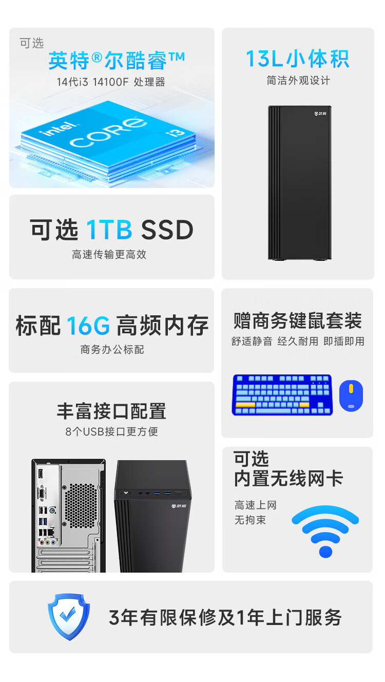 Wuji Shangzhi Core 12th Generation i3 12100 Enterprise Procurement Mini Office Design Commercial Home Desktop Computer Game Console Full Set DIY Assembly Machine 12100+16G+512G丨Configuration 2 Single Host