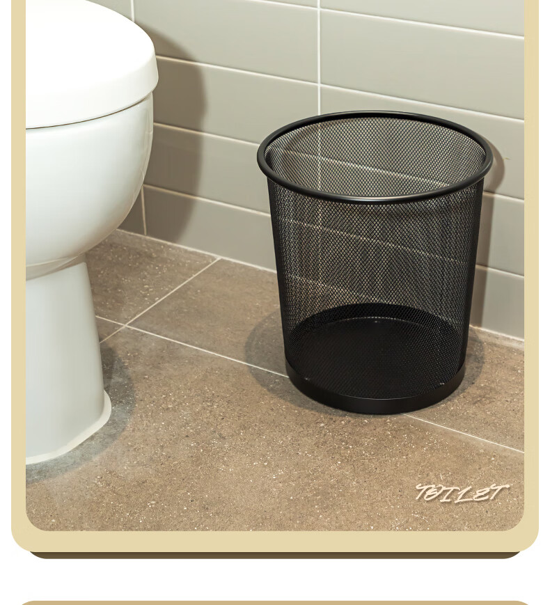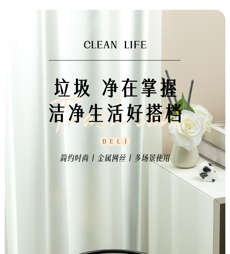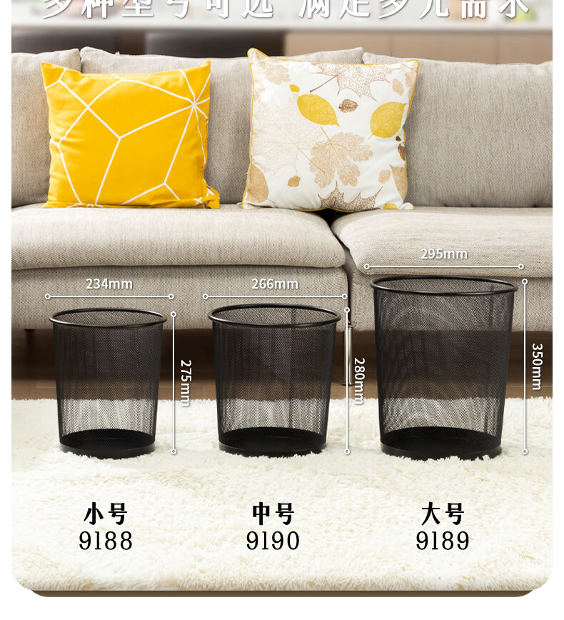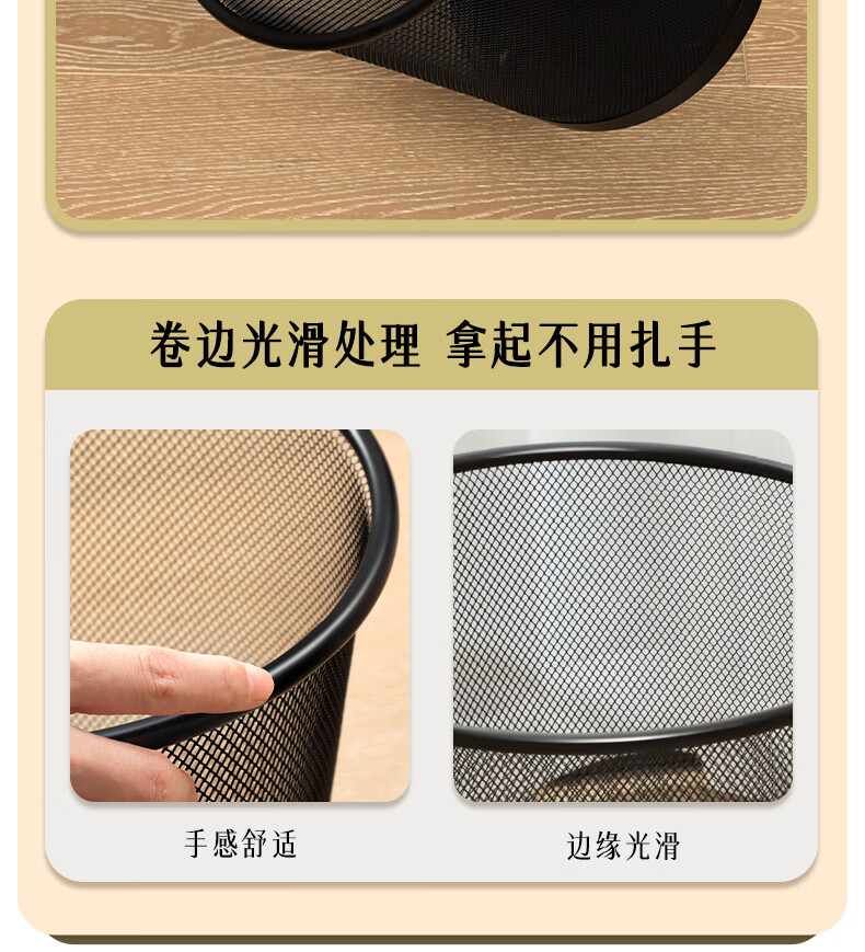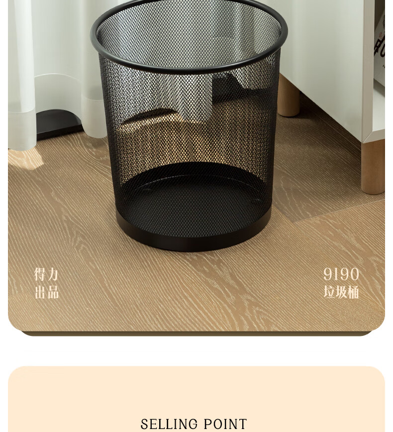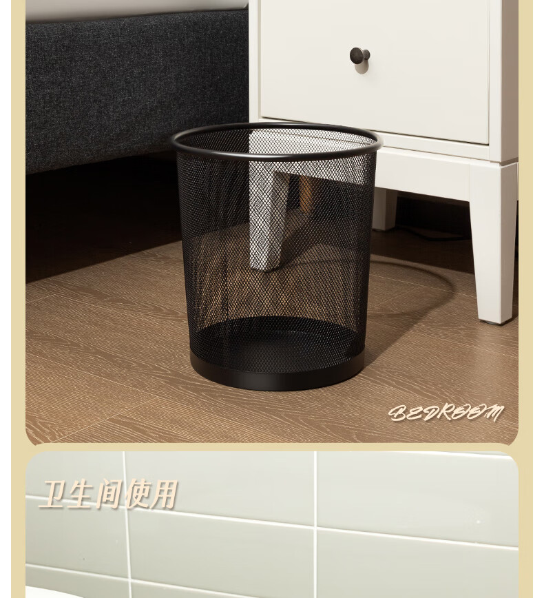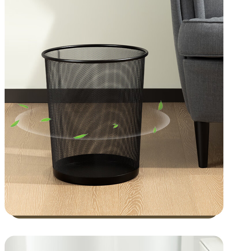 Deli 26.6cm medium metal mesh round paper basket office household trash can garbage classification office supplies black 9190