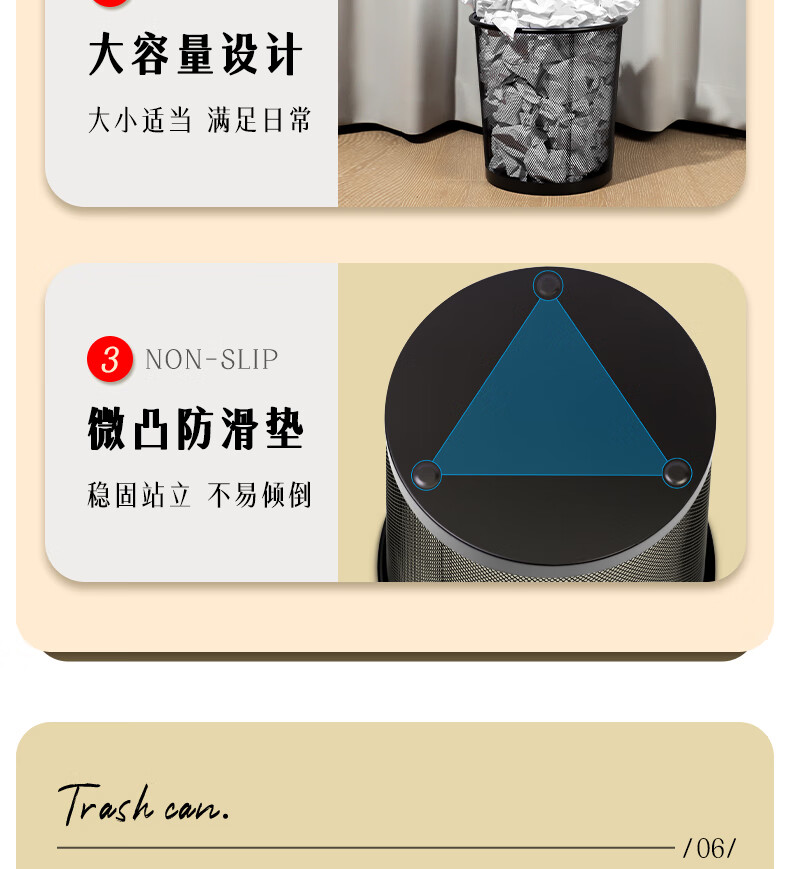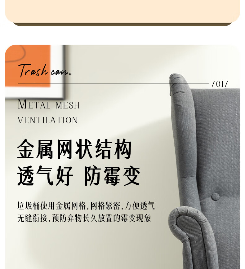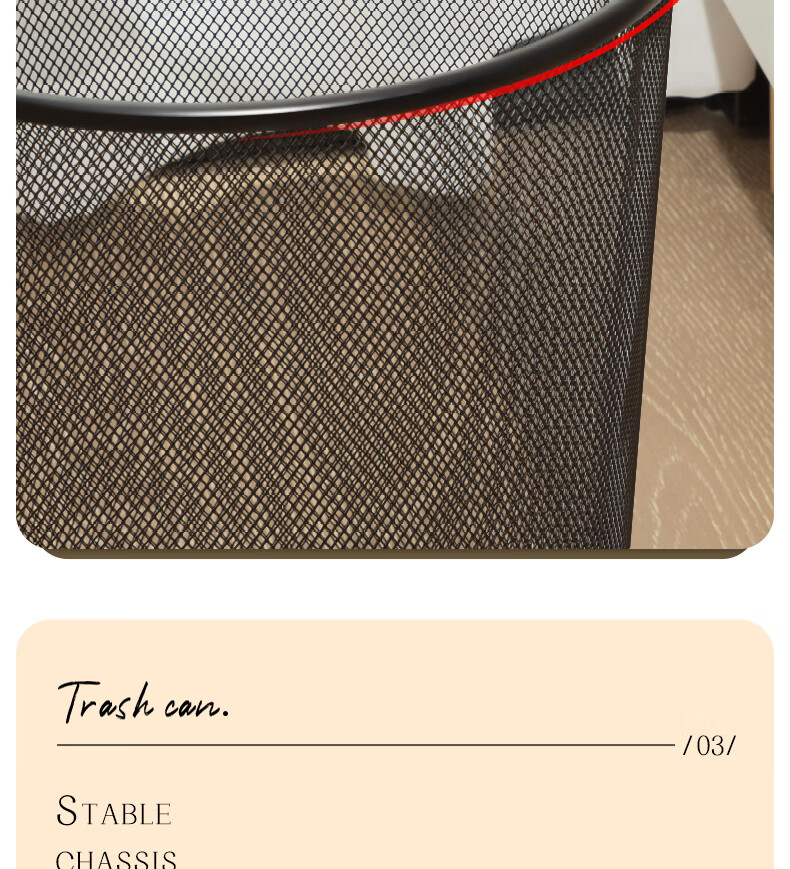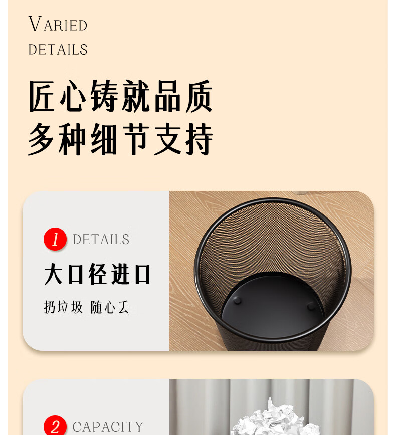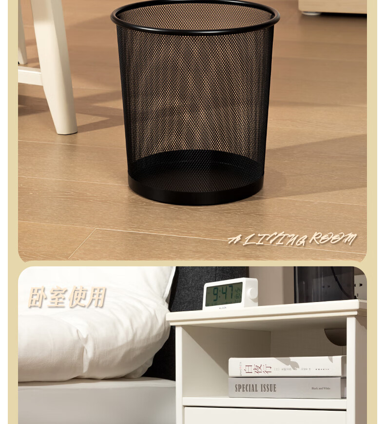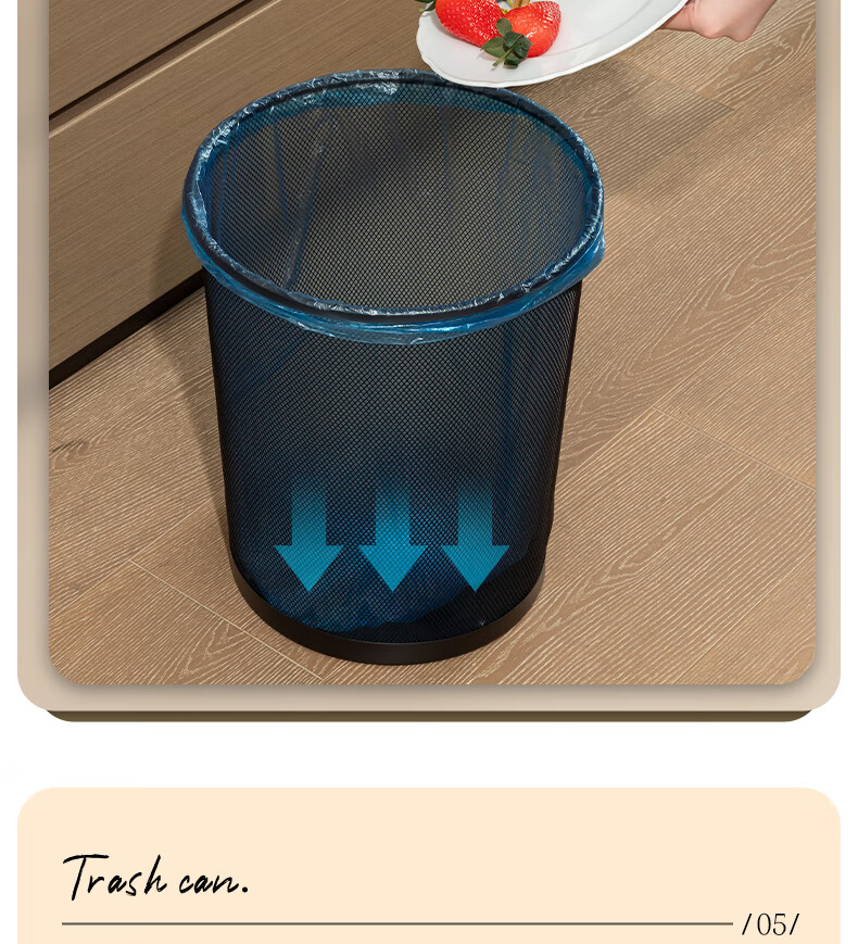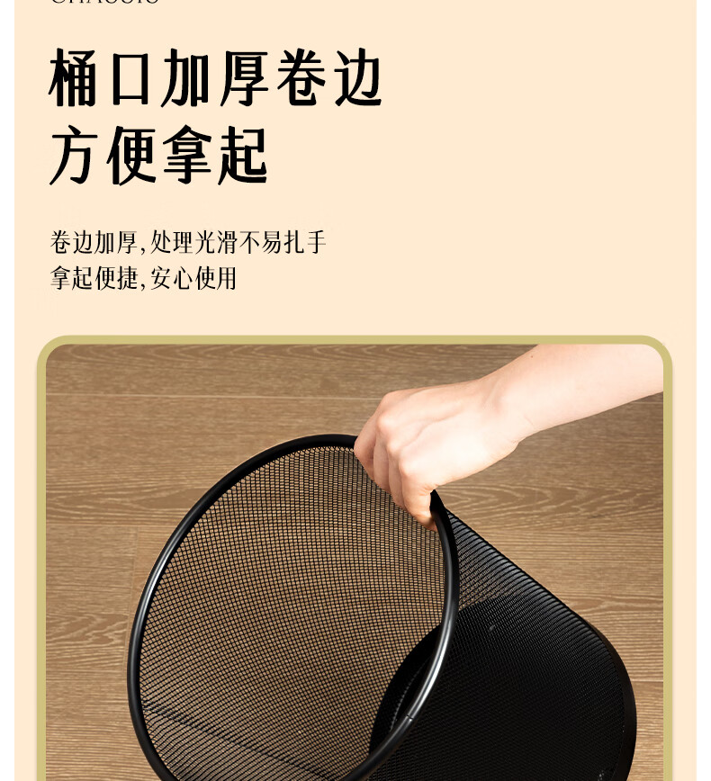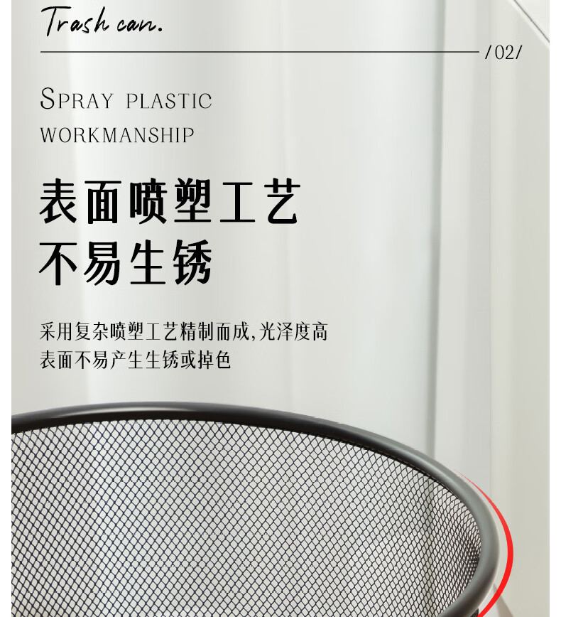 Deli 26.6cm medium metal mesh round paper basket office household trash can garbage classification office supplies black 9190