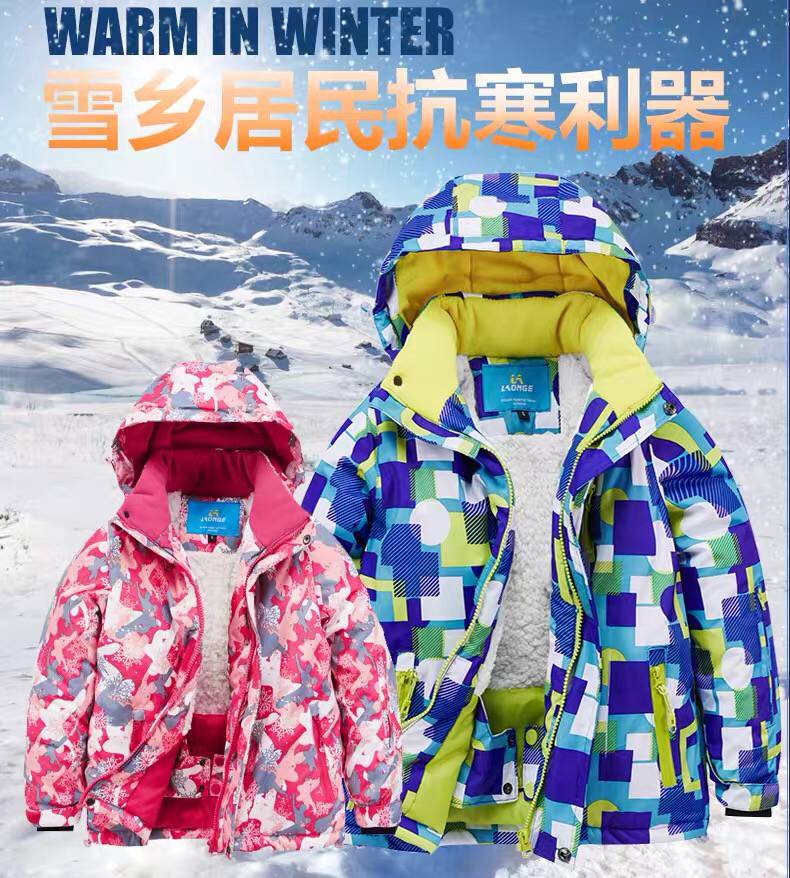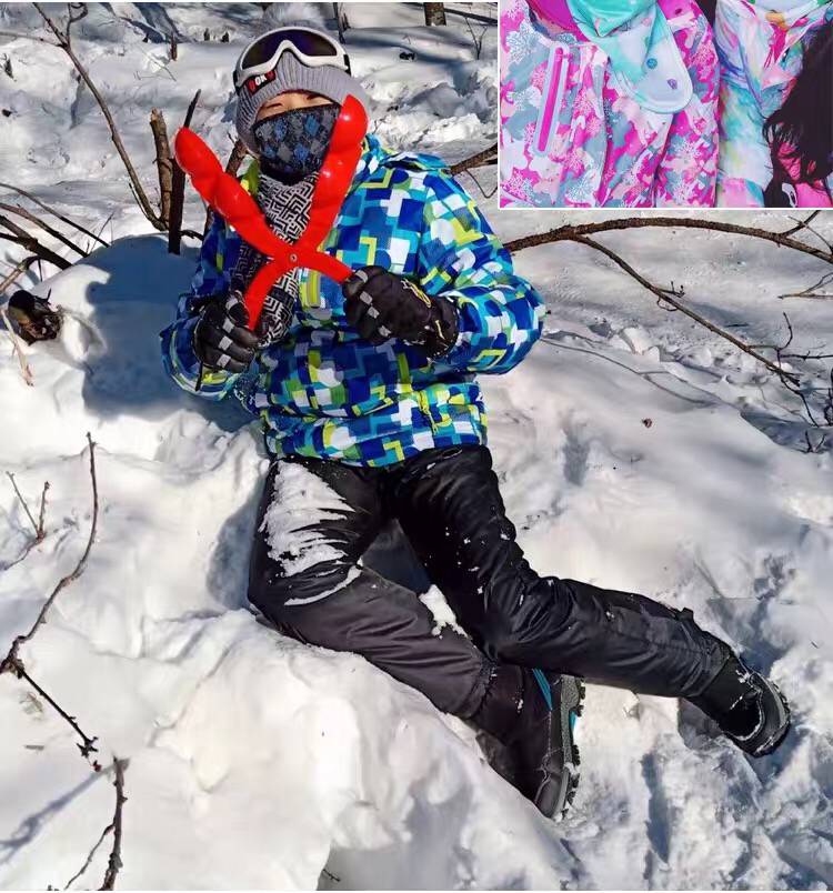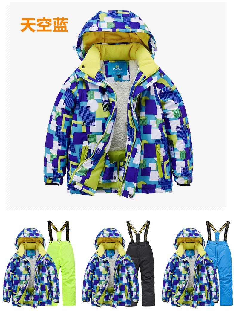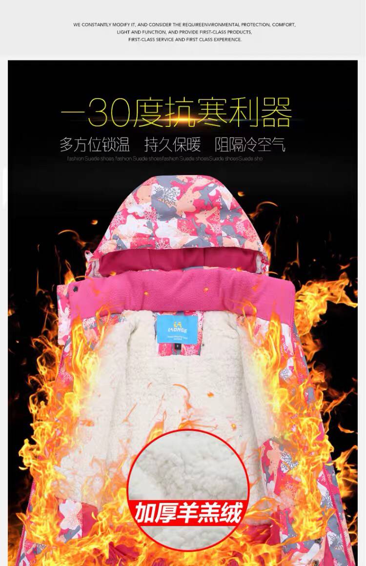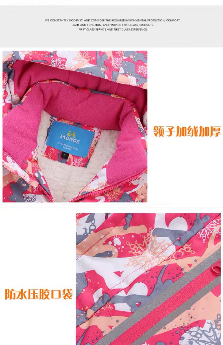 LONGE children's ski suit suit for boys and girls, waterproof, thickened and warm, middle and large children's ski suit and ski pants, rose red + rose red, size 16, 160