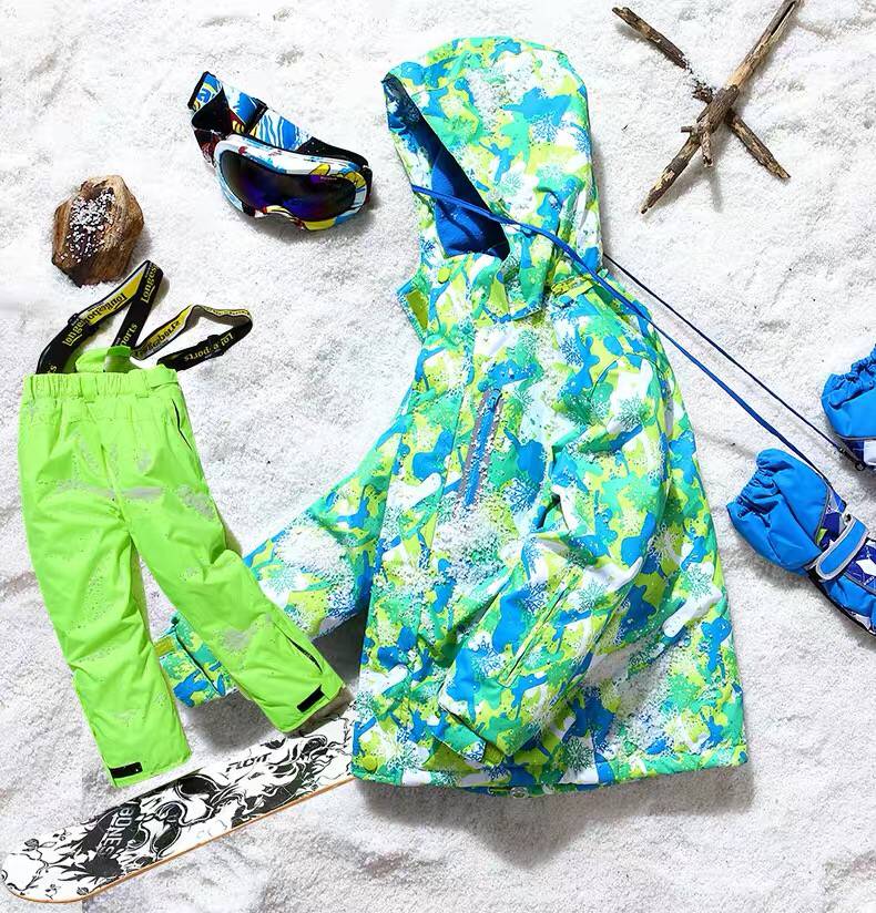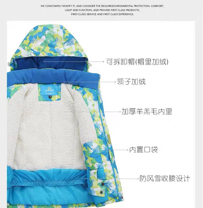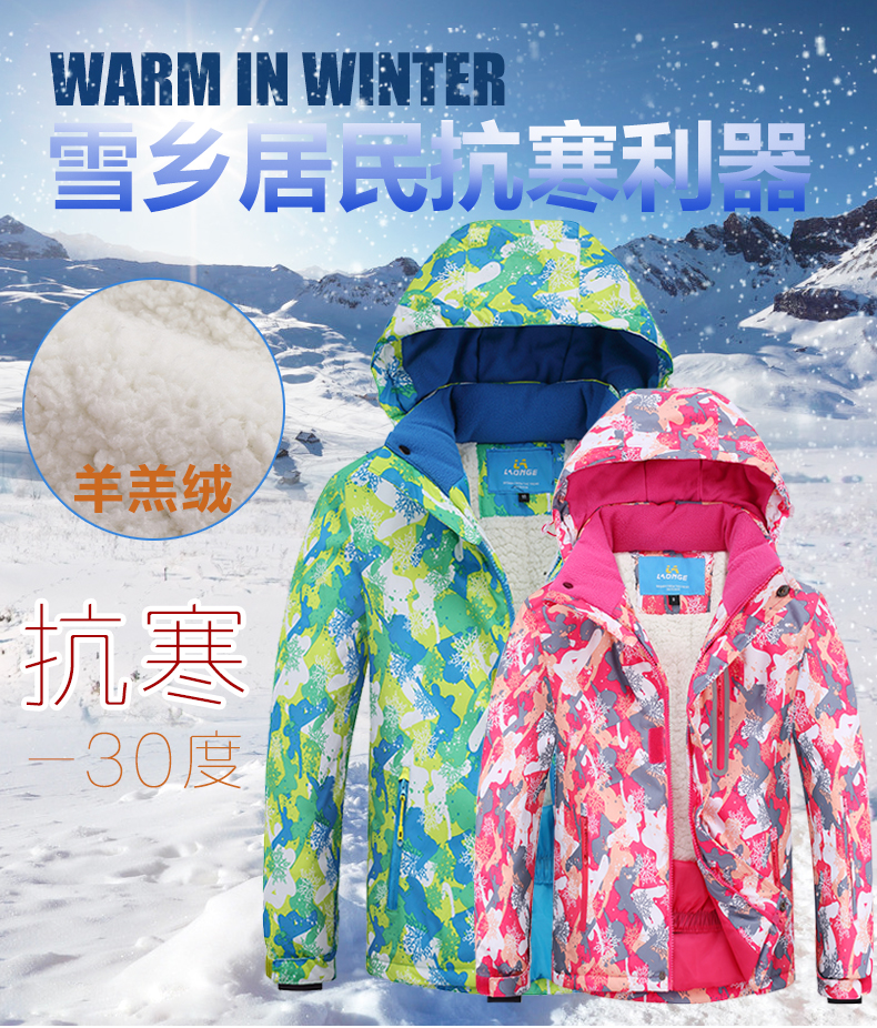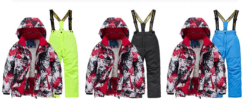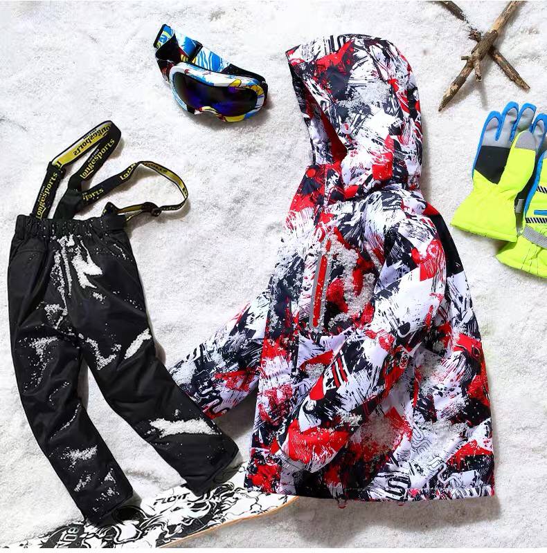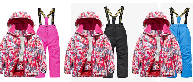 LONGE children's ski suit suit for boys and girls, waterproof, thickened and warm, middle and large children's ski suit and ski pants, rose red + rose red, size 16, 160