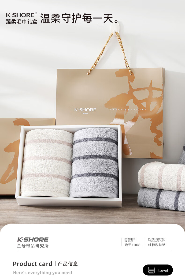 Gold towel set gift box as a souvenir return gift Class A pure cotton thickened towel 2-pack gift box with hand bag