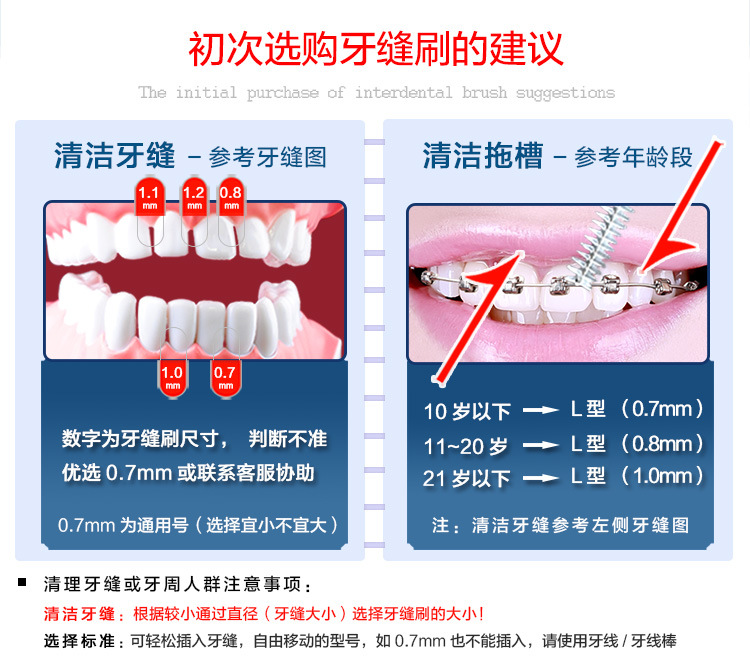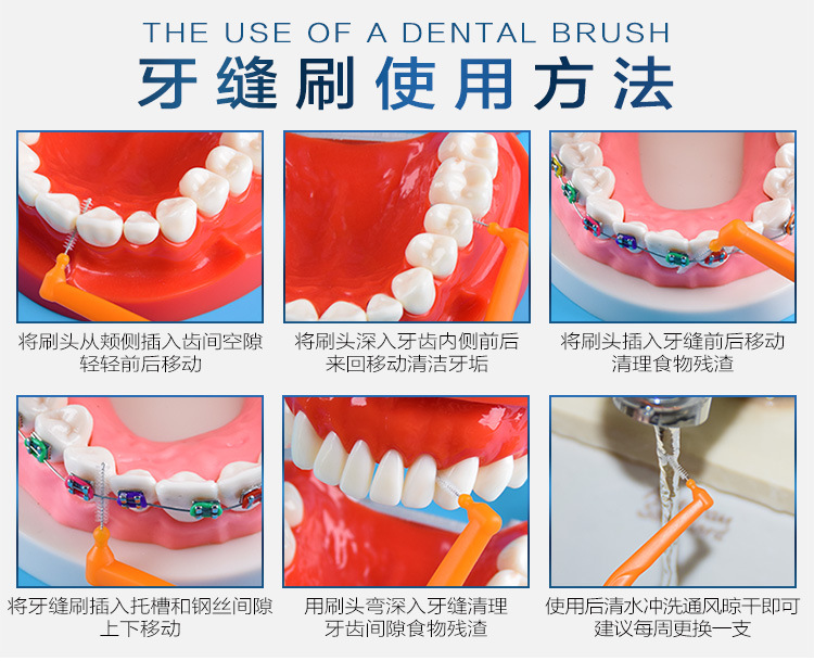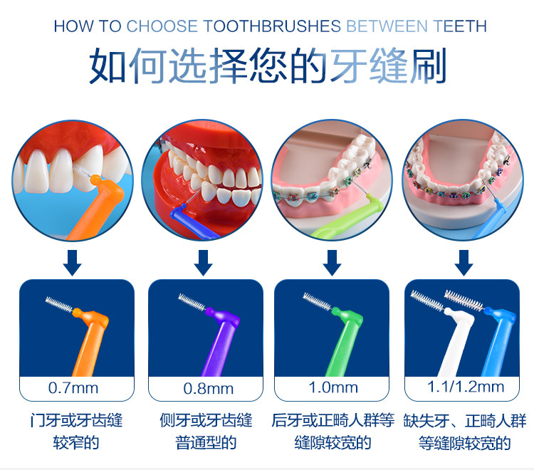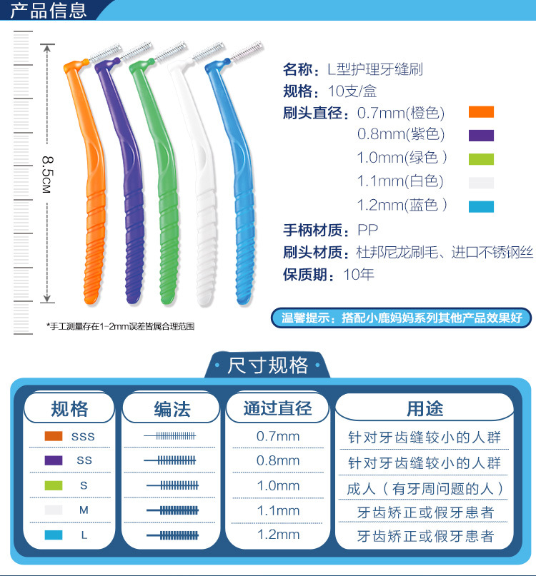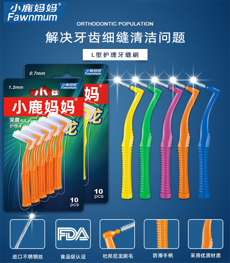 Fawn mother L-shaped interdental brush interdental brush cleaning oral care orthodontic toothbrush interdental brush 0.7mm 10 pieces 1 pack