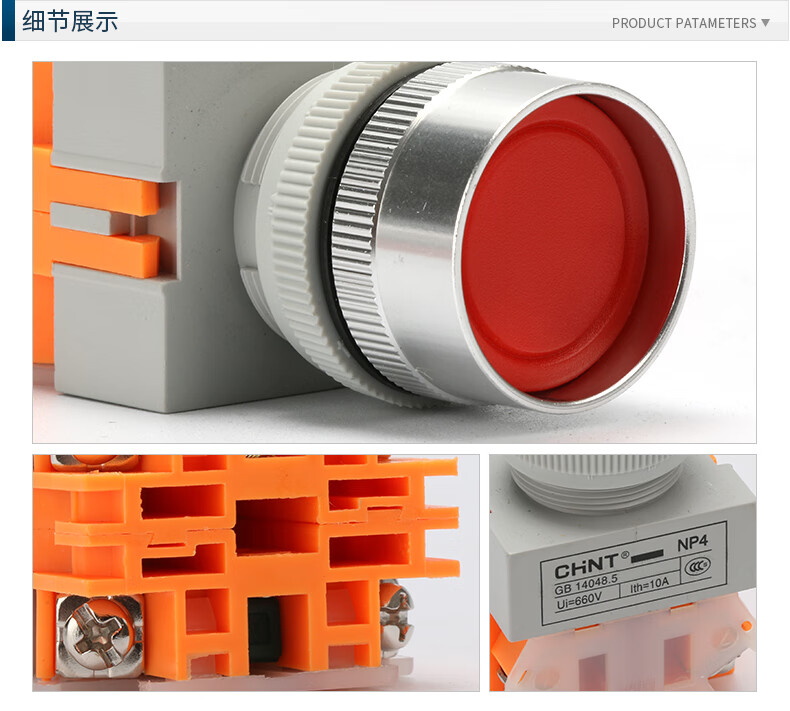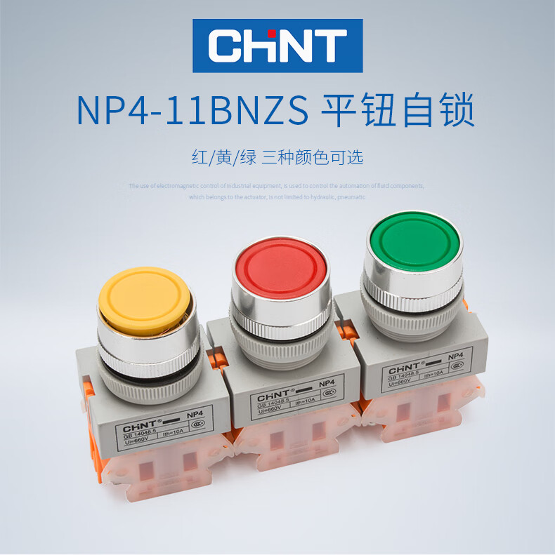Chint (CHNT) self-locking button switch NP4-11BNZS-R self-locking protection does not spring when pressed. Control button, one open and one closed, red