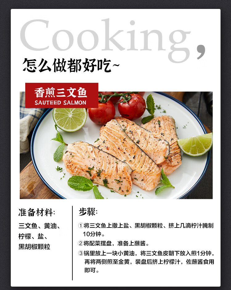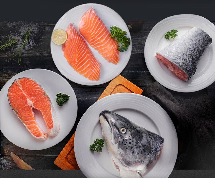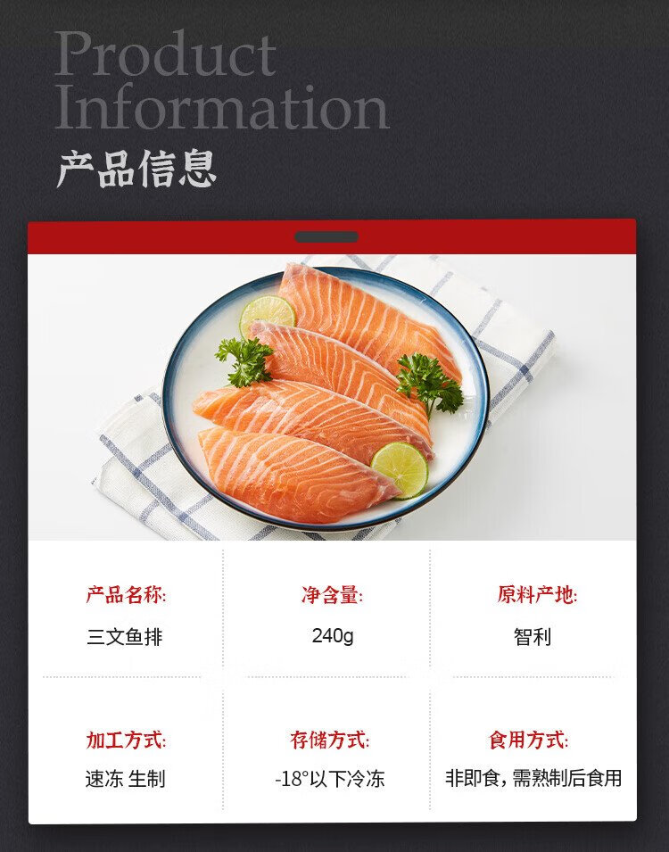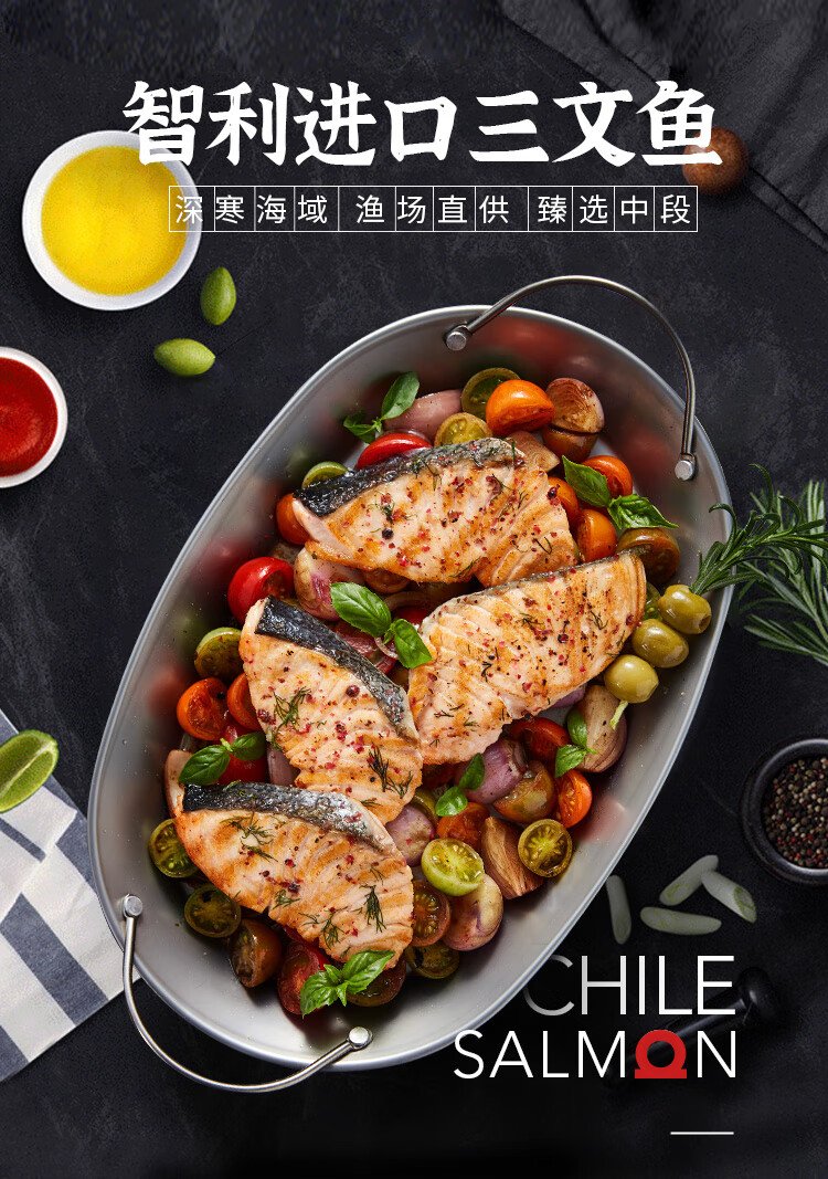 Meiwei Chilean Frozen Original Salmon Steak Net Weight 240g/4 Pieces Atlantic Salmon Seafood Aquatic Fish
