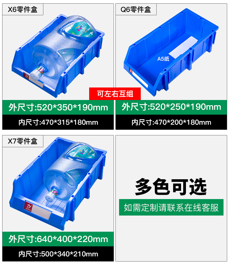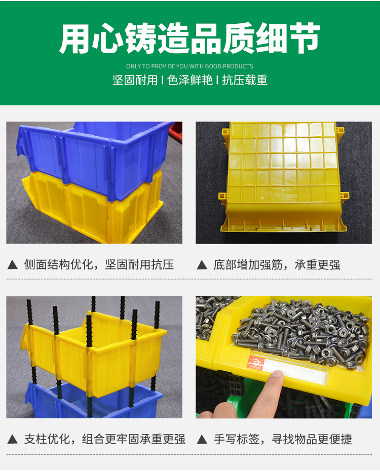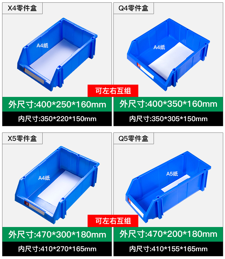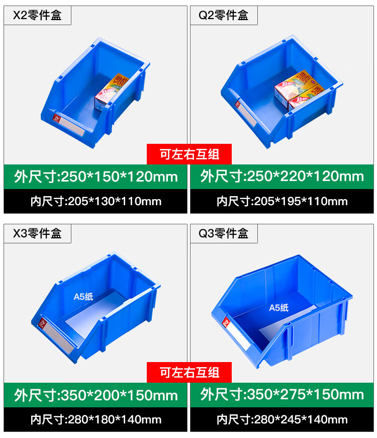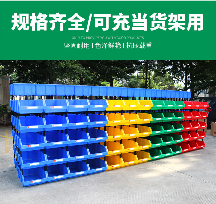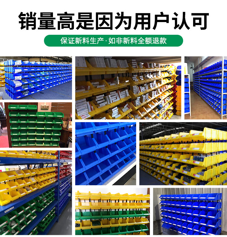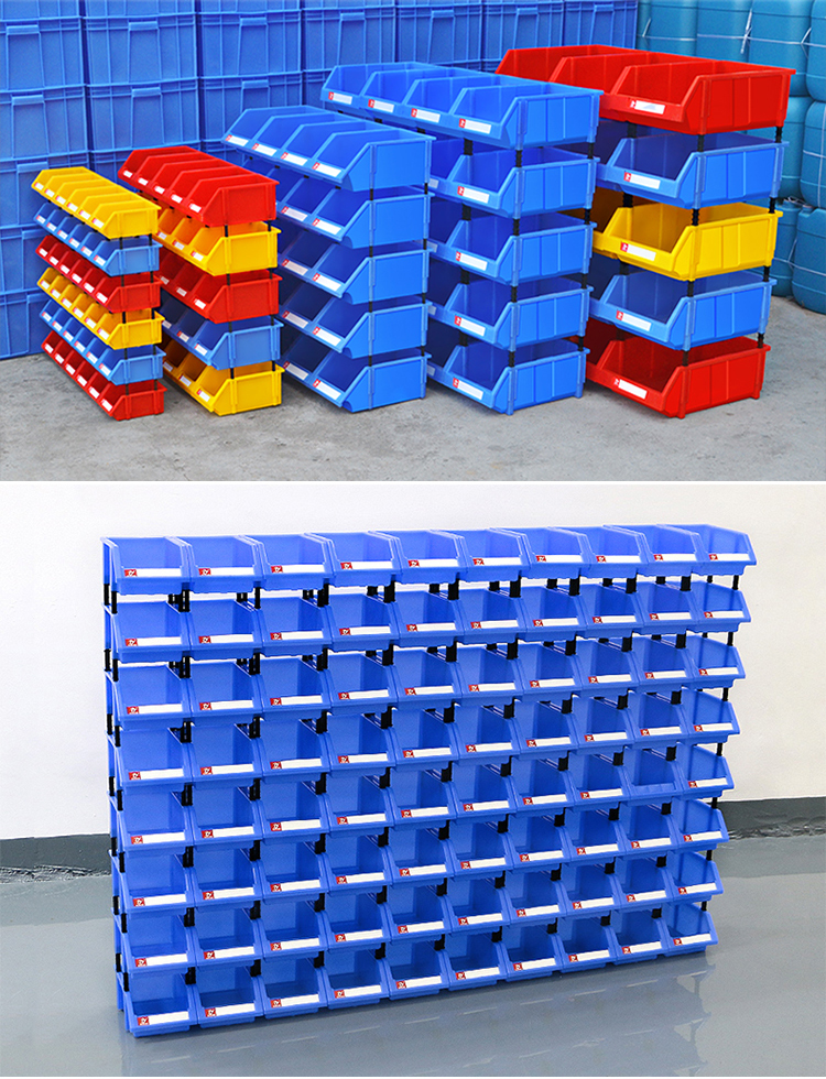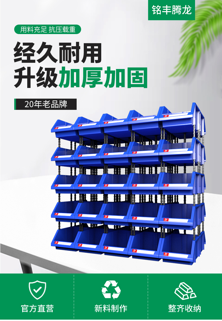 Mingfeng Tenglong shelf parts box combined warehouse storage box oblique hardware plastic thickened material box component screw storage blue single, with pillar + label paper X1# enhanced version 180*120*80MM