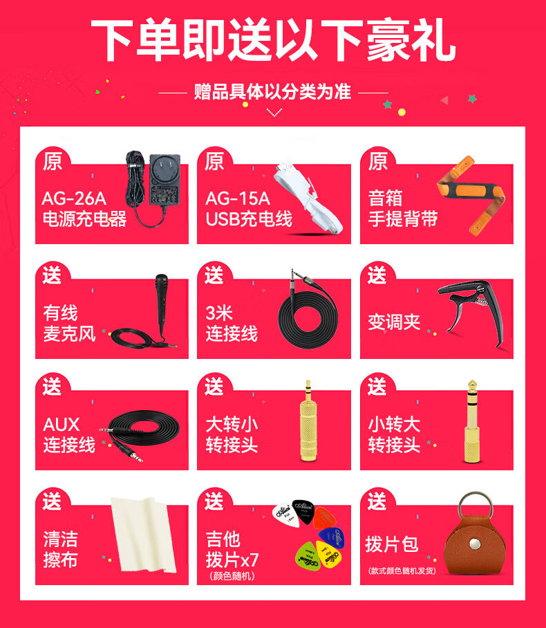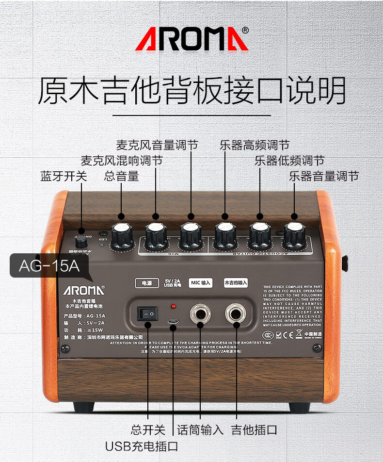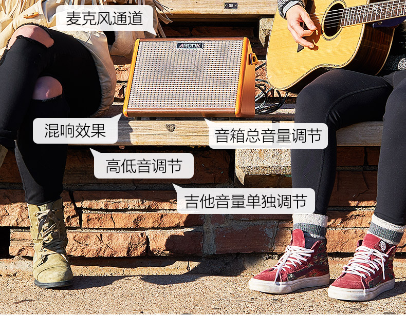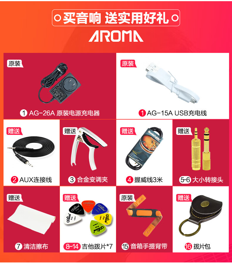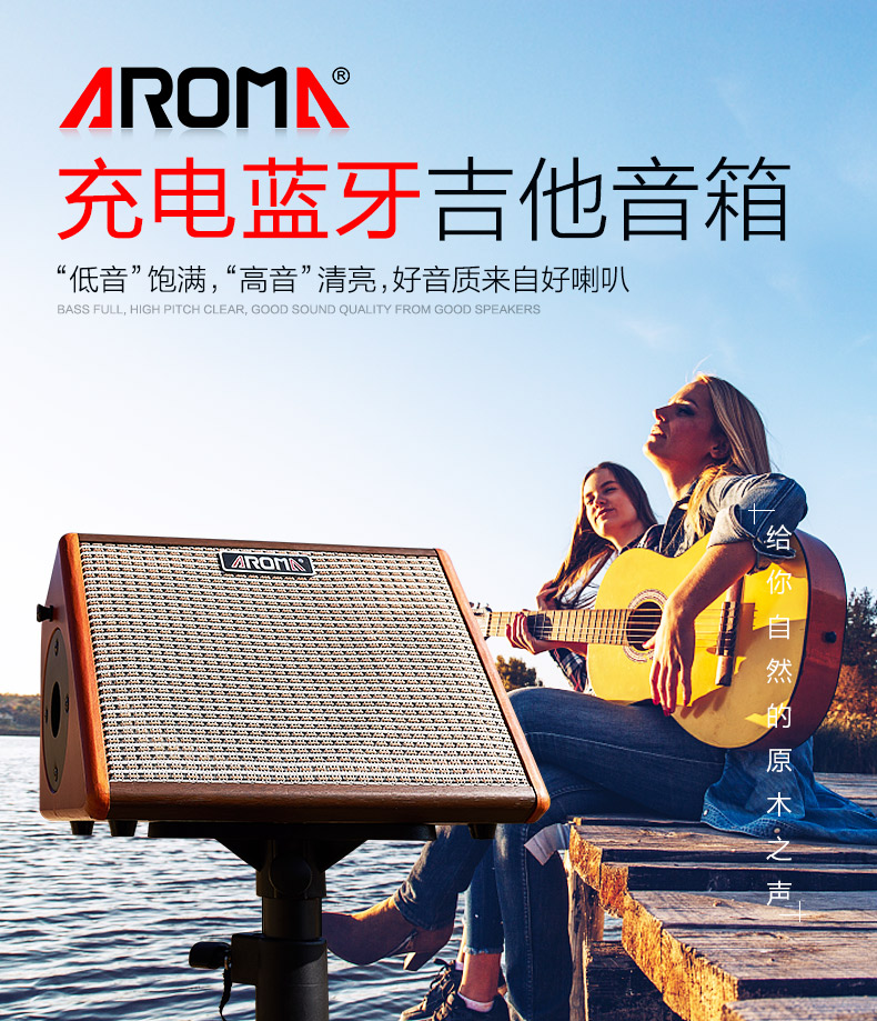 AROMA folk acoustic guitar speaker portable rechargeable outdoor singing karaoke wireless Bluetooth small speaker AG-26A 25W charging Bluetooth + gift