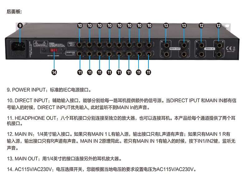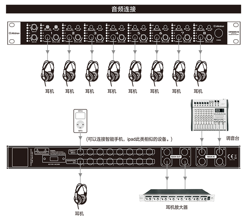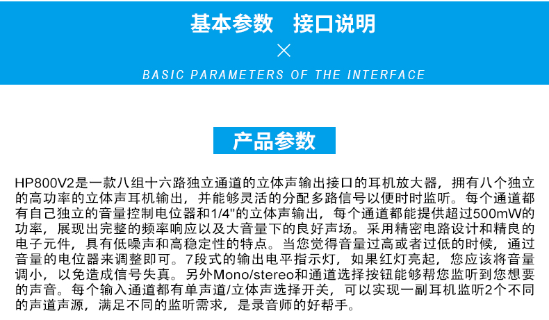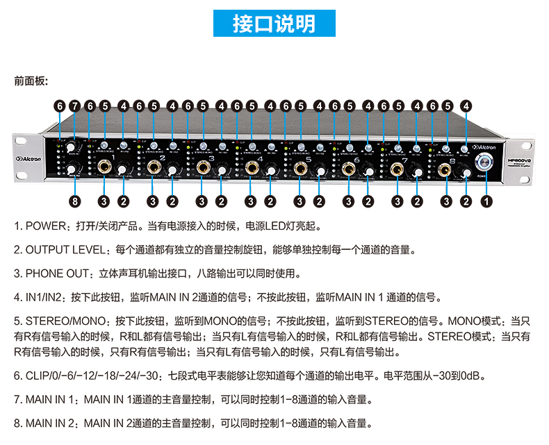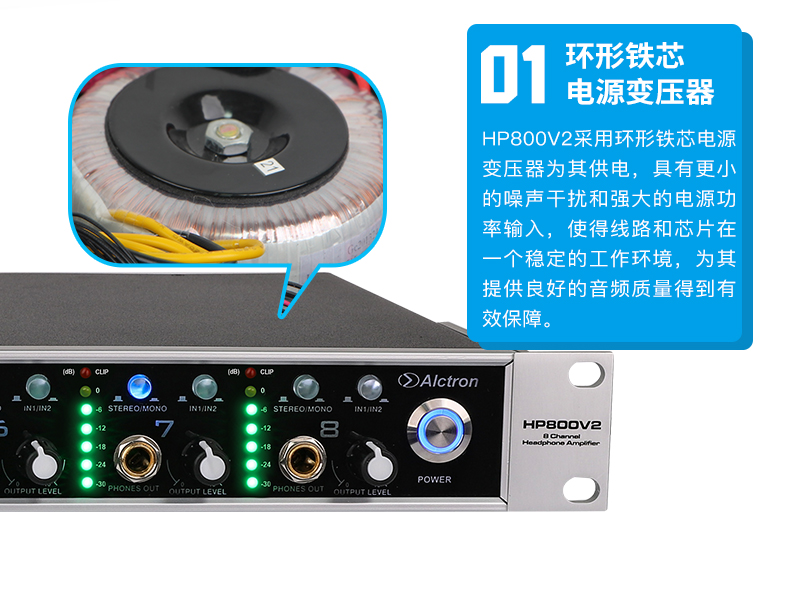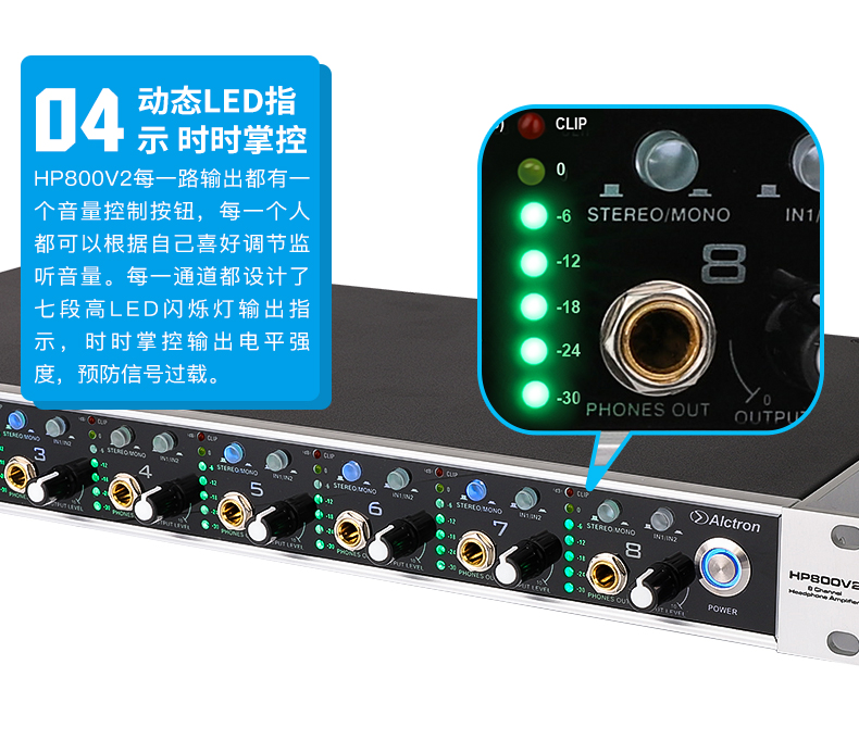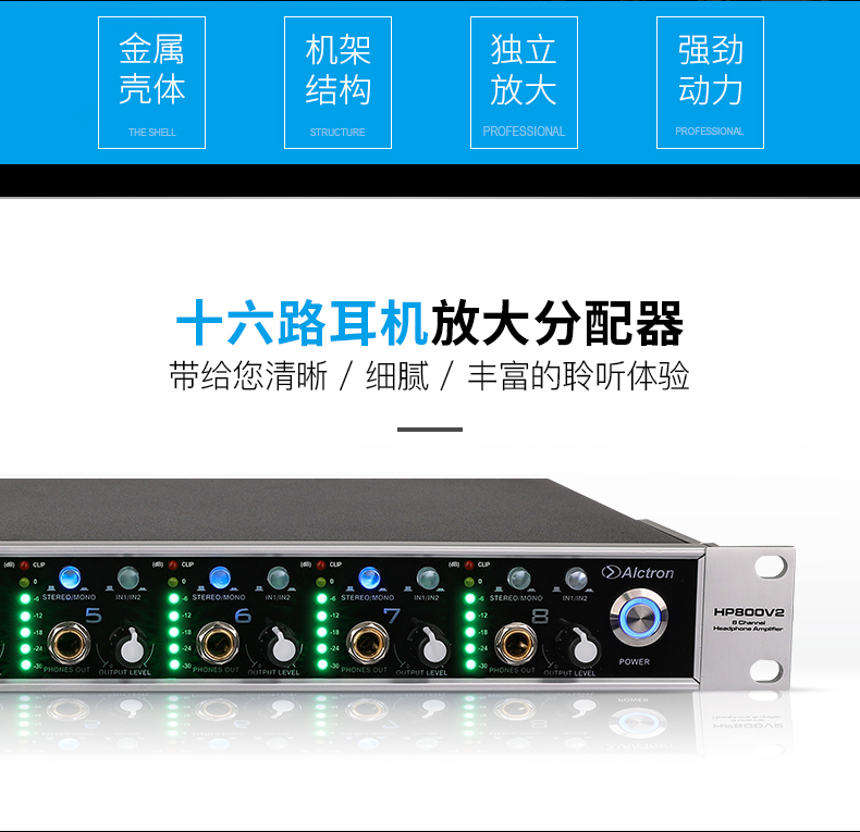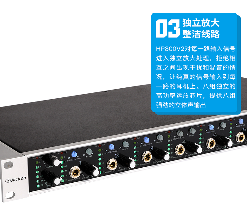 Alctron HP800V2 headphone amplifier splitter eight groups of 16 independent amplification recording engineering headphone amplifier splitter