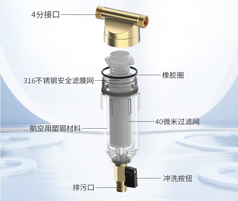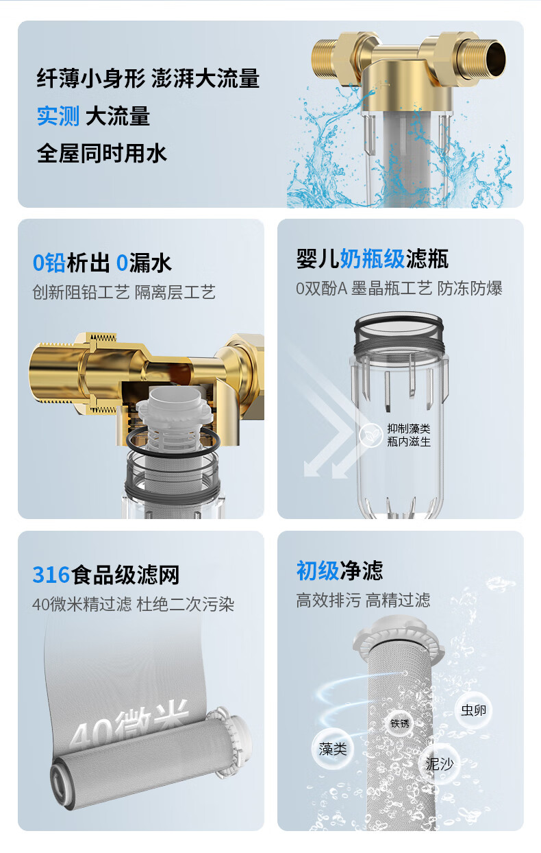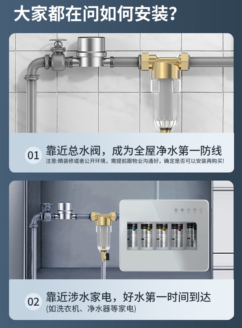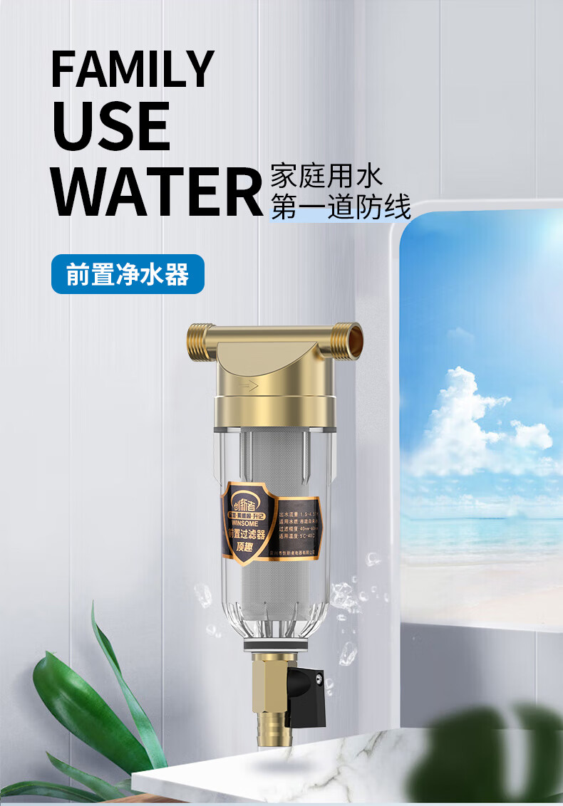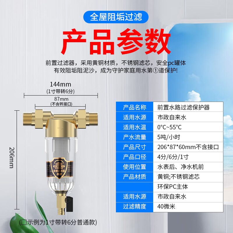Innovator tap water pre-filter large flow whole house central kitchen rural underground well water primary filtration water tower anti-scaling non-direct drinking brass filter household water purifier brand 1 inch brass model + 6 points copper union