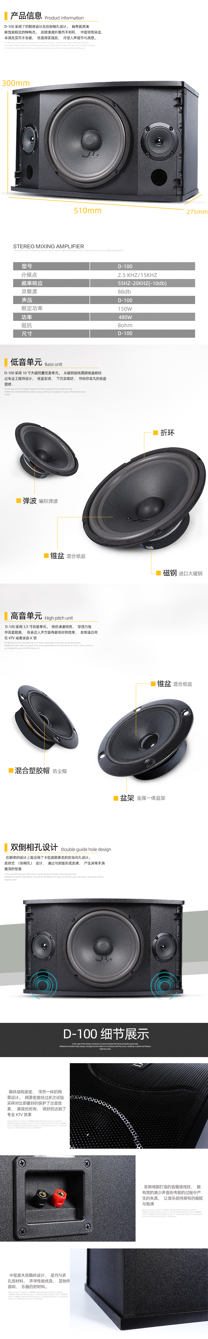 Depusheng D100 KTV speaker professional 10-inch KTV card package audio stage conference speech home set speaker standard audio single