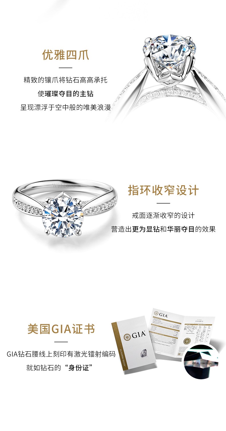 WithLove 18K Gold Luxury GIA Diamond Ring Pt950 Platinum Wedding Diamond Ring Proposal Shows Big Real Diamond for Women Main Diamond 1 Carat/G Color/SI1 Secondary Diamond 16 Points White 18K Gold/Customized