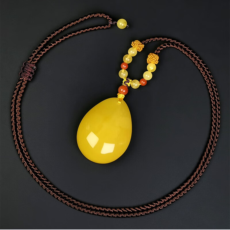 Amber School One thing, one picture, one certificate, beeswax pendant, natural amber pendant, men's and women's necklace, chicken fat yellow, pendant 7.65g 36*28*13mm