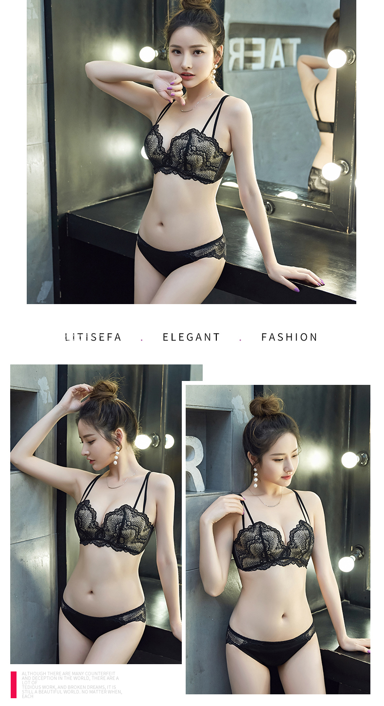 Бюстгальтер без косточек бренда KJ, небольшой бюстгальтер с эффектом пуш-ап, комплект сексуального кружевного бюстгальтера, нижнее белье из верхней боковой коллекции, новый женский бюстгальтер, чисто черный костюм 75B 34B