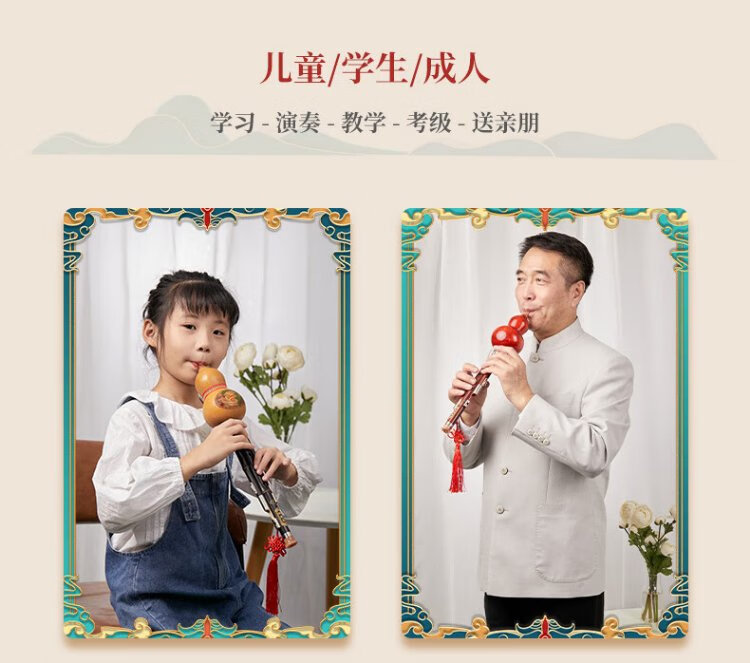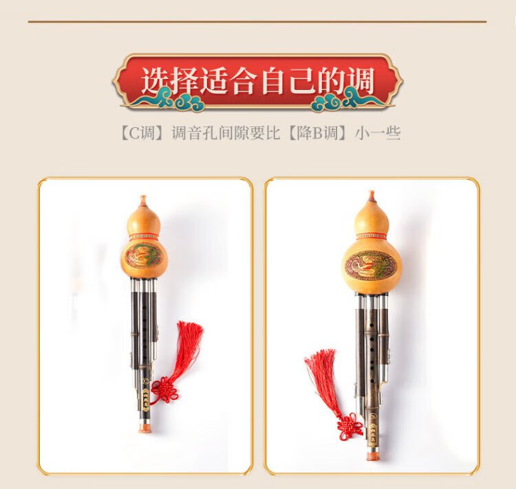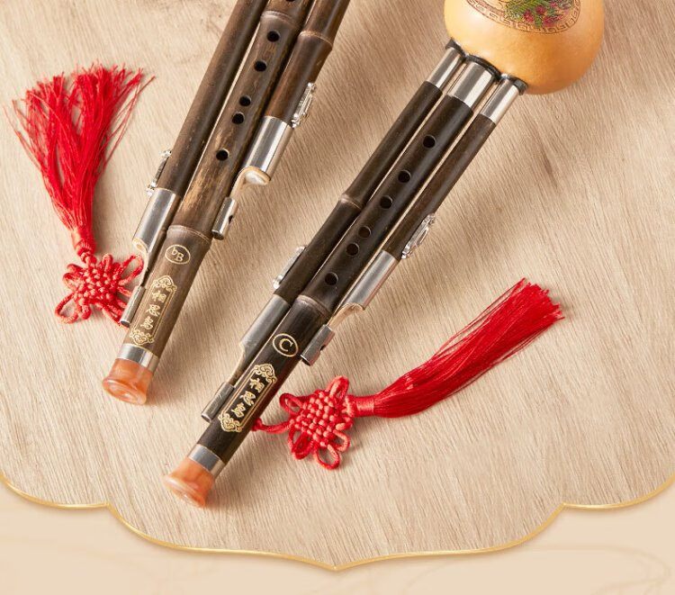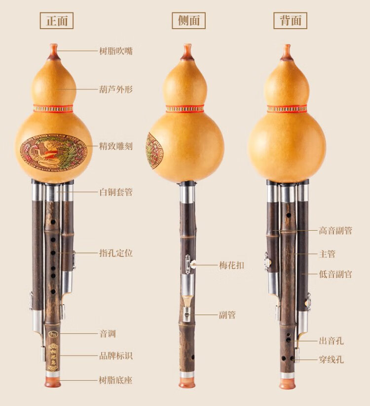 Love Bird Hulusi C Key Children's Beginner Practice Three-note Double White Copper Purple Bamboo Plum Blossom Buckle Hulusi Musical Instrument