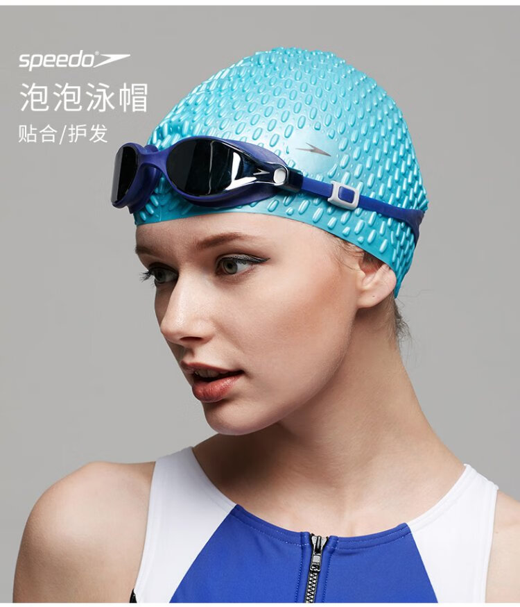 Speedo silicone swimming cap long hair bubble cap waterproof ear protection swimming cap black