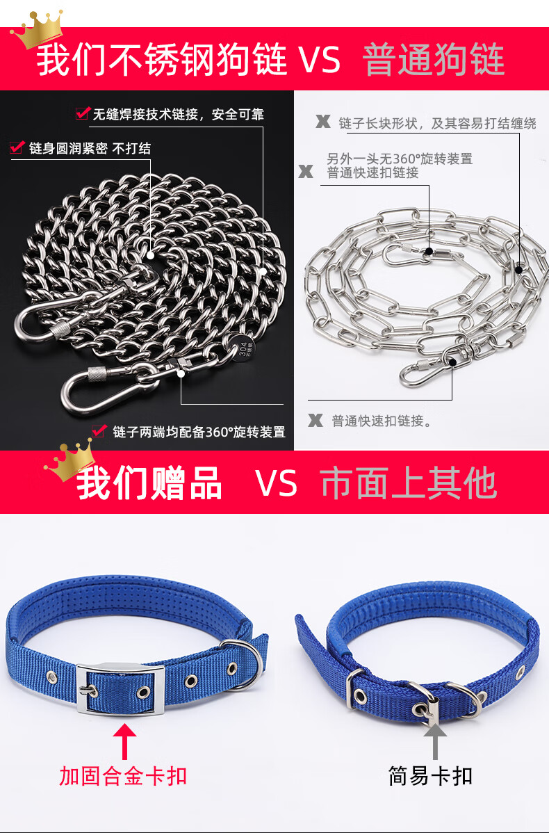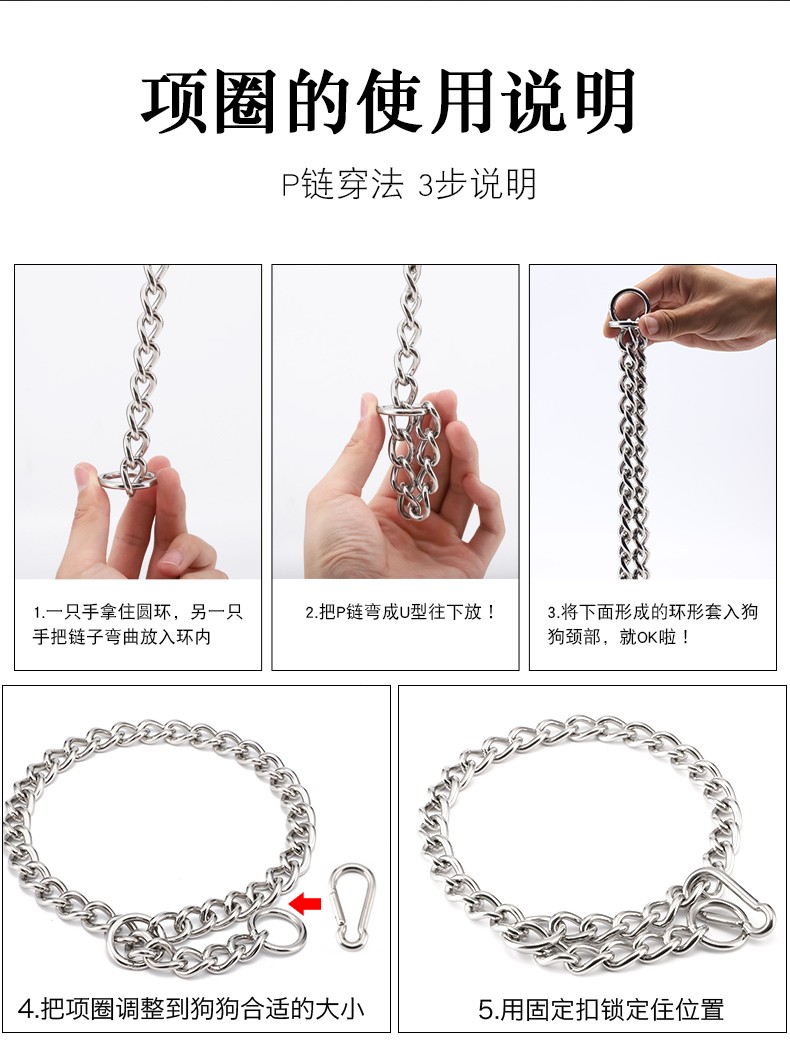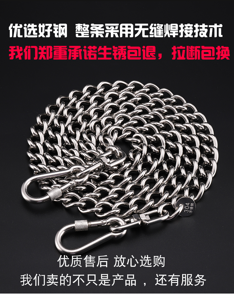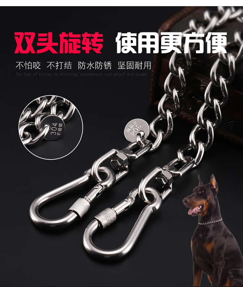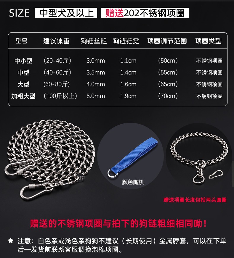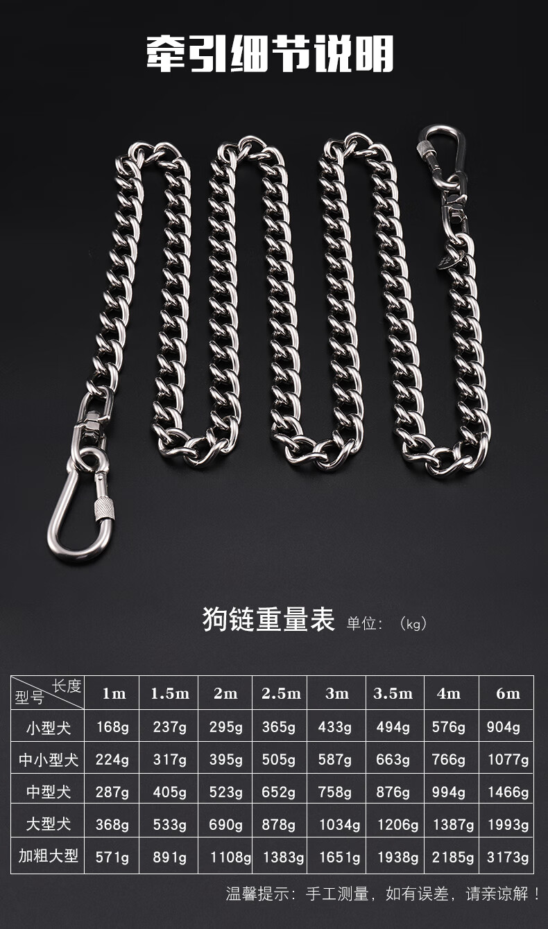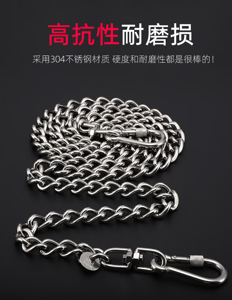 Wanlian stainless steel traction rope, dog chain collar, dog walking rope, anti-biting, continuously lengthening small and medium-sized large dog traction rope, dog leash collar, P chain, golden retriever, German shepherd, large (60 80 Jin Jin equals 0.5 kg for dogs) 304 high-strength stainless steel 2 meters total length