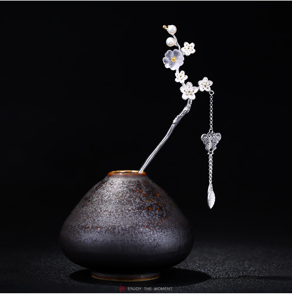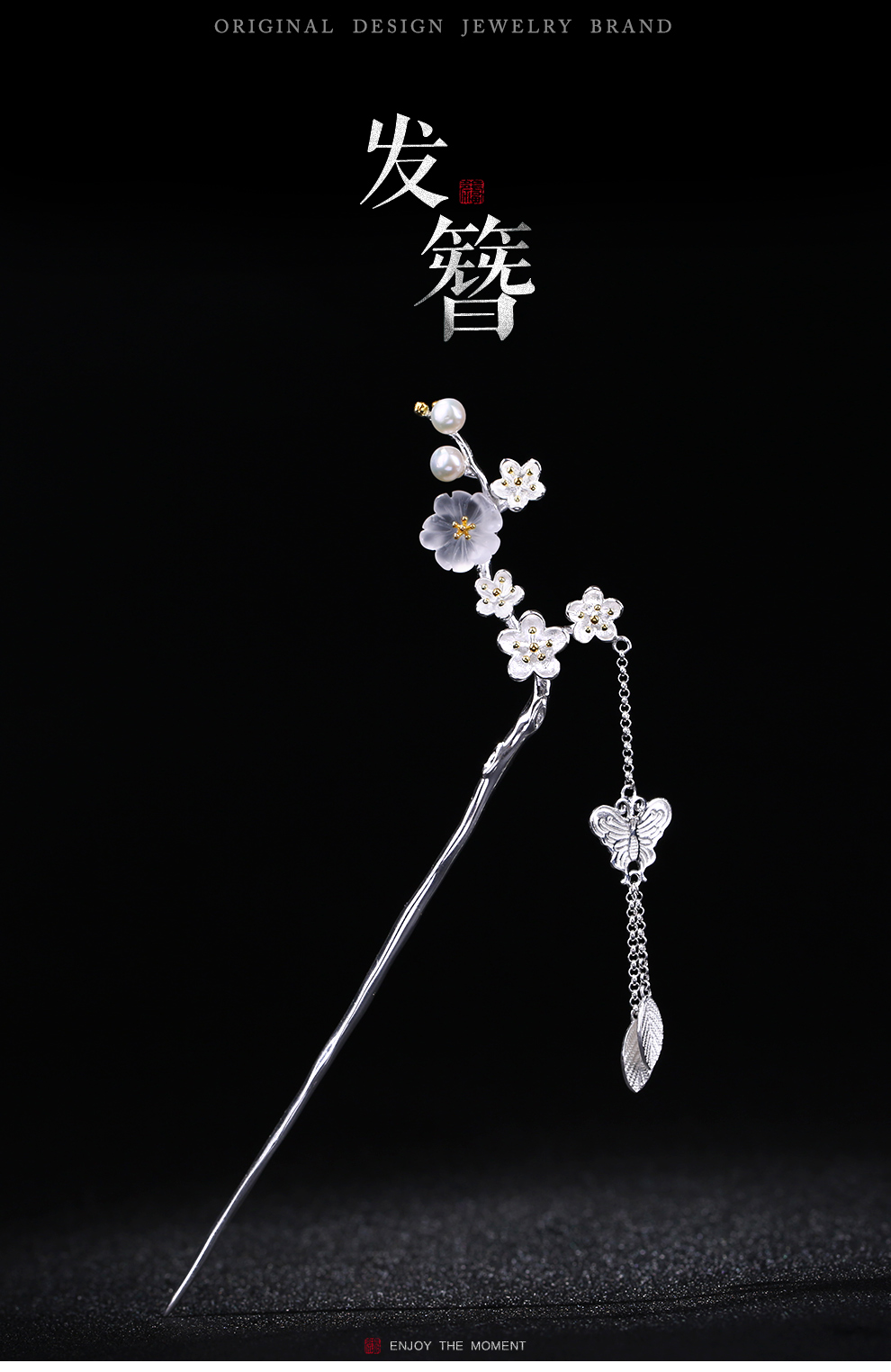 Fu Tiaoer's handmade cherry blossom branch butterfly tassel hairpin for women in ancient style Hanfu walking hairpin hairpin headdress Valentine's Day gift 1